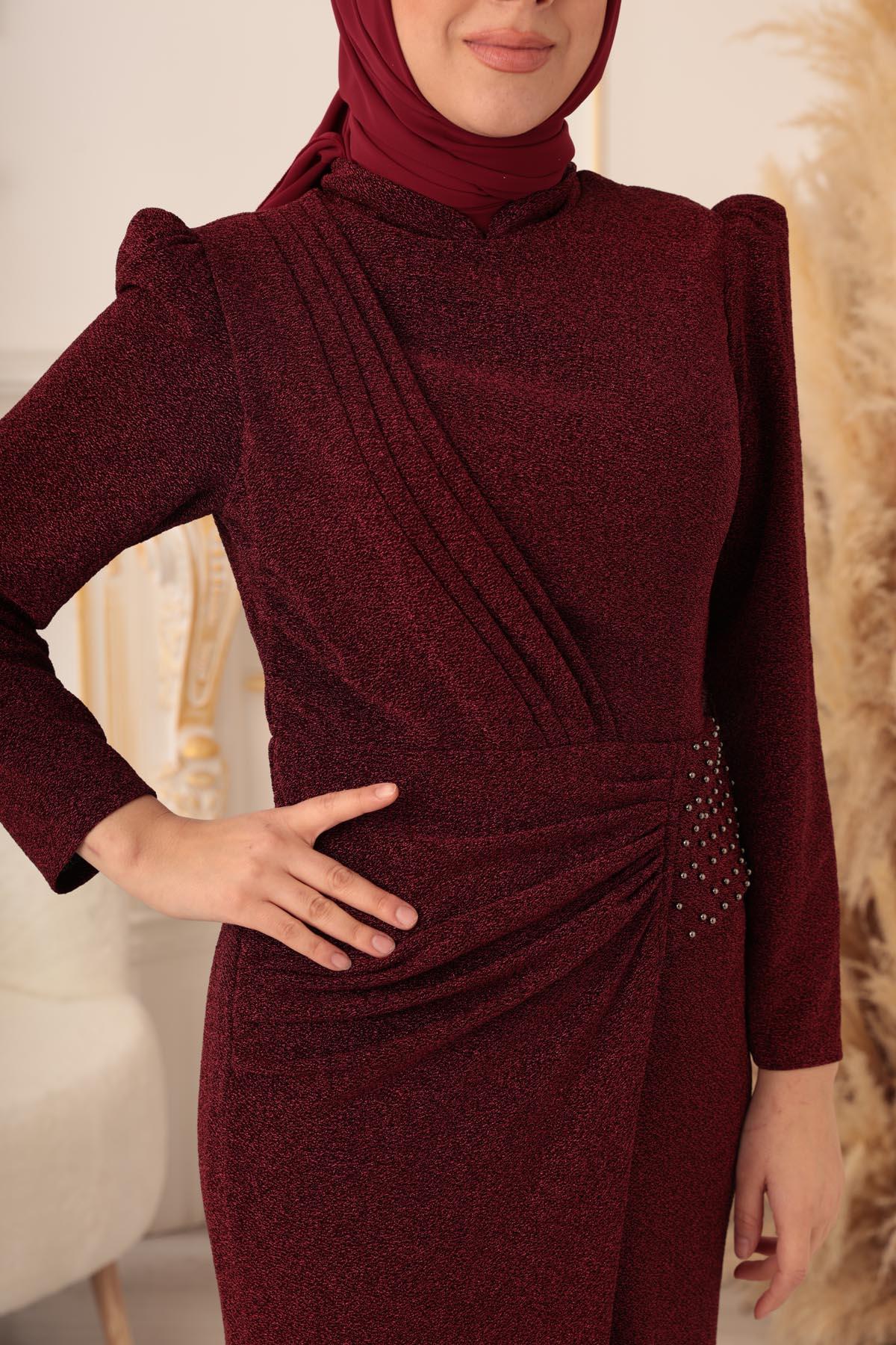 BELİ İNCİ DEYATLI ESNEK KUMAŞ TESETTÜR ABİYE (K18620), moda ve rahatlığın bir arada olduğu yenilikçi bir üründür. Bu abiye, tasarımıyla dikkat çeken inci detayları ve esnek kumaş yapısıyla öne çıkmaktadır.