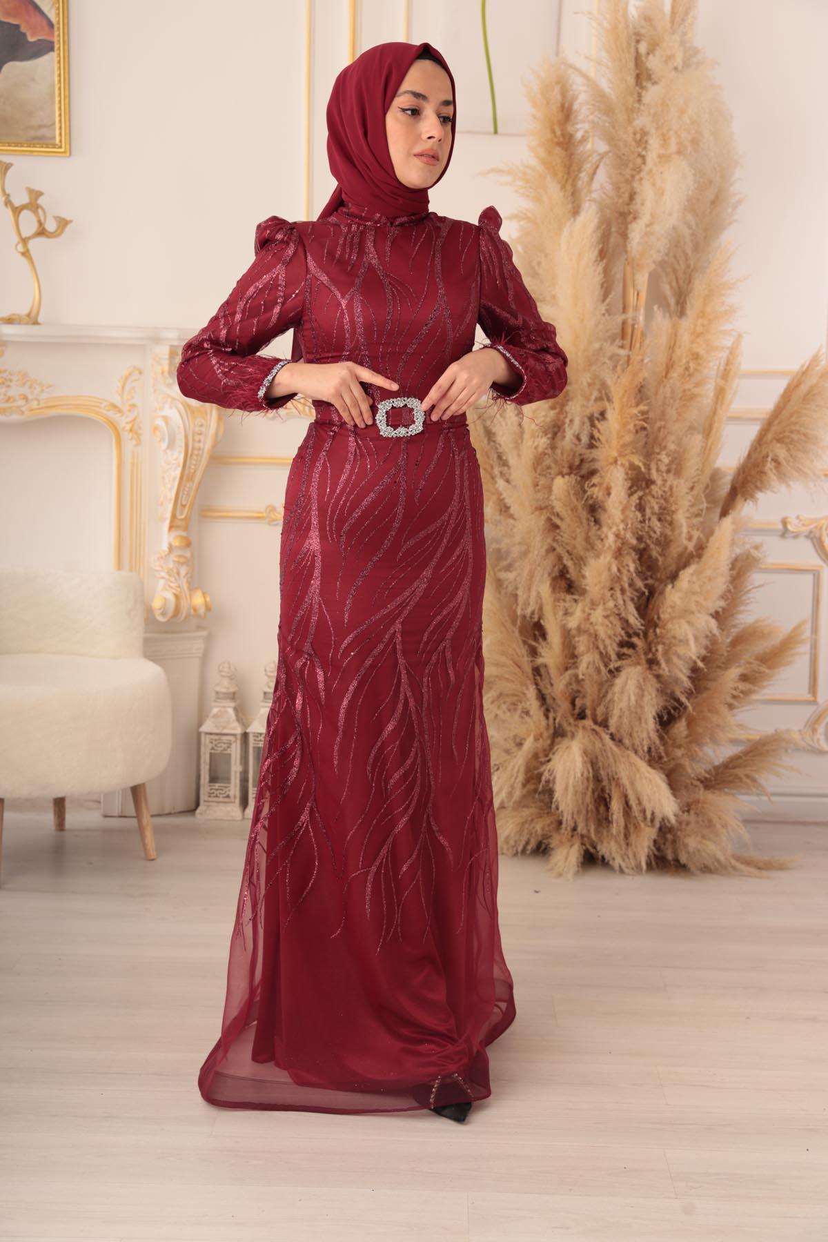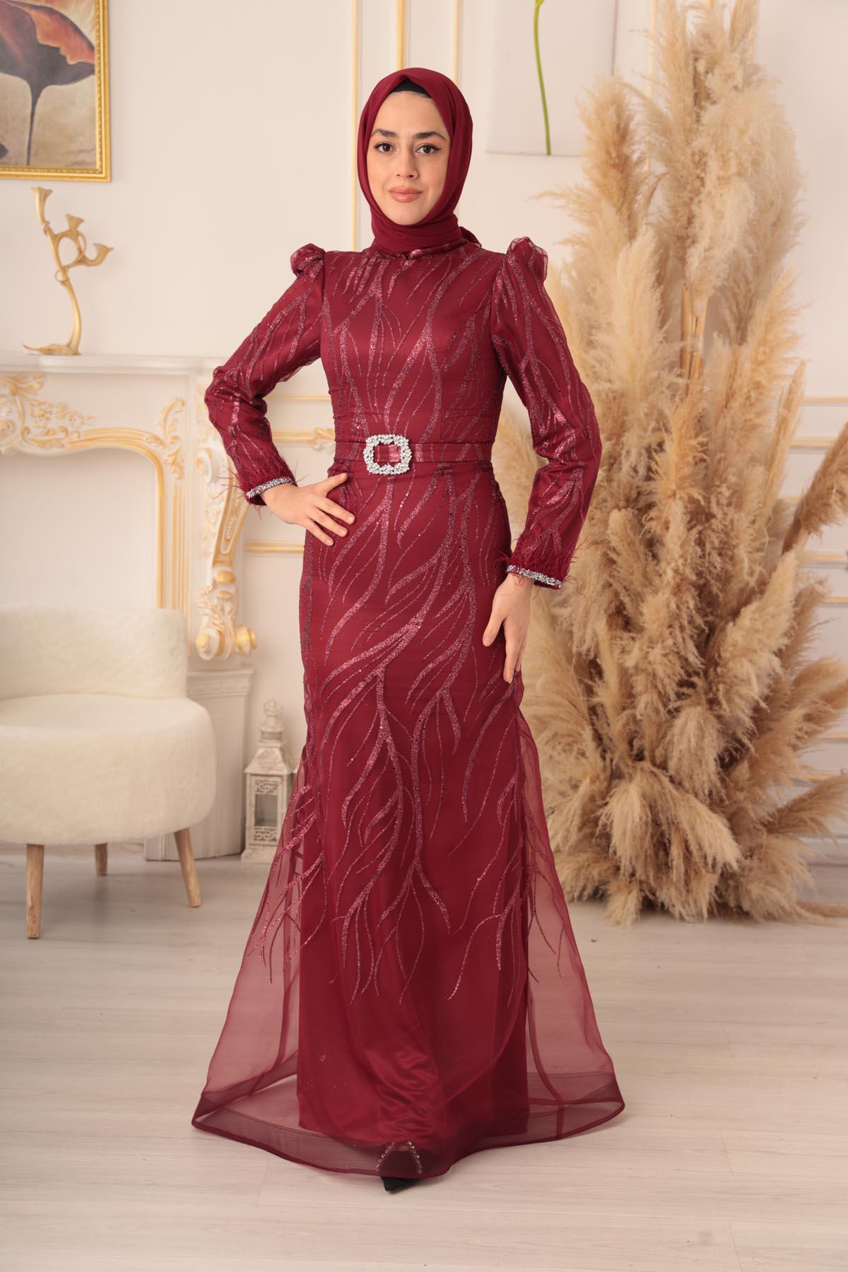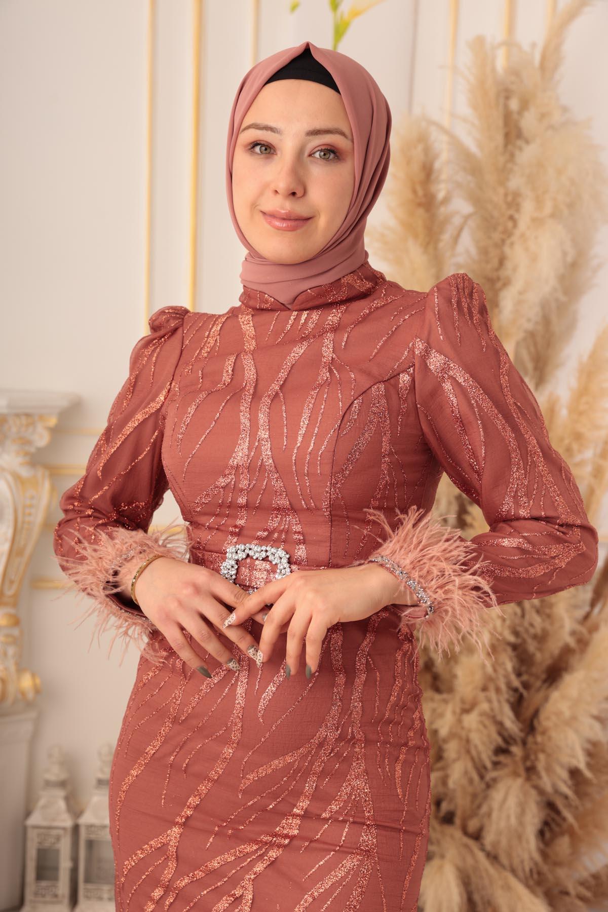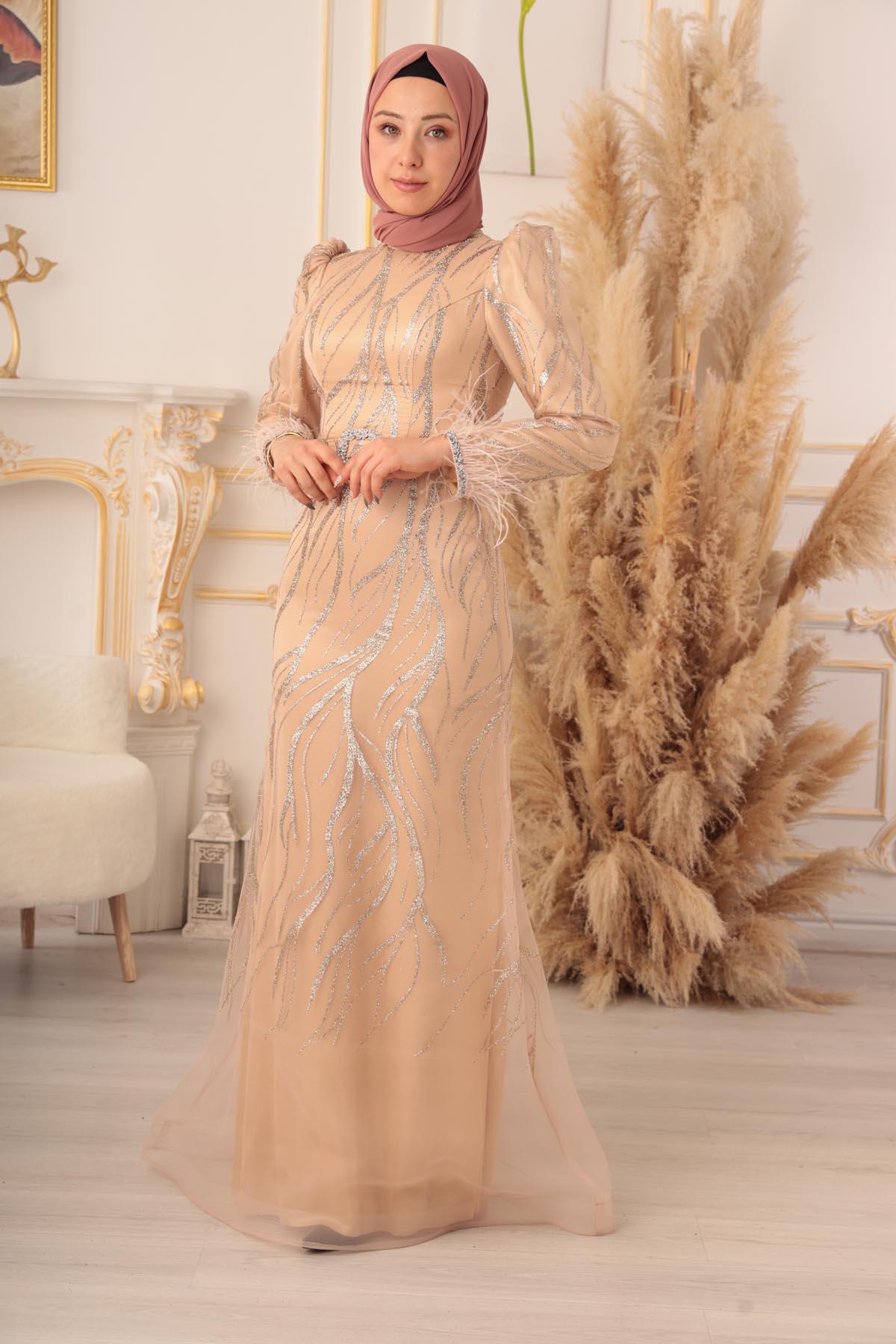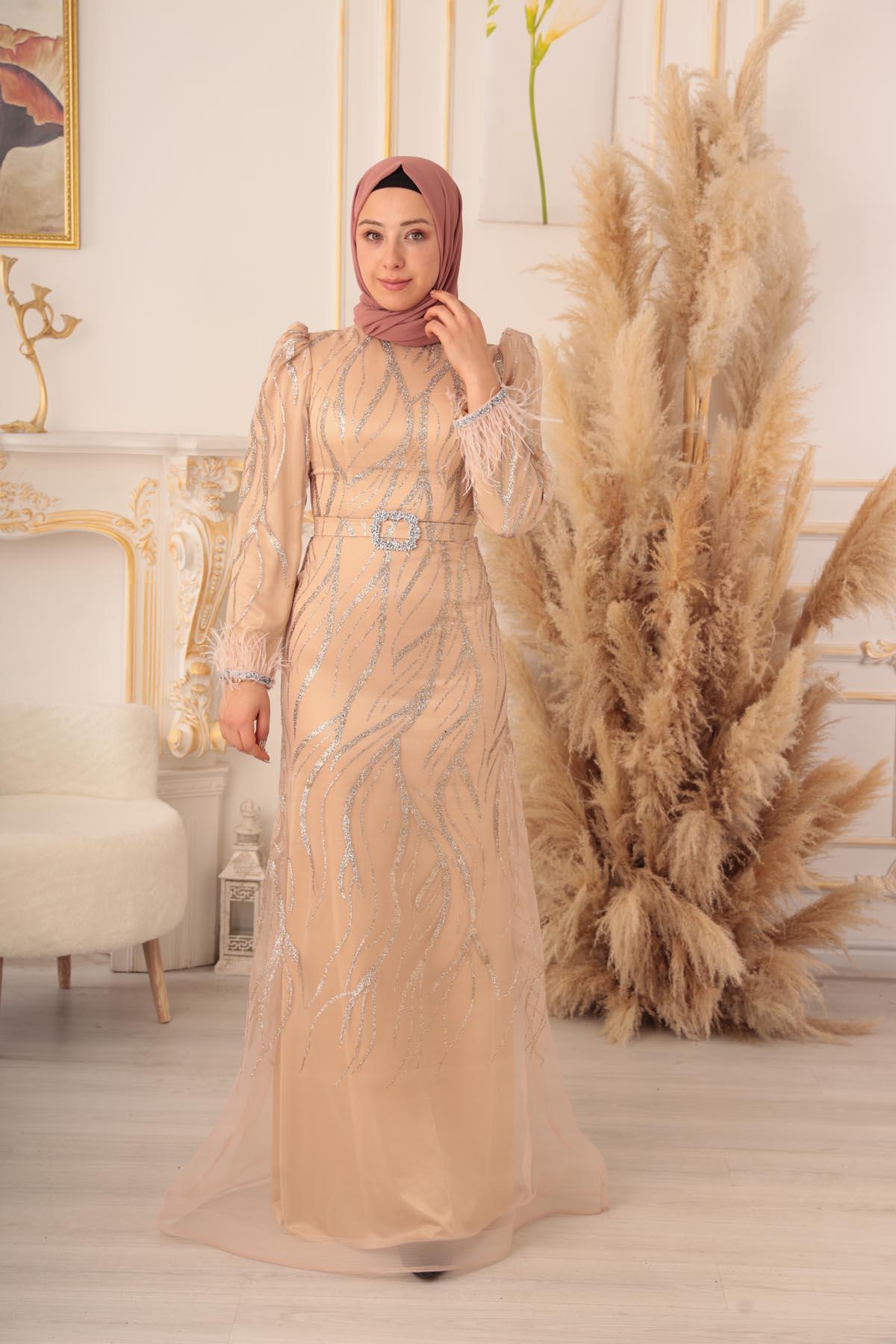 DESENLİ KOLLARI TÜY DETAYLI TESETTÜR ABİYE (K17870), Bir abiye elbiseden daha fazlasıdır. Zarafeti, şıklığı, dinamizmi ve rahatlığı bir arada sunan bu elbise, gardırobunuzun vazgeçilmezi olacak.