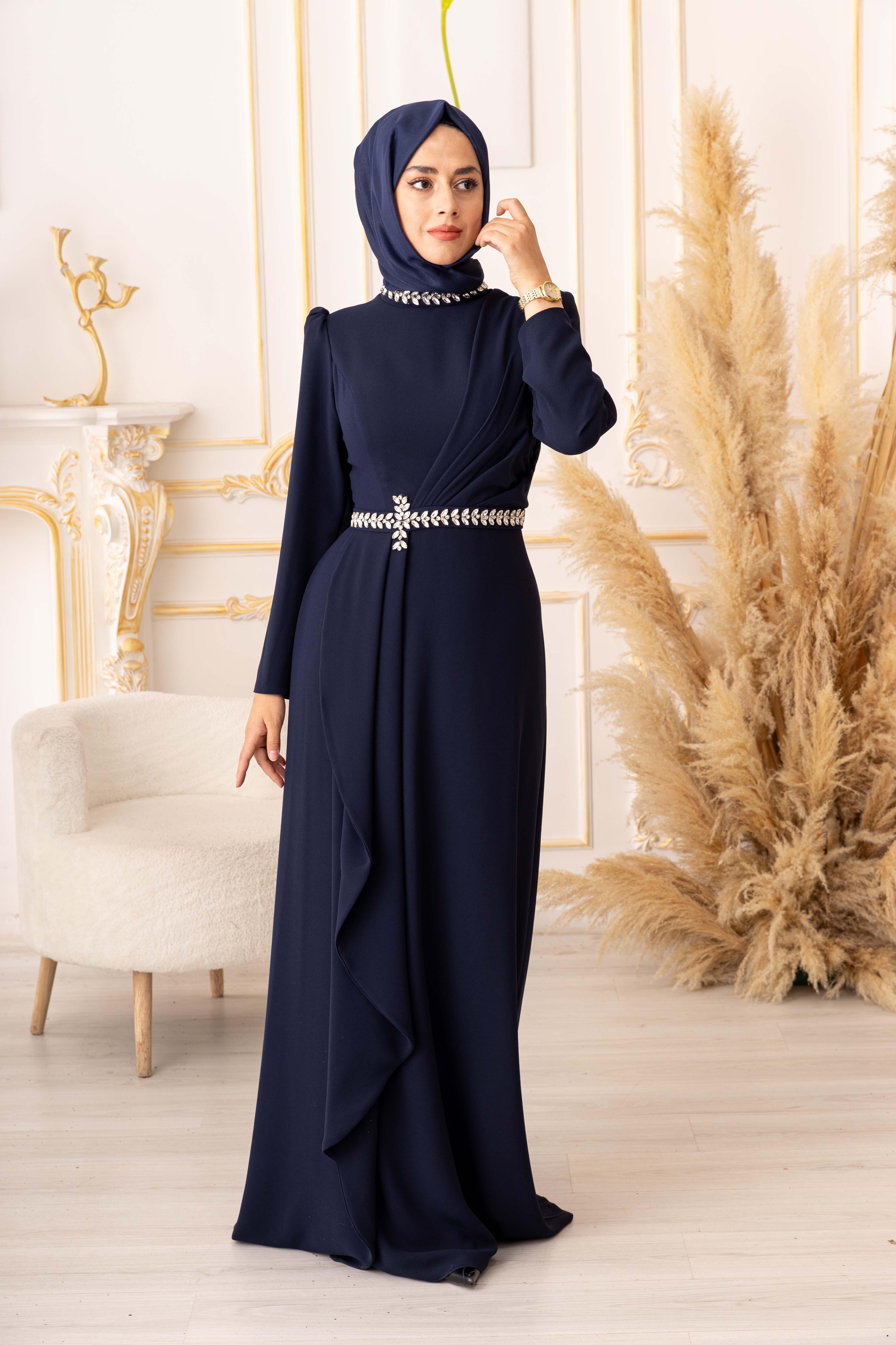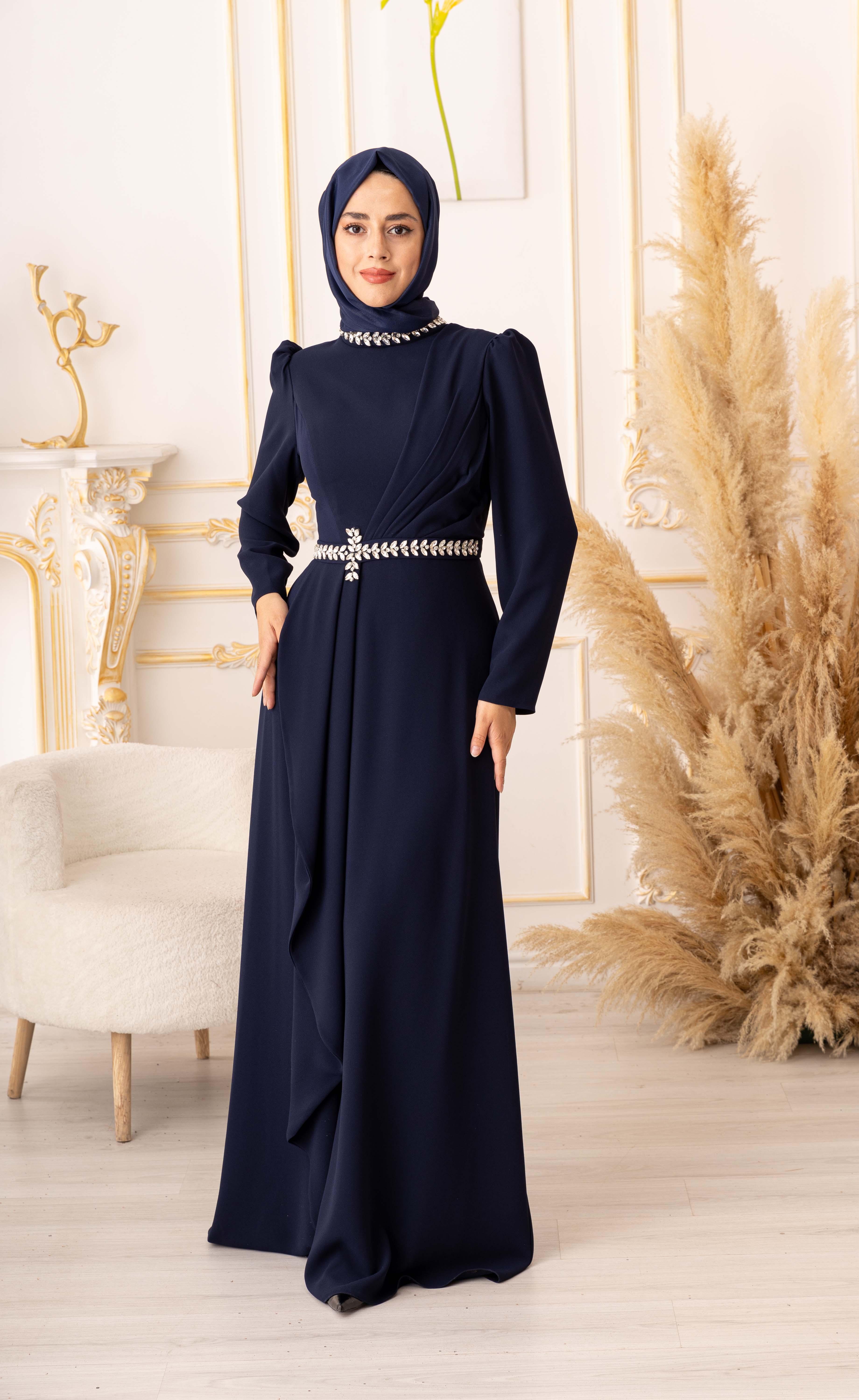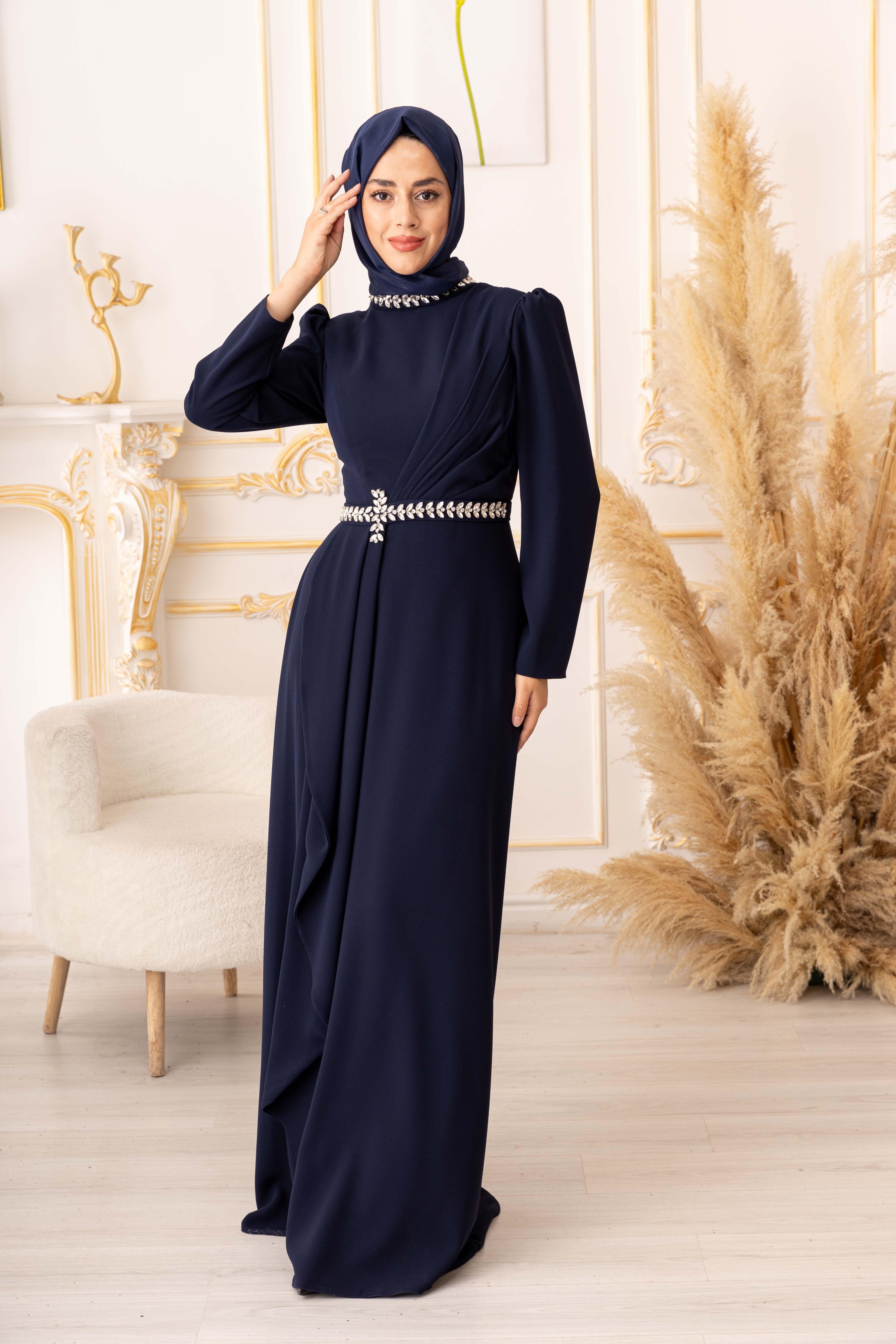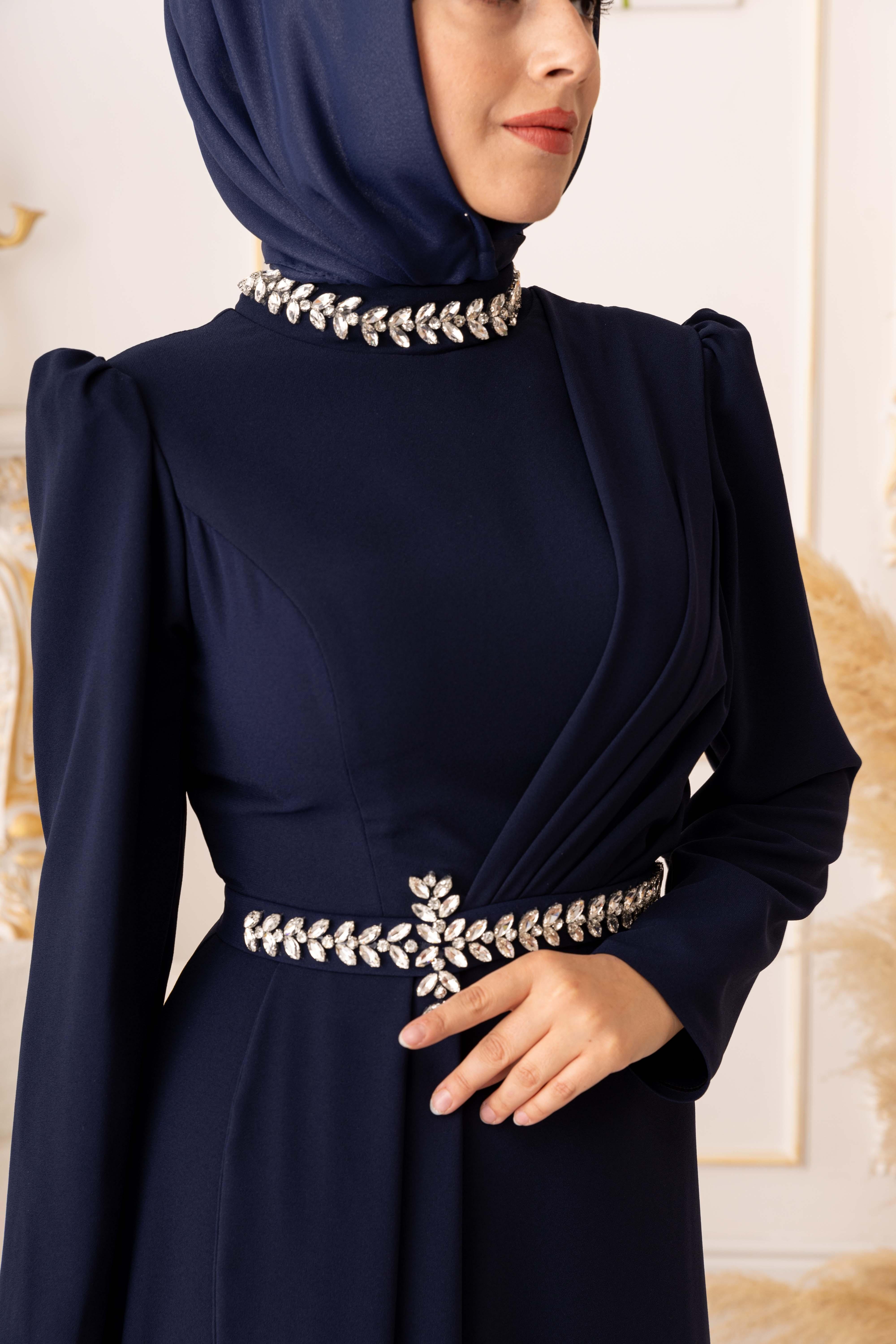 Göğüs kısmı pileli kristal taş detaylı tesettür abiye (K3015), Türk kadınının zarafetini ve şıklığını ön plana çıkaracak özel bir üründür. Özel günlerinizde ve davetlerde size muhteşem bir görünüm kazandıracak bu abiye, değerli müşterilerimizin beğenisine sunulmaktadır.