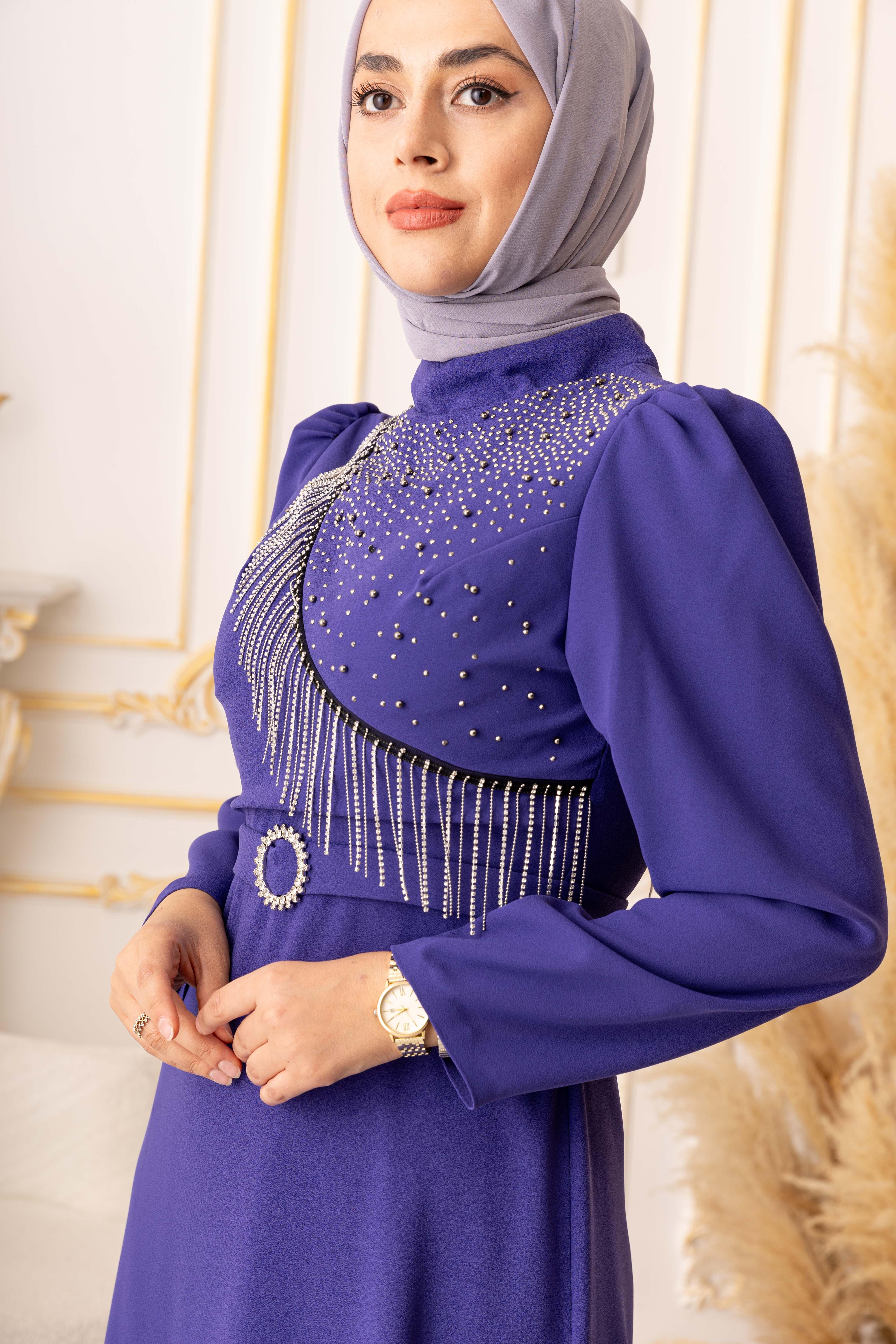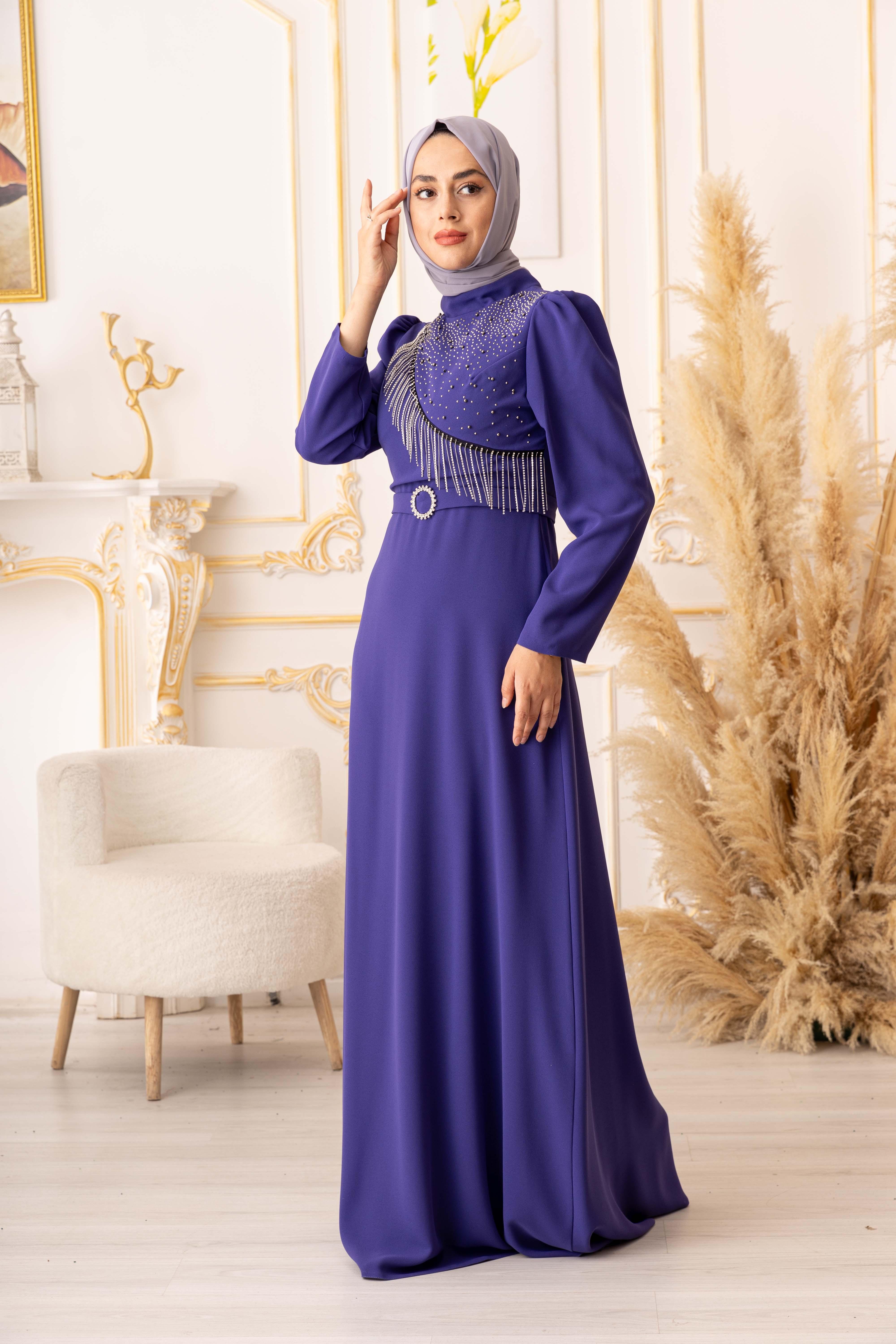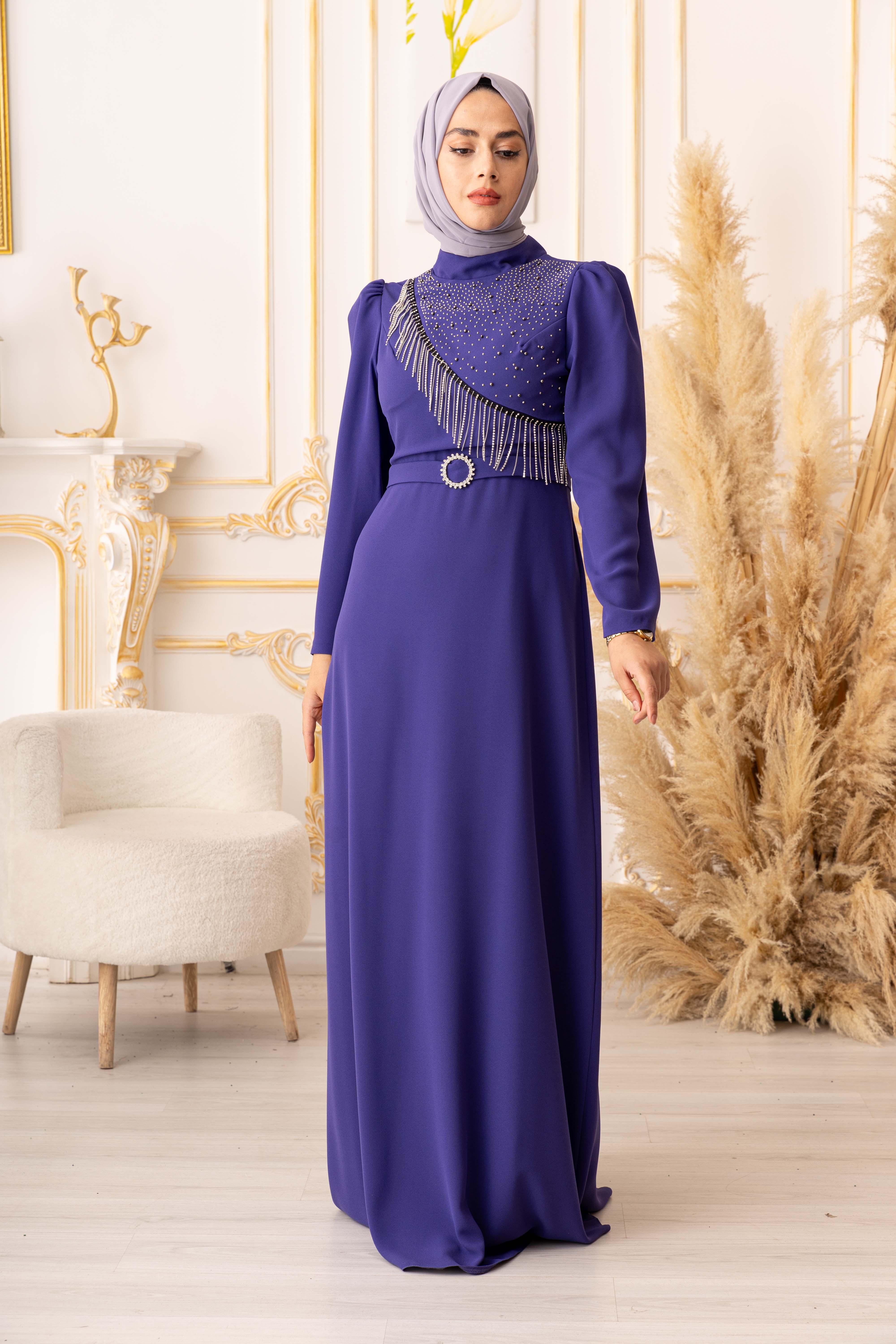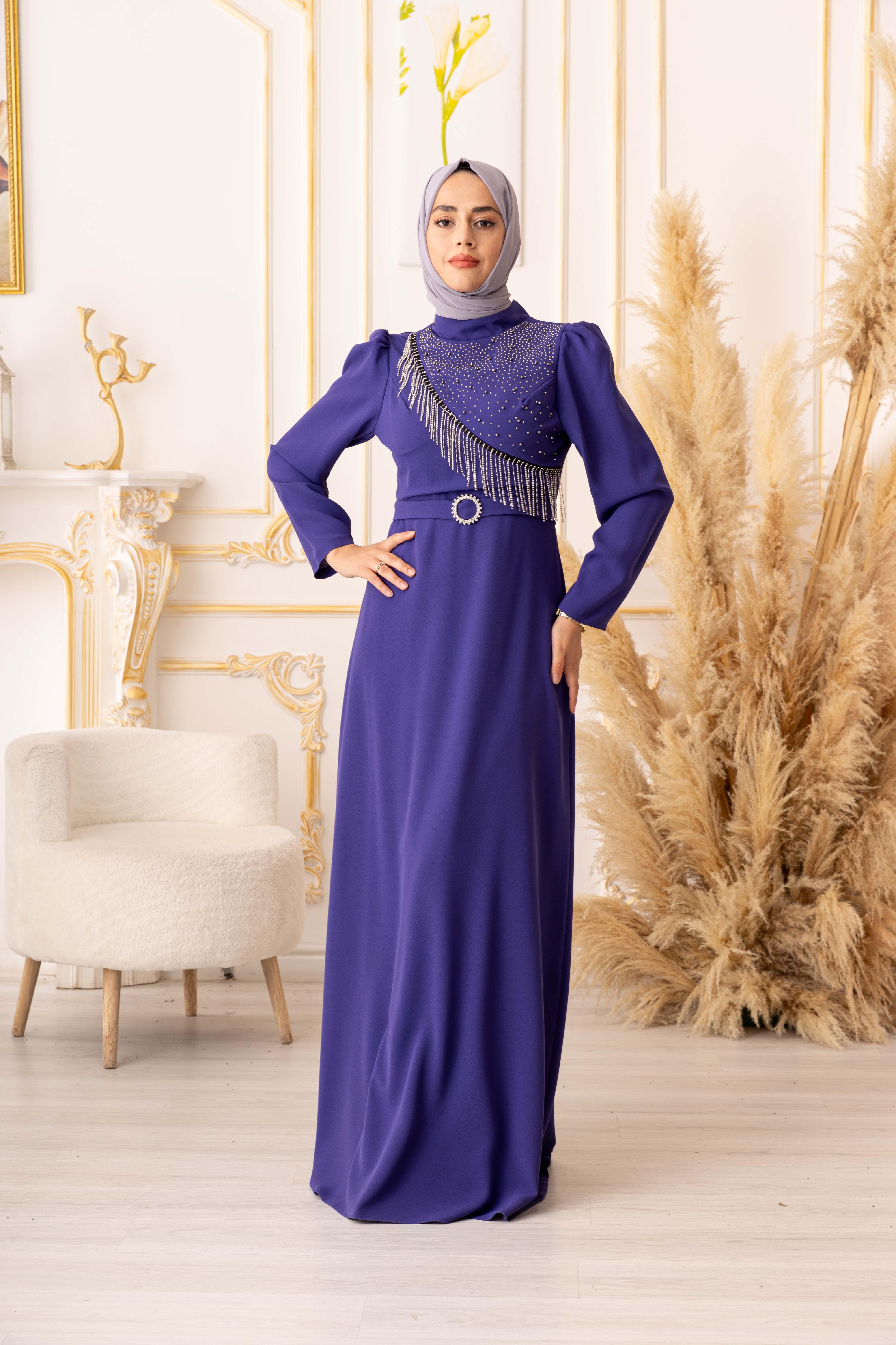GÖĞÜS KISMI TAŞ VE ZİNCİR DETAYLI KREP TESETTÜR ABİYE (K1090), bütün özel gece ve davetlerinizde size eşlik edecek. İster düğün, ister nişan, ister mezuniyet gibi özel günlerde tercih edebilir, isterseniz de özel davetlere katıldığınızda şıklığınızla göz kamaştırabilirsiniz. Üstelik bu abiye, göğüs bölgesindeki ayrıntılar sayesinde şal kullanımını da rahat bir hale getirerek tesettürlü hanımların tercih sebebi olmuştur.