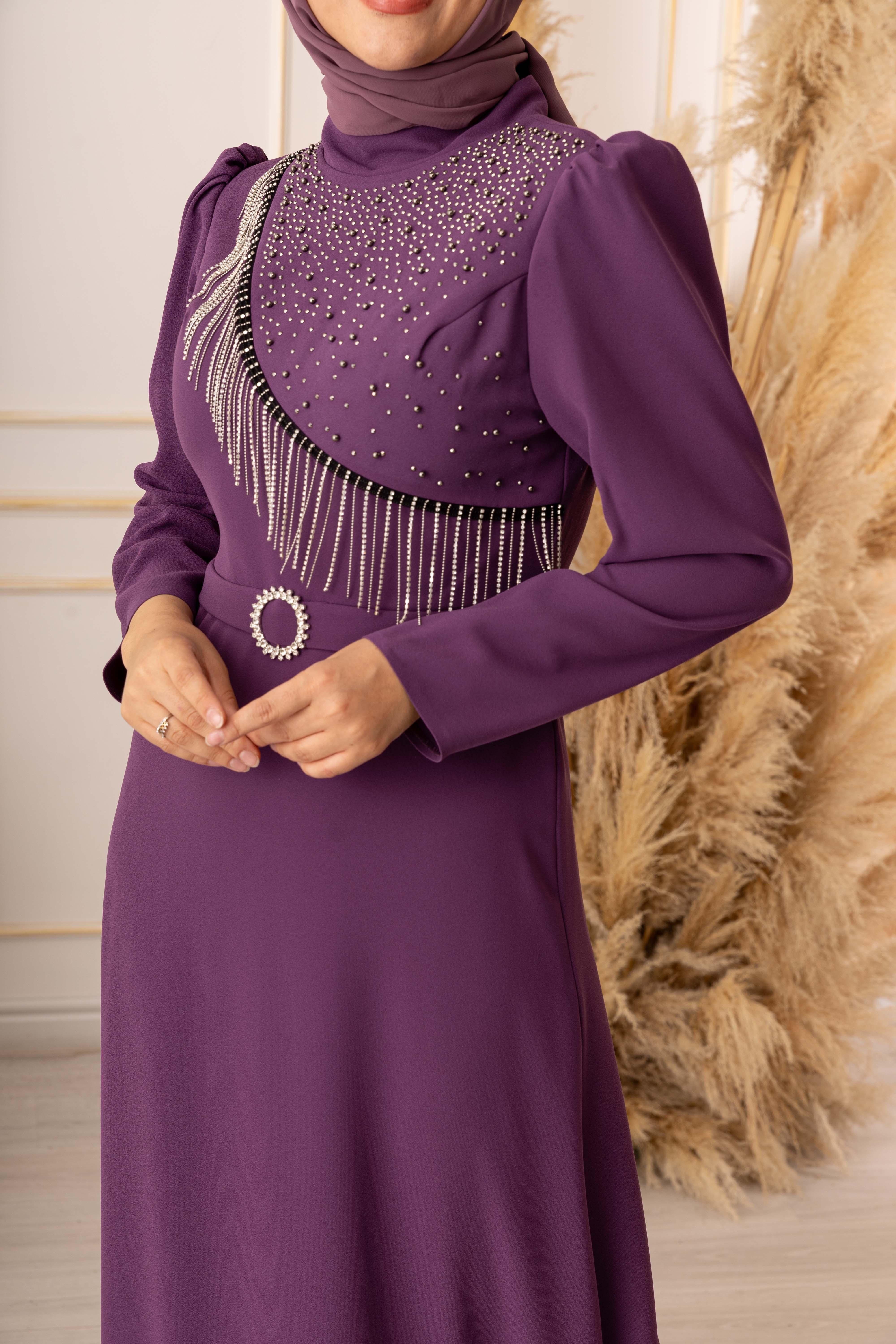 GÖĞÜS KISMI TAŞ VE ZİNCİR DETAYLI KREP TESETTÜR ABİYE (K1090), İslami moda ve tesettür giyim dünyasının en sevilen tasarımlarından biri olarak karşımıza çıkıyor. Dikkat çekici yapıya sahip olan bu abiye, her detayıyla zarafeti ve şıklığı bir arada sunuyor.
