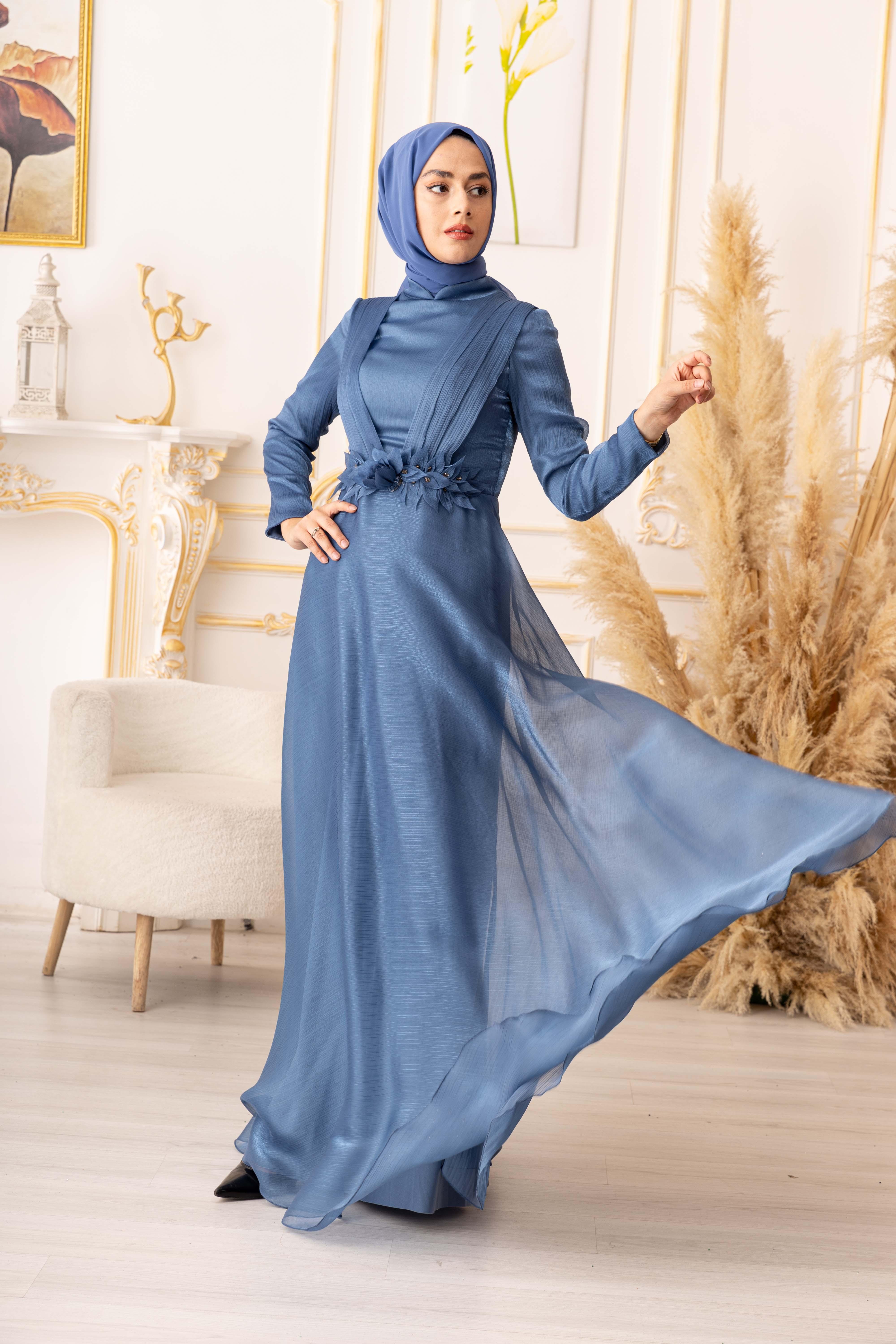 JAN JAN KUMAŞ BELİ ÇİÇEK DETAYLI TESETTÜR ABİYE (K17700), modern tasarımı ve zarif dokusuyla göz kamaştıran bir üründür. Bu tesettür abiye, özel günlerin ve davetlerin vazgeçilmez tercihlerinden biridir.