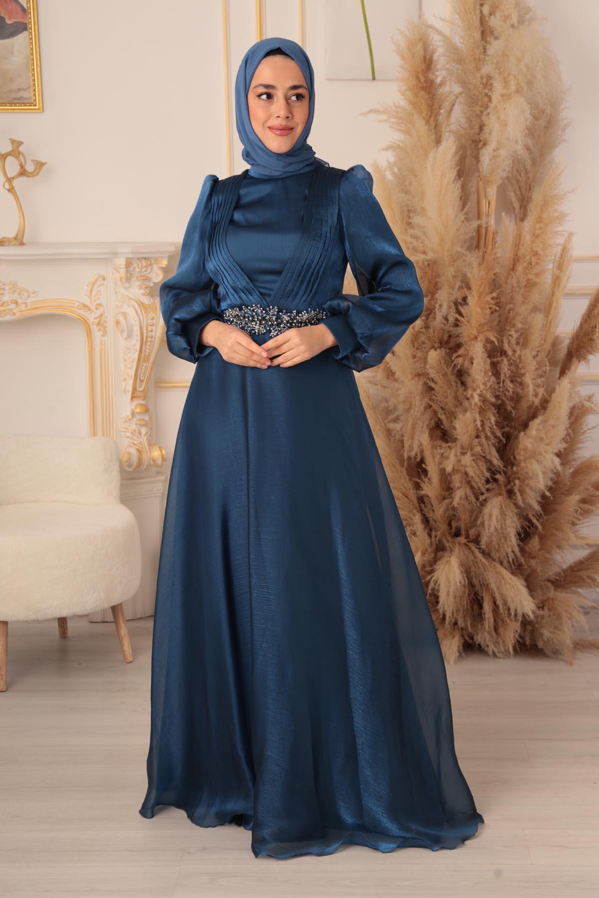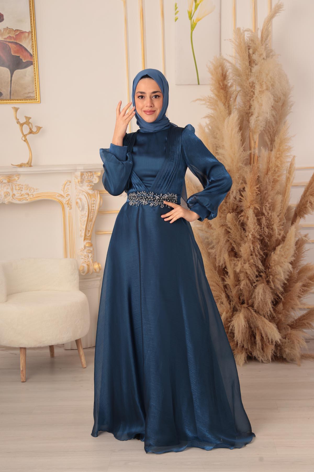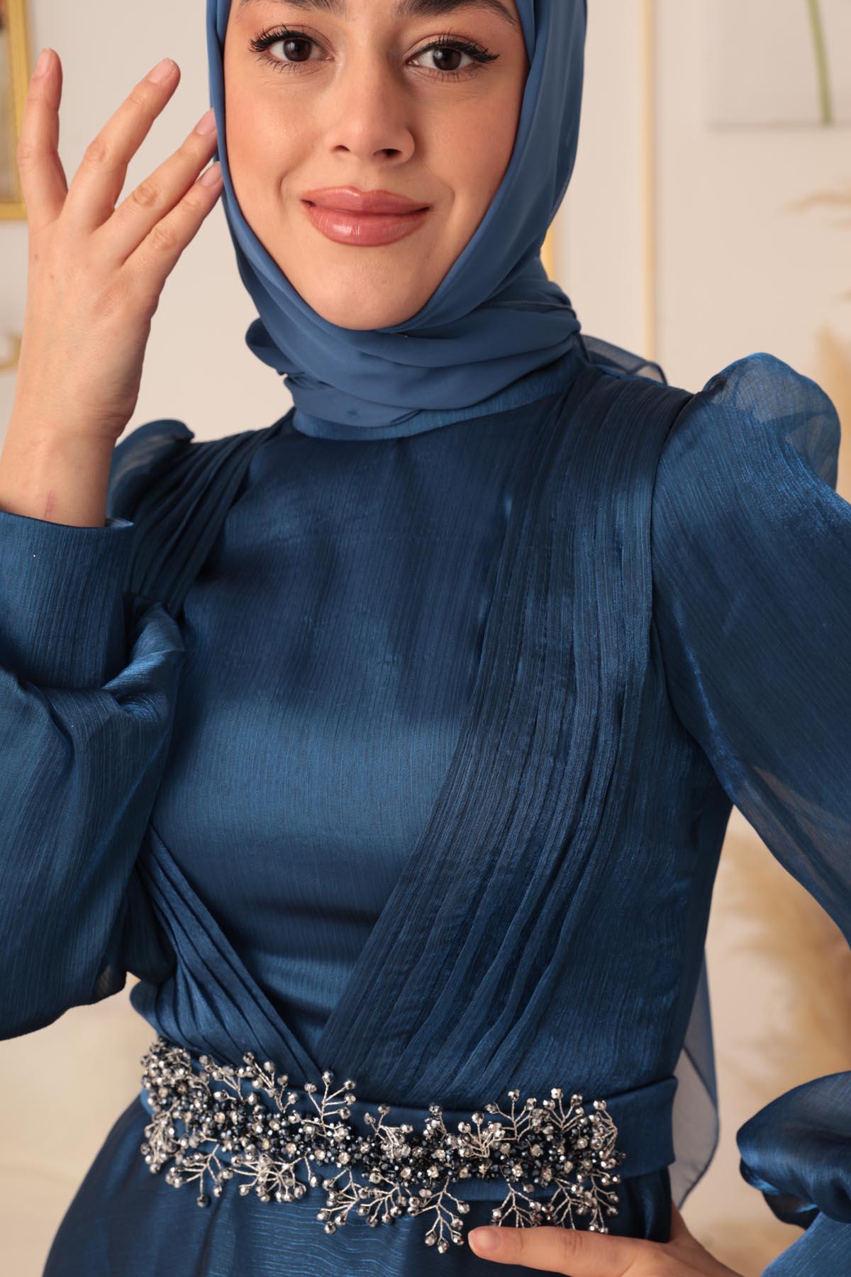 YILDIZ ABİYE markasının imzasını taşıyan K18035, indigo renk seçeneğiyle sizlere sunuluyor. Özel tasarımı ve kaliteli kumaşıyla her daim göz kamaştırmanızı sağlayacak bu şık tesettür abiye, özel günlerinizde sizin en büyük yardımcınız olacak. Koleksiyonunuzda mutlaka yer alması gereken JAN JAN KUMAŞ BONCUKLU SEYYAR TOKALI TESETTÜR ABİYE (K18035), Türk moda anlayışını ve tesettür modasını en iyi şekilde temsil ediyor.