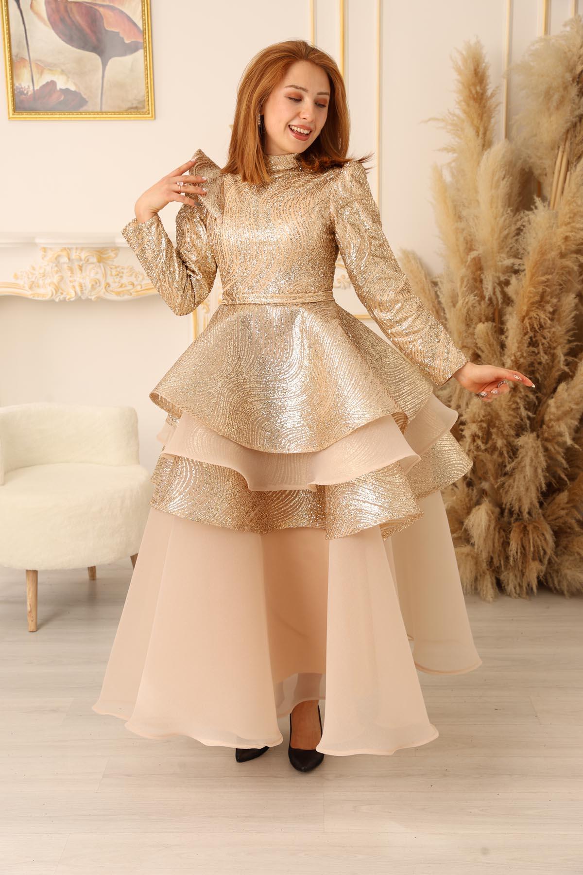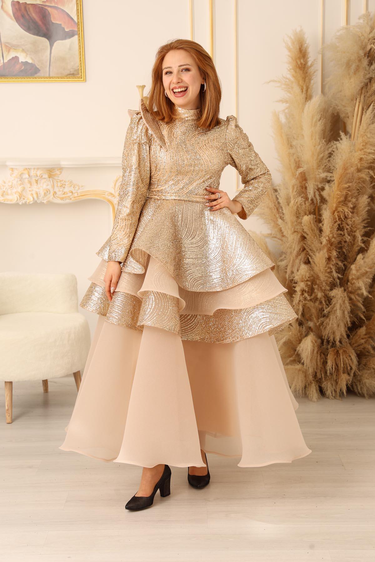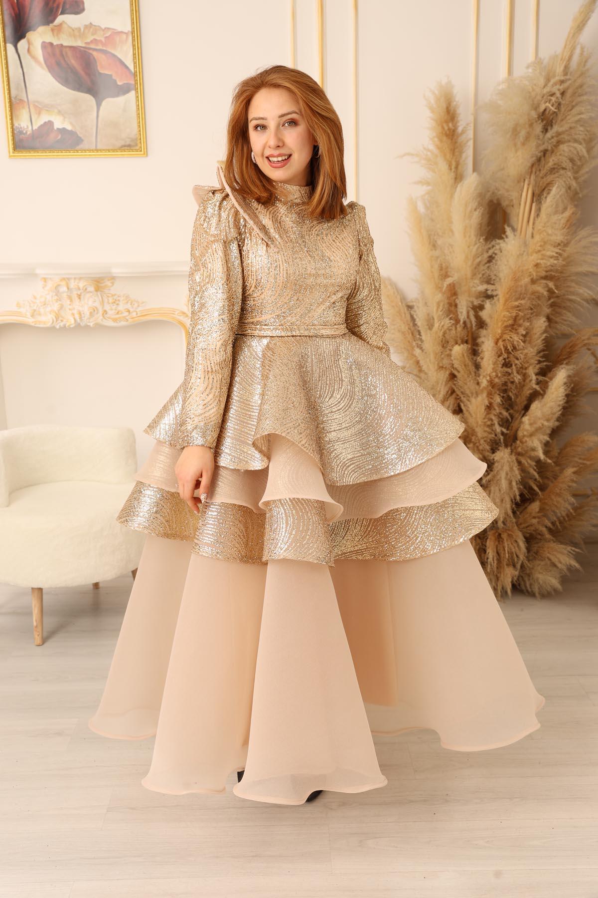 KAT KAT SİMLİ OMUZ DETAYLI PRENSES MODEL TESETTÜR ABİYE (K18500), en özel günlerinizde size muhteşem bir görünüm kazandıracak eşsiz bir tesettür abiye modelidir. Bu göz kamaştırıcı abiye, zarif tasarımı ve detaylı işlemeleri ile sizi prenses gibi hissettirecek.