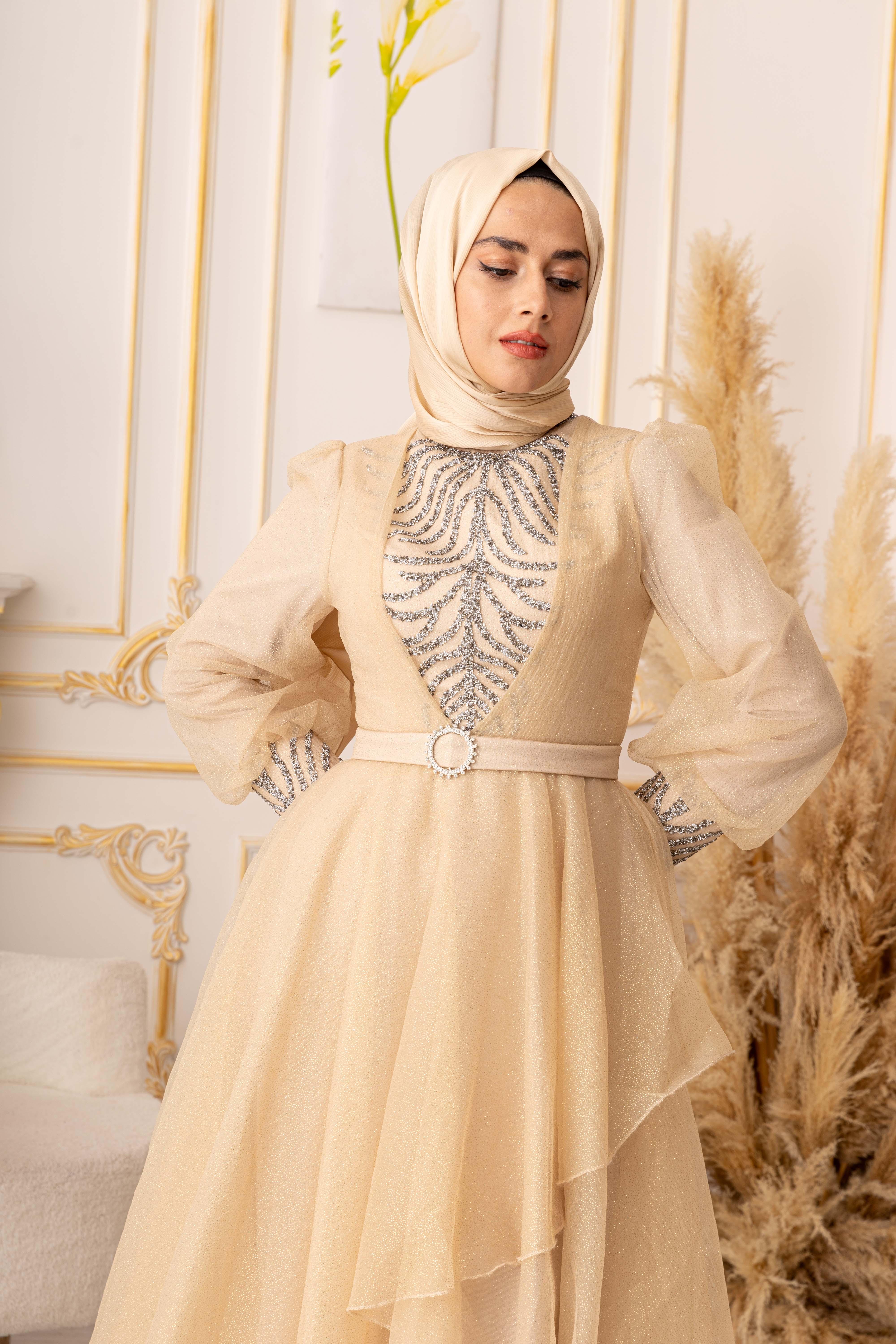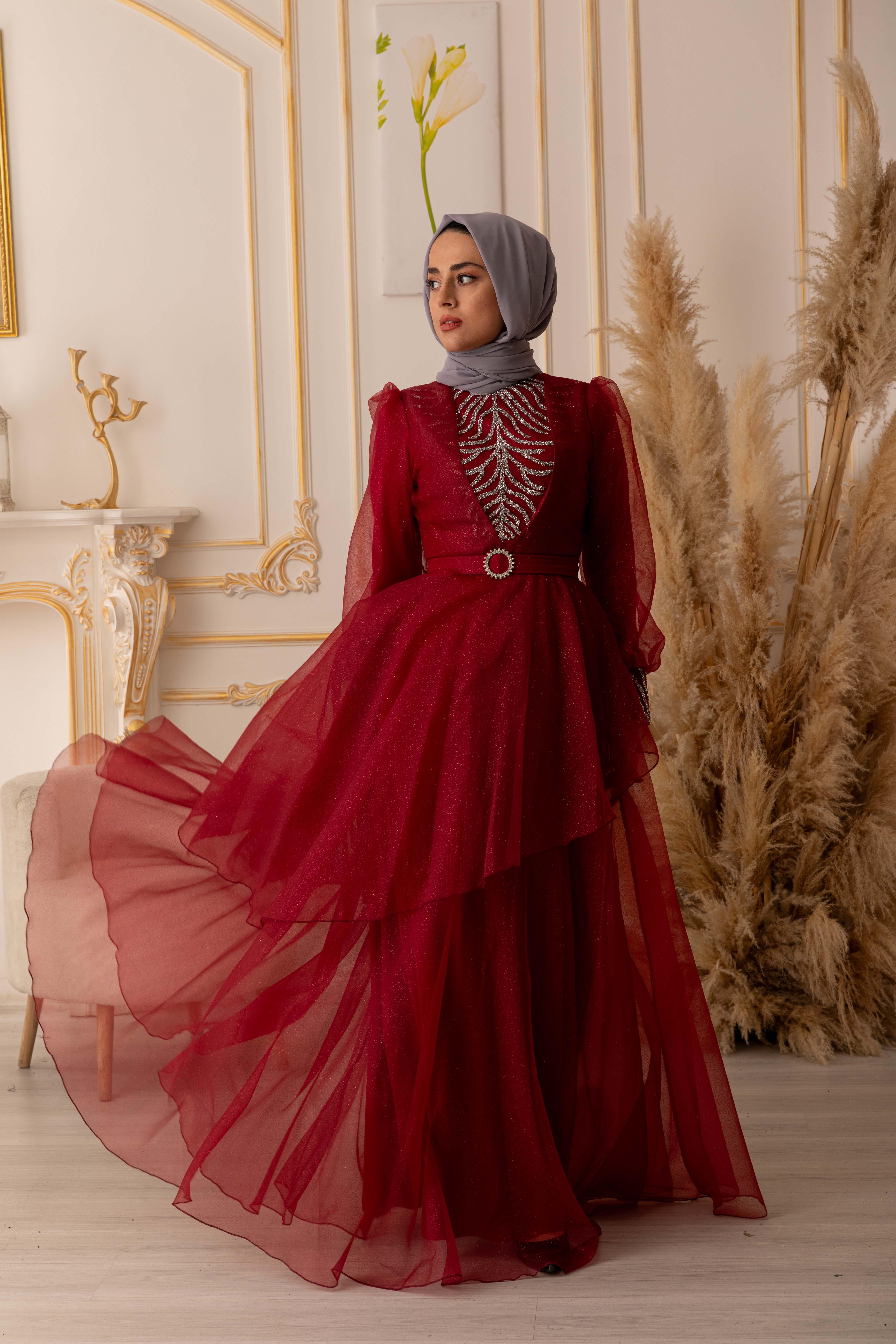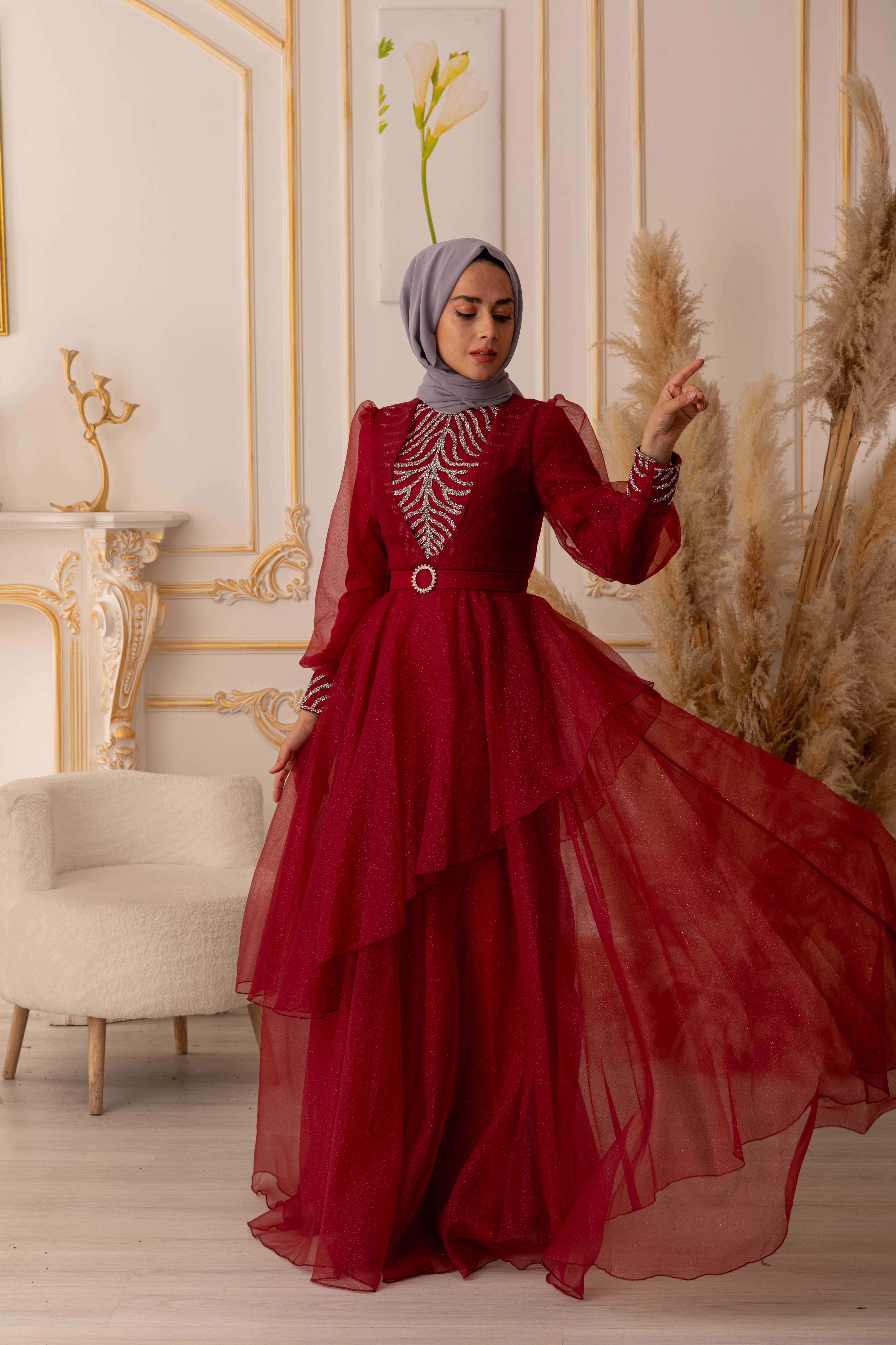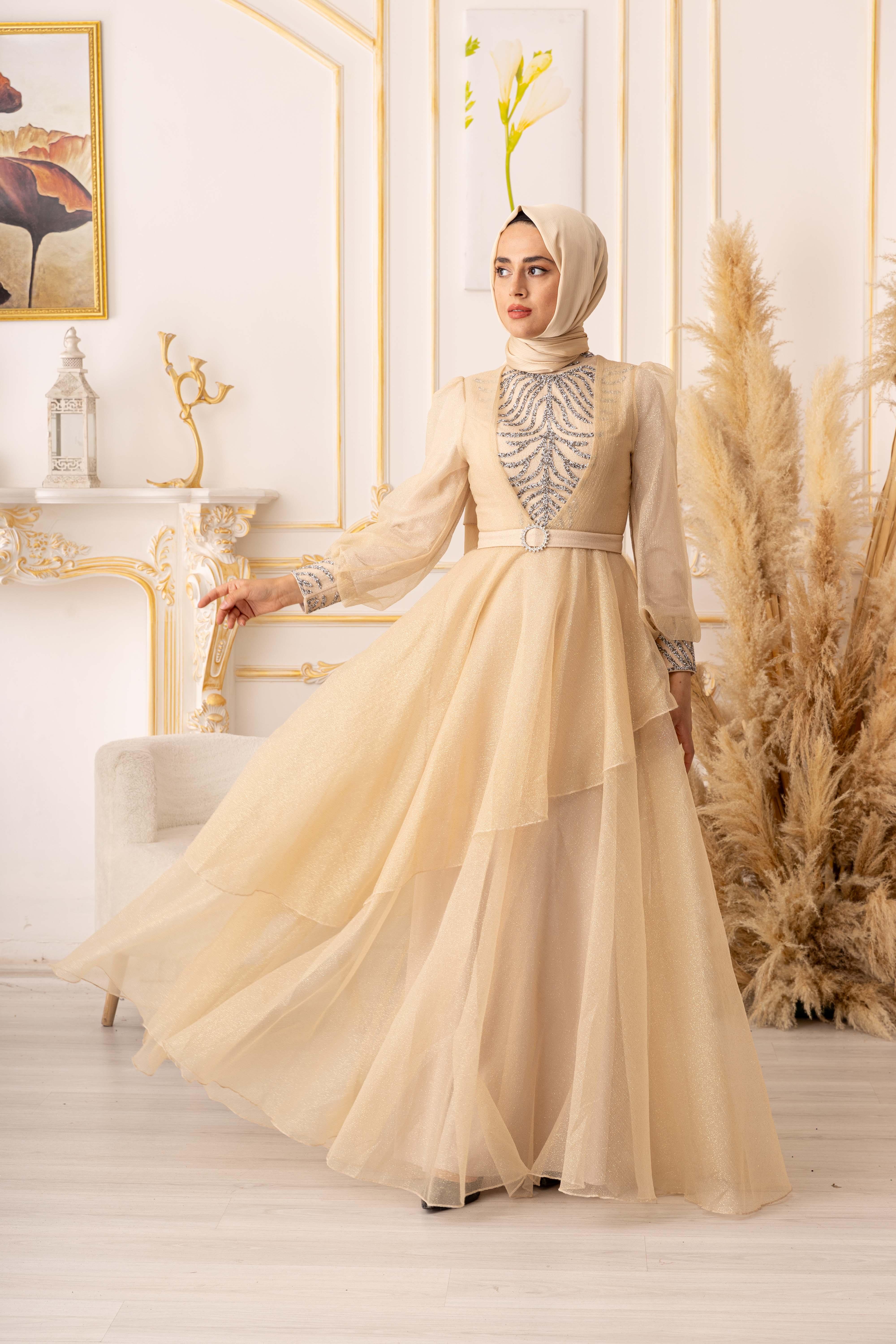 Bu göz alıcı tesettür abiye, özel günlerinizde size şıklık ve zarafet katacaktır. Ürünümüz, yüksek kaliteli ve dayanıklı bir simli kumaştan üretilmiştir. Kullanılan kumaşın özelliği, kolay kırışmaması ve uzun ömürlü olmasıdır. Ayrıca, yapısında elastan bulunması sayesinde vücuda tam oturarak kullanım kolaylığı sağlar.