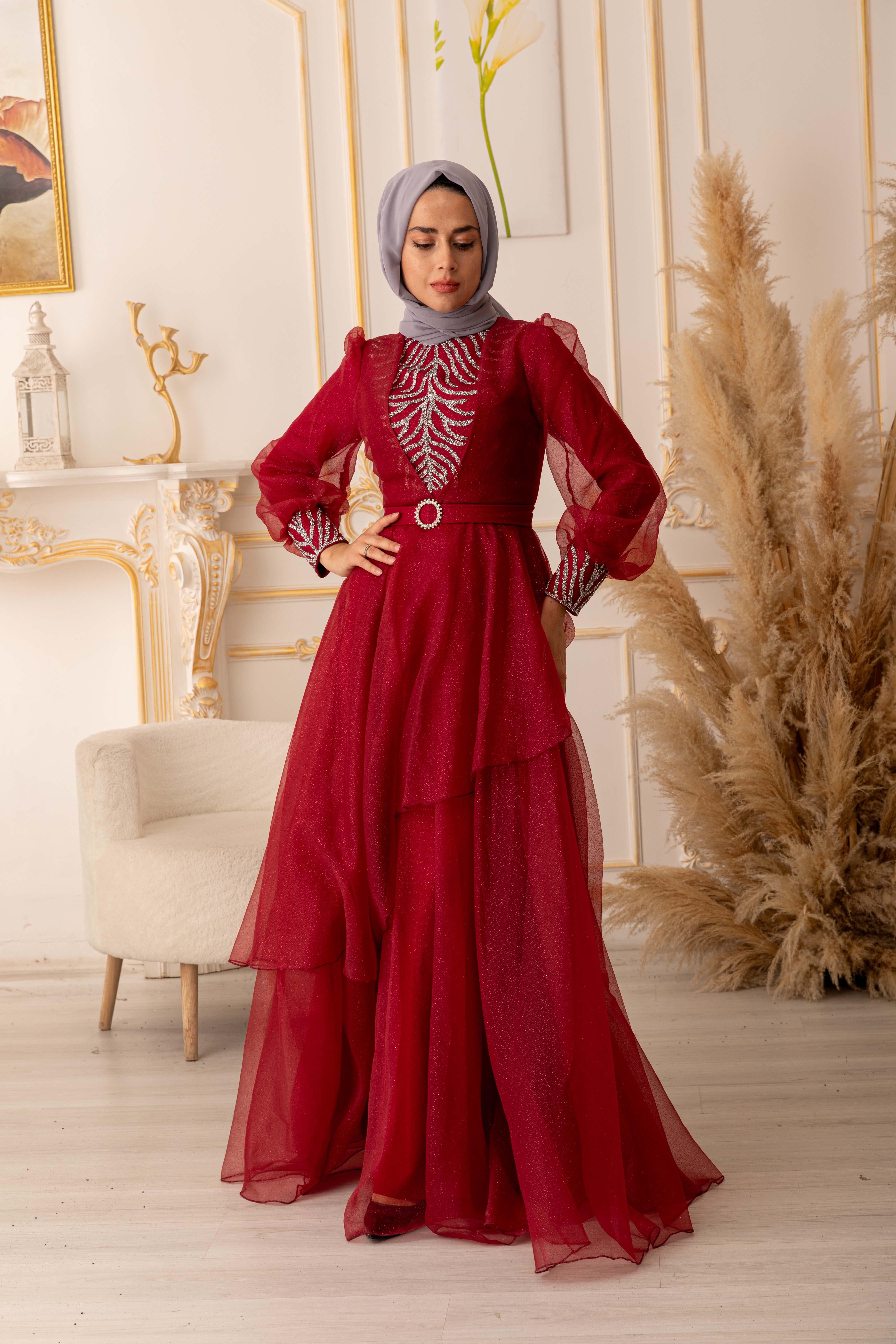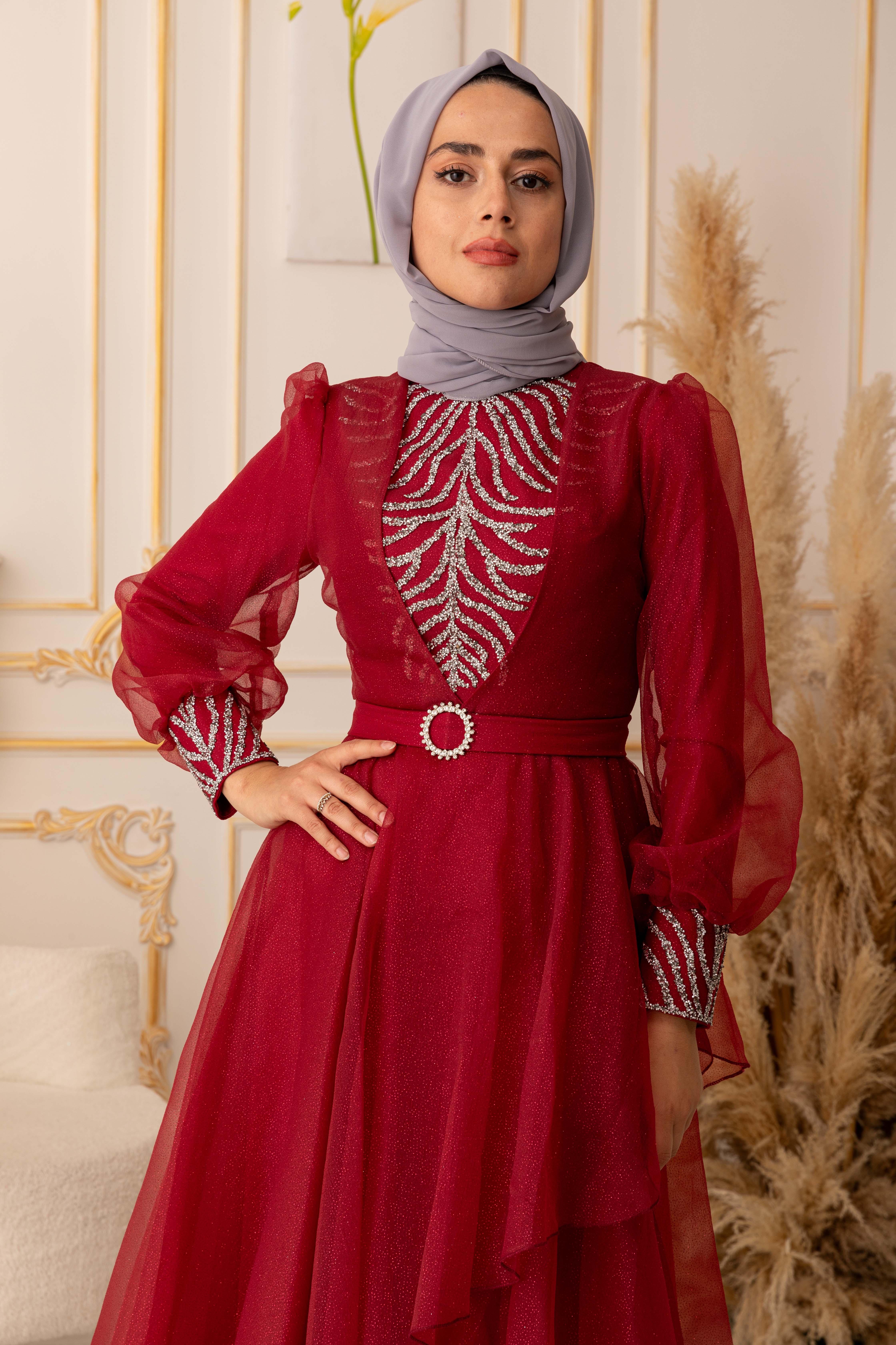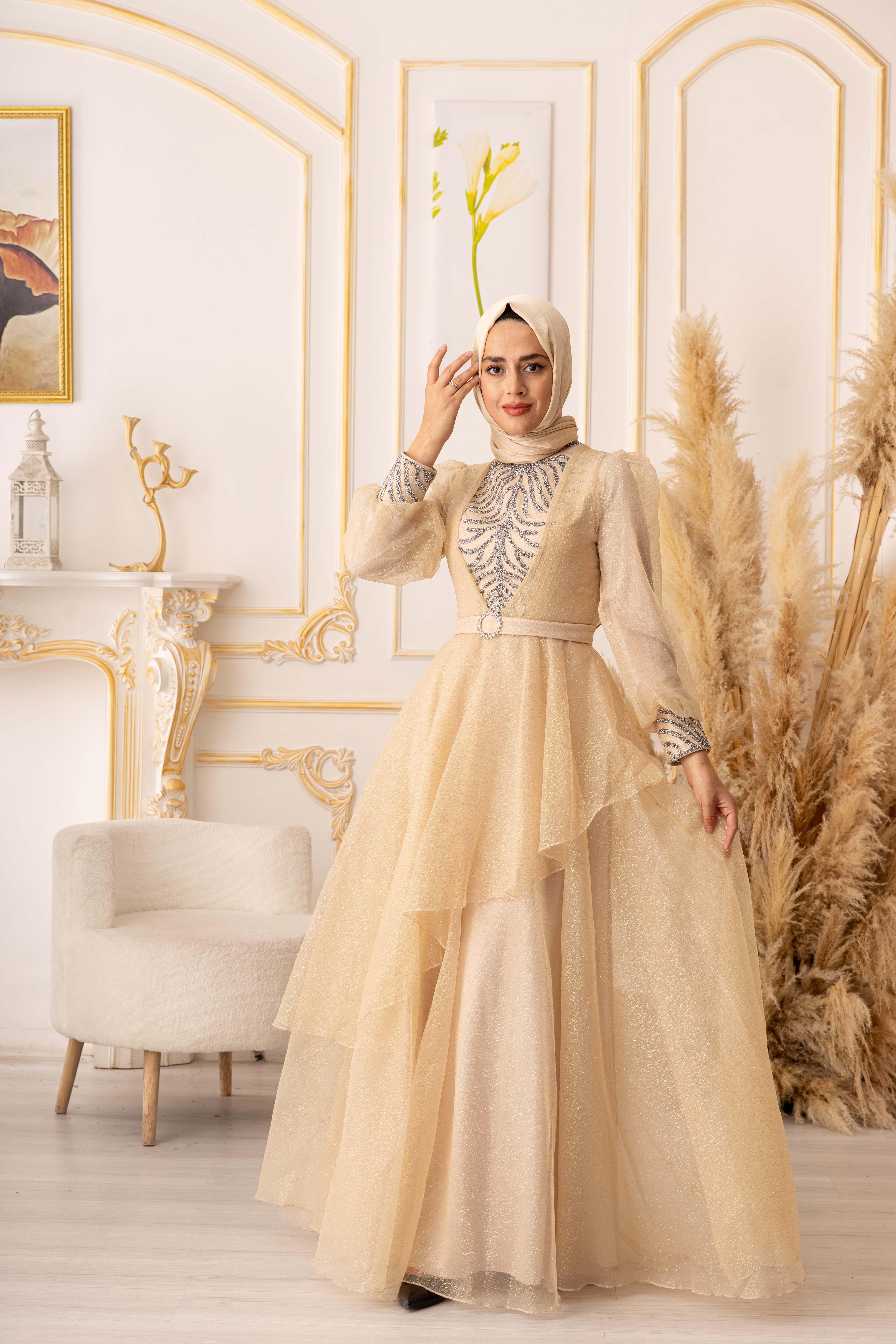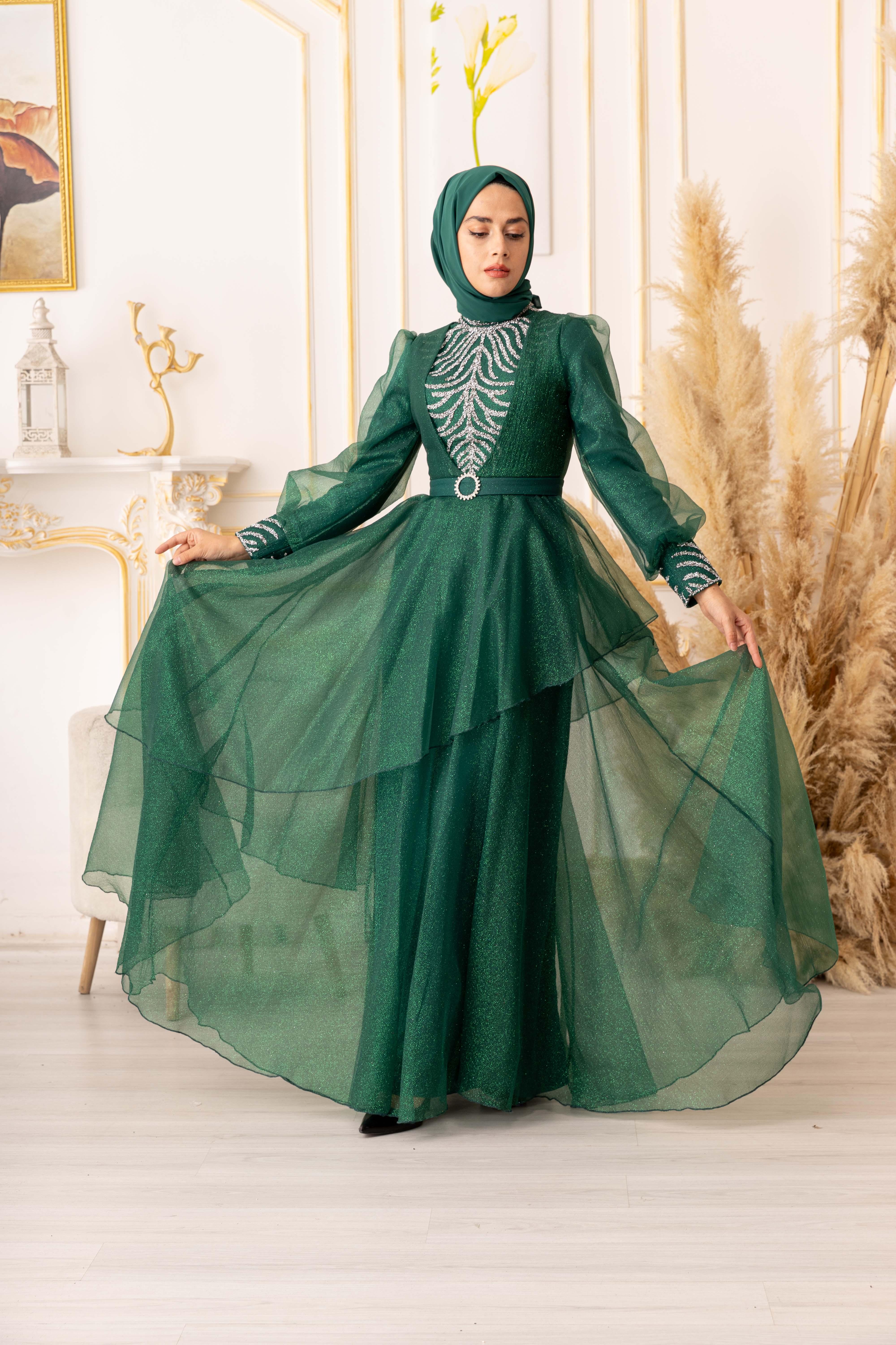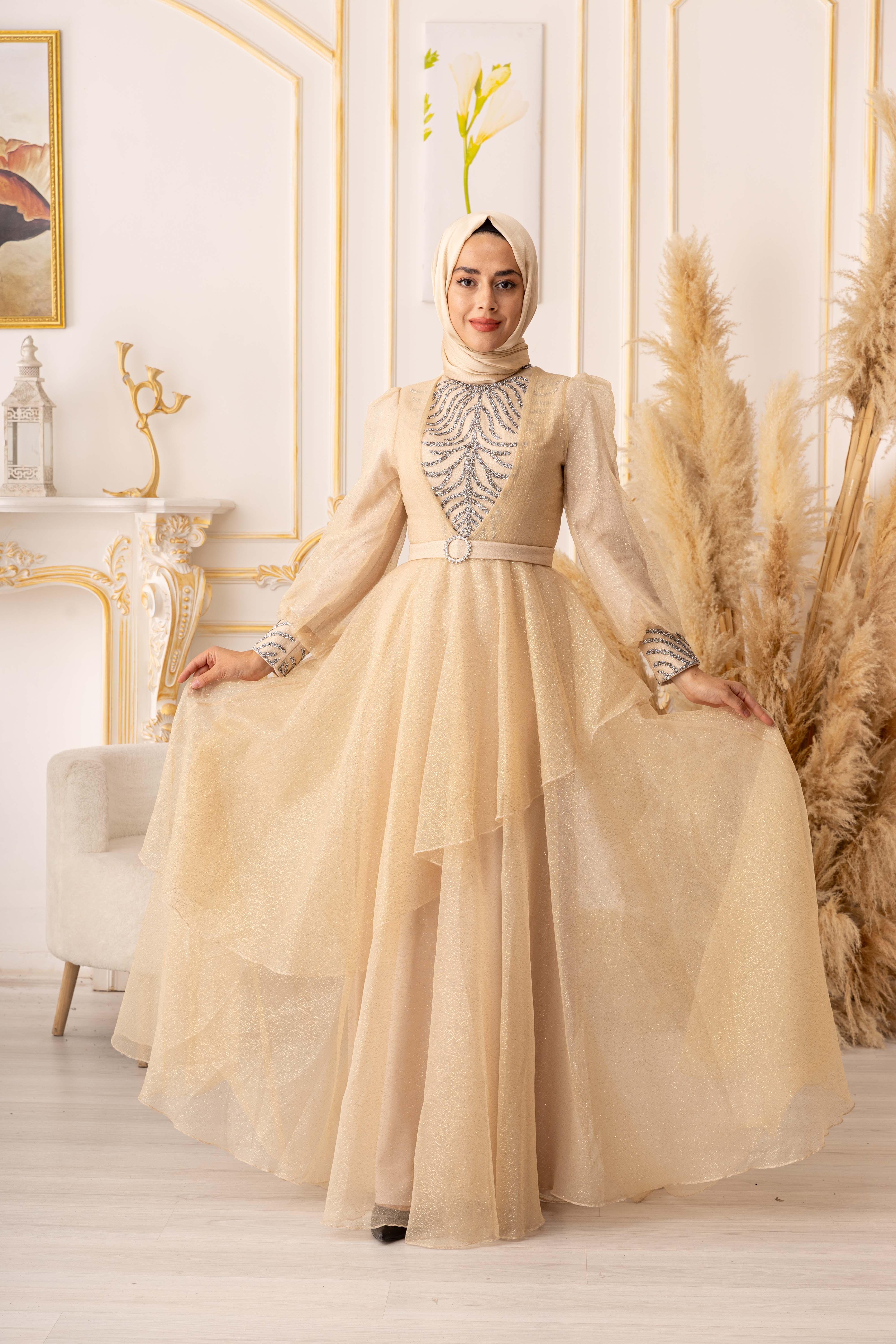 Bu göz alıcı tesettür abiye, özel günlerinizde size şıklık ve zarafet katacaktır. Ürünümüz, yüksek kaliteli ve dayanıklı bir simli kumaştan üretilmiştir. Kullanılan kumaşın özelliği, kolay kırışmaması ve uzun ömürlü olmasıdır. Ayrıca, yapısında elastan bulunması sayesinde vücuda tam oturarak kullanım kolaylığı sağlar.