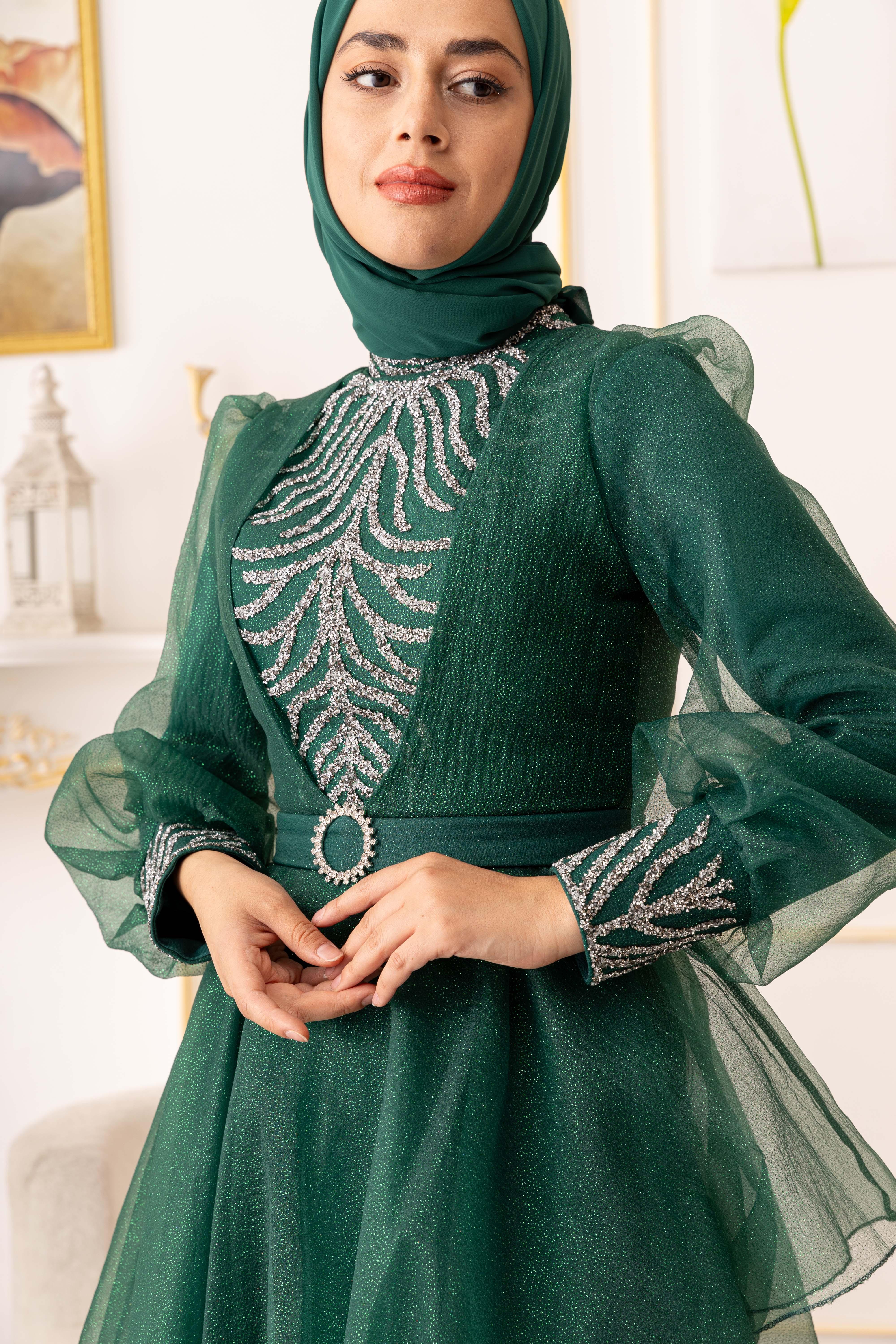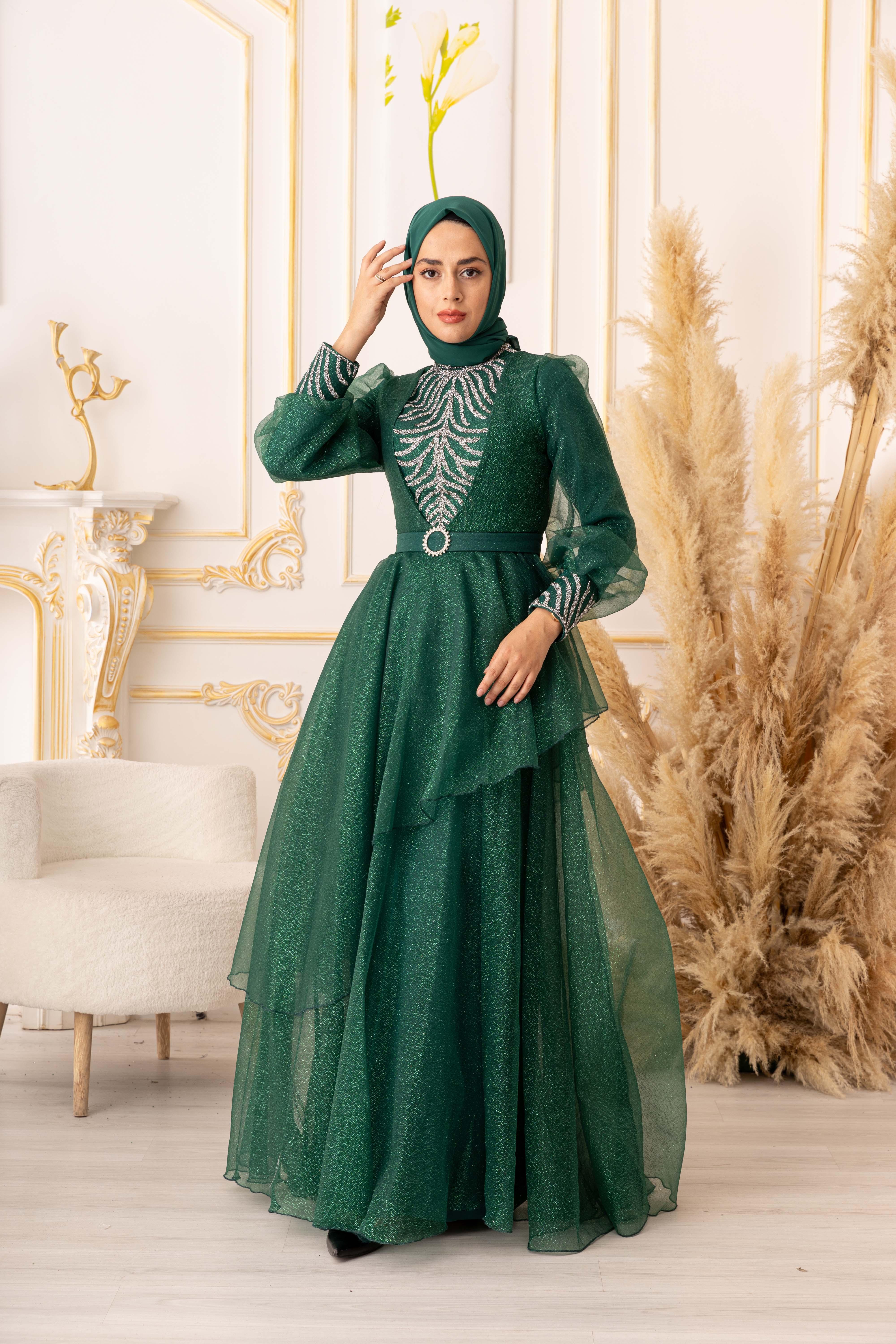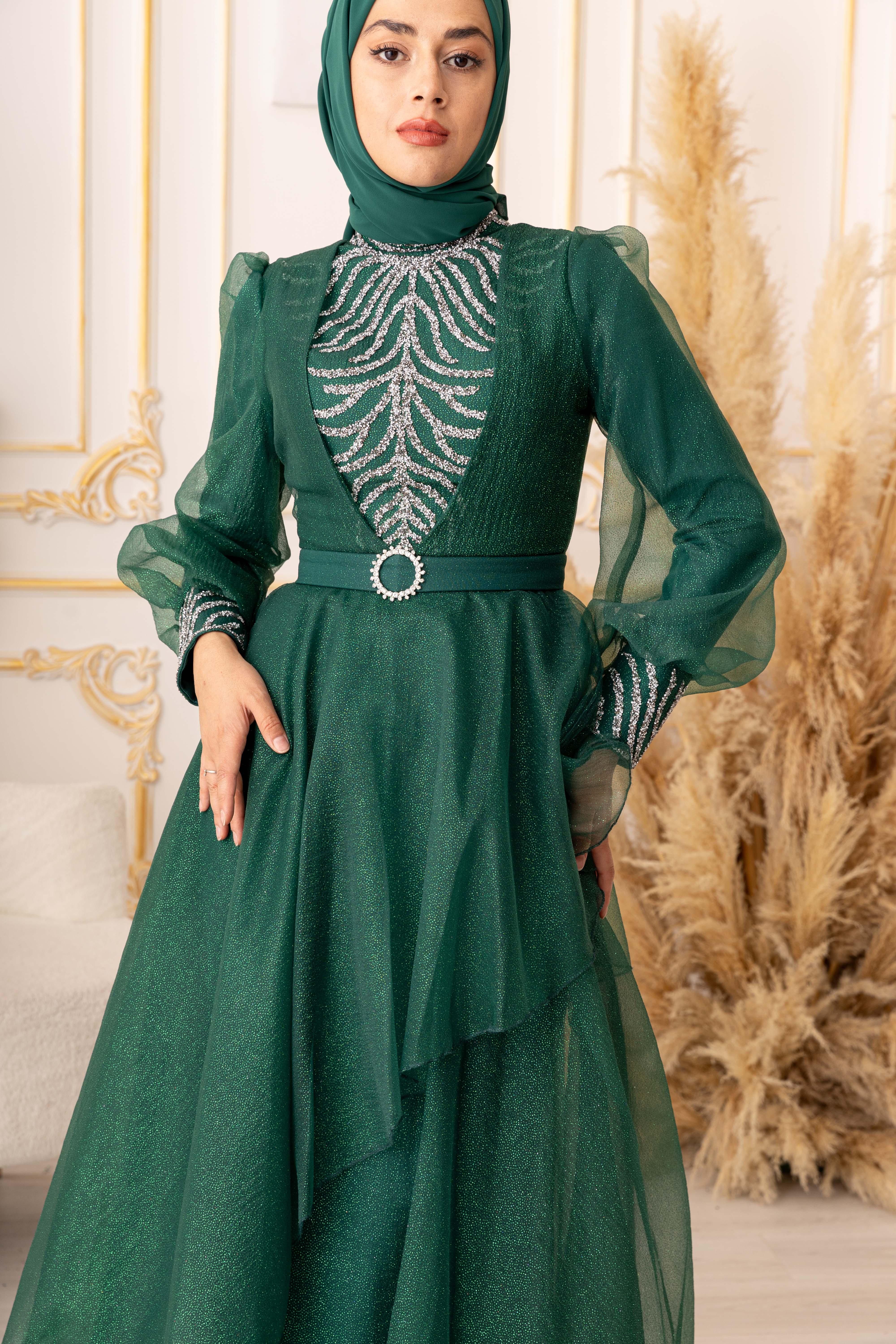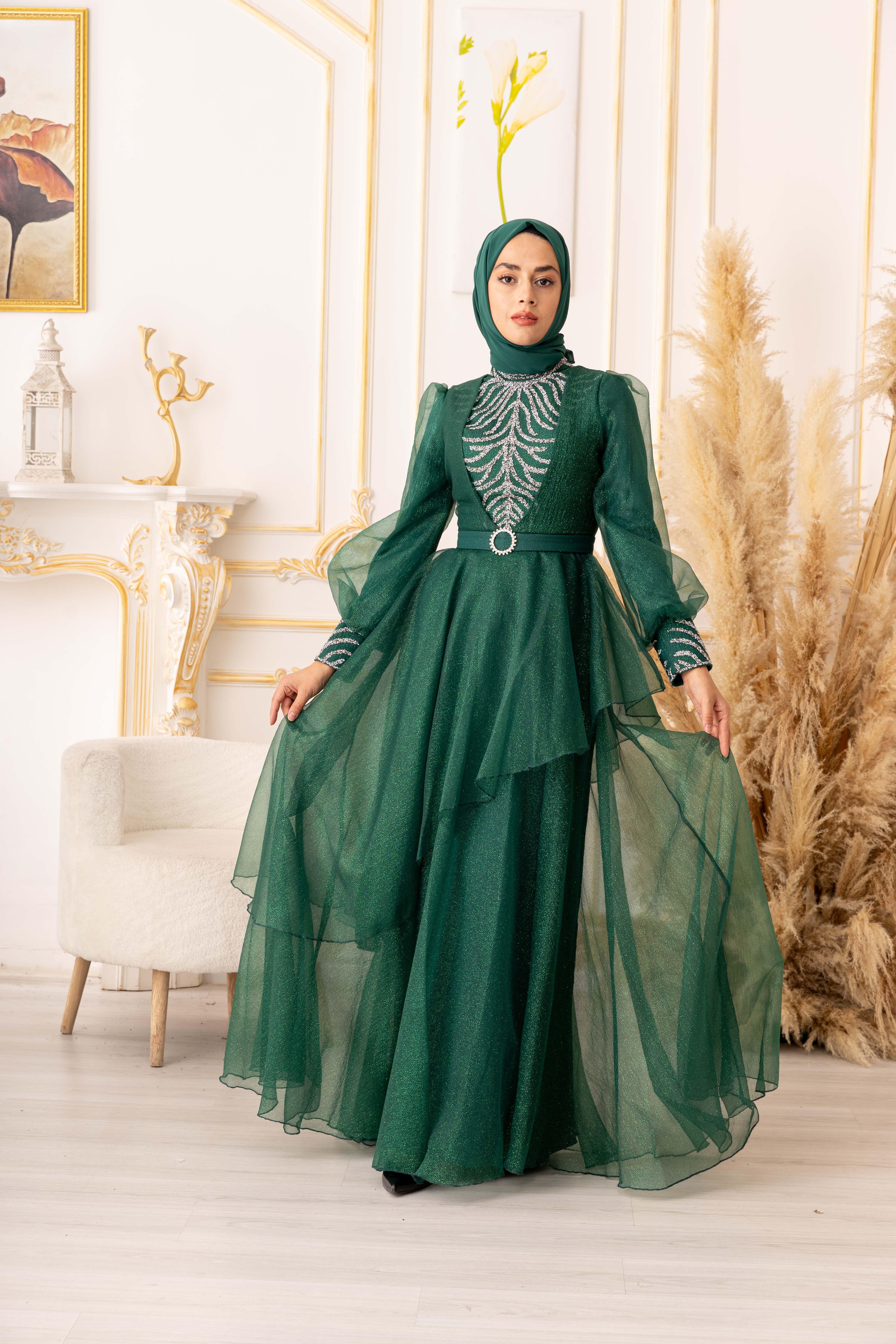 Bu göz alıcı tesettür abiye, özel günlerinizde size şıklık ve zarafet katacaktır. Ürünümüz, yüksek kaliteli ve dayanıklı bir simli kumaştan üretilmiştir. Kullanılan kumaşın özelliği, kolay kırışmaması ve uzun ömürlü olmasıdır. Ayrıca, yapısında elastan bulunması sayesinde vücuda tam oturarak kullanım kolaylığı sağlar.