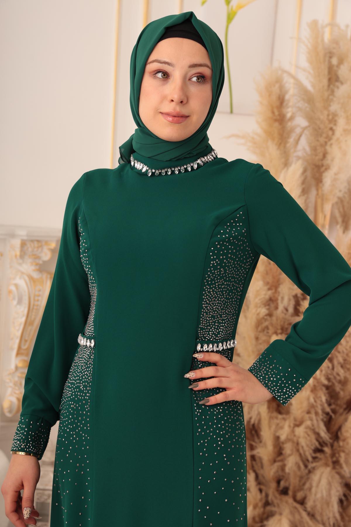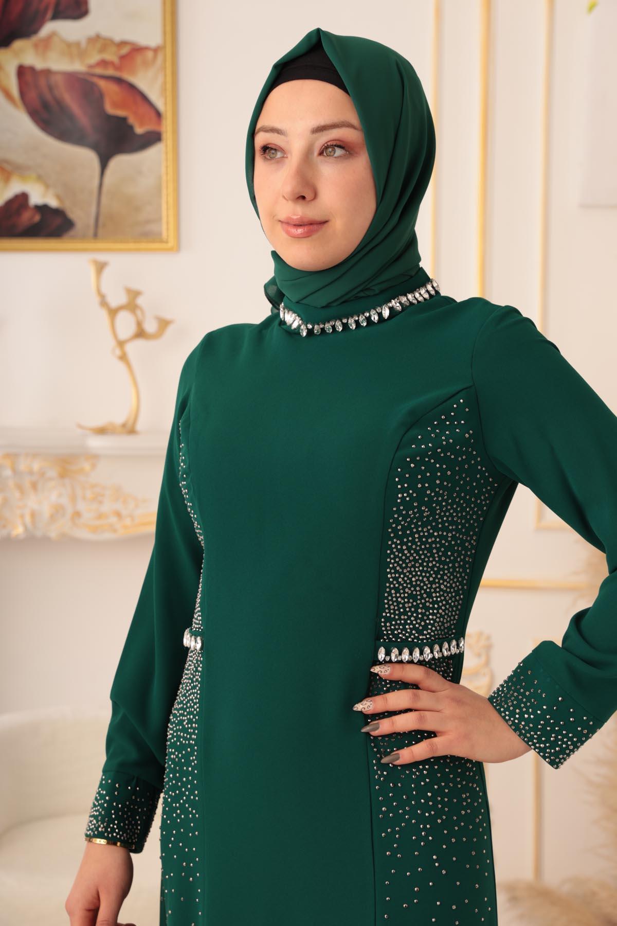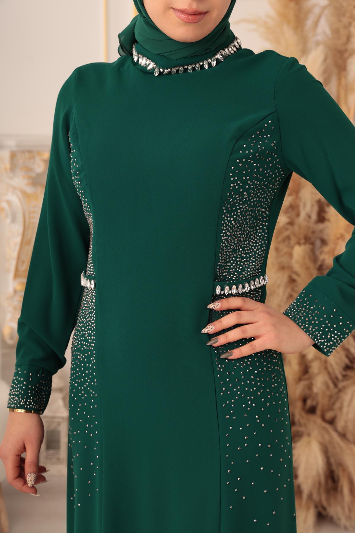 KRİSTAL TAŞ DETAYLI TESETTÜR ABİYE (K1070), her kadının kıyafetlerinde zarif ve şık bir görünüm yakalamasına yardımcı olmak için tasarlanmış bir abiye elbisedir. Bu muhteşem elbise, detaylardaki zarafeti ve özenle işlenmiş kristal taşlarıyla göz kamaştırmaktadır.