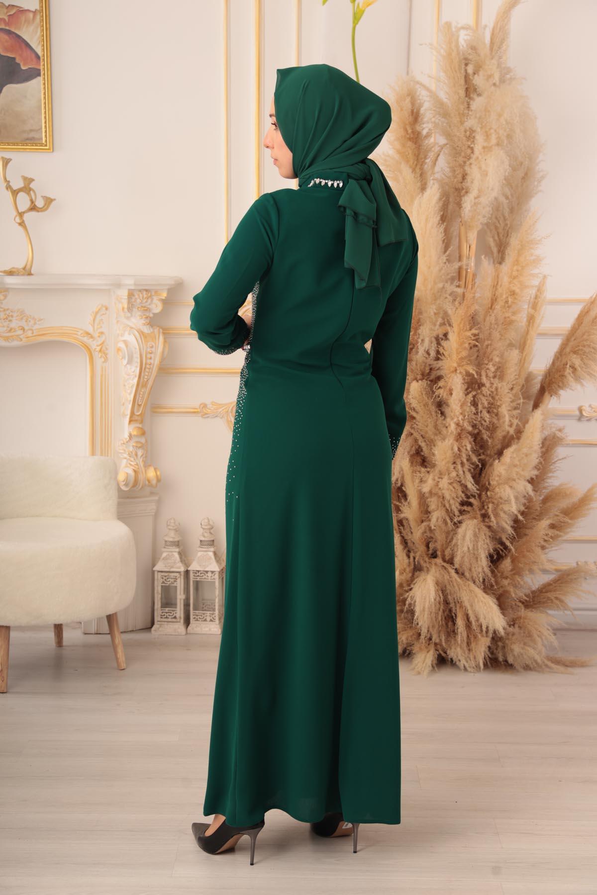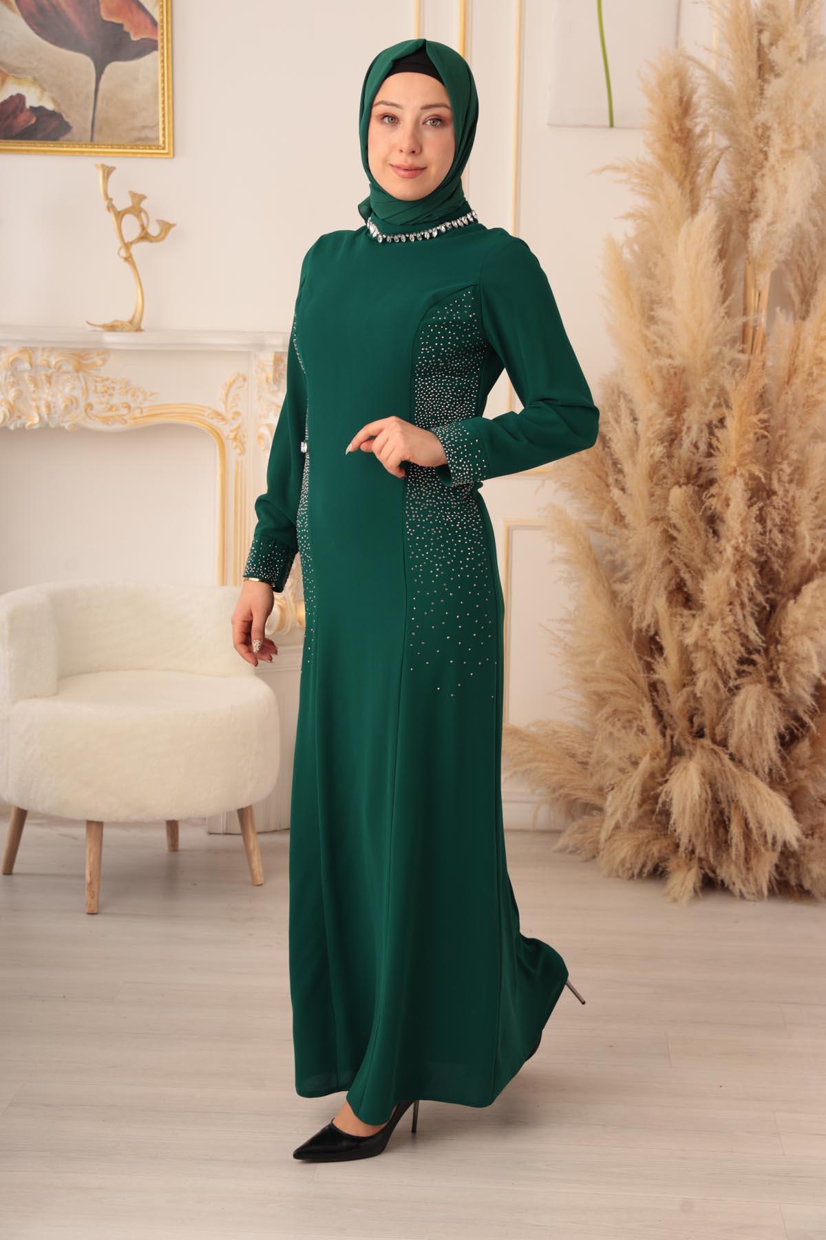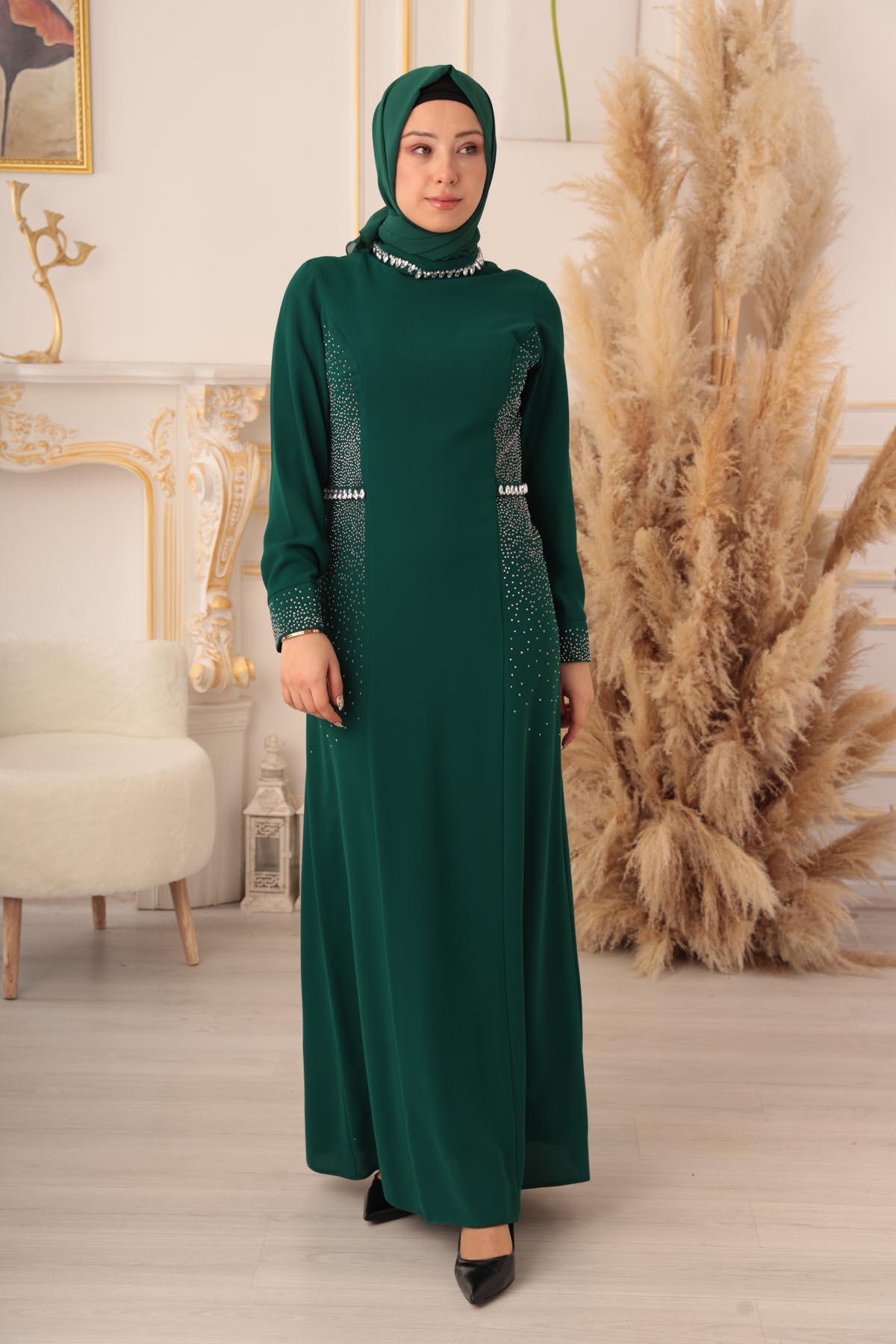 KRİSTAL TAŞ DETAYLI TESETTÜR ABİYE (K1070), her kadının kıyafetlerinde zarif ve şık bir görünüm yakalamasına yardımcı olmak için tasarlanmış bir abiye elbisedir. Bu muhteşem elbise, detaylardaki zarafeti ve özenle işlenmiş kristal taşlarıyla göz kamaştırmaktadır.