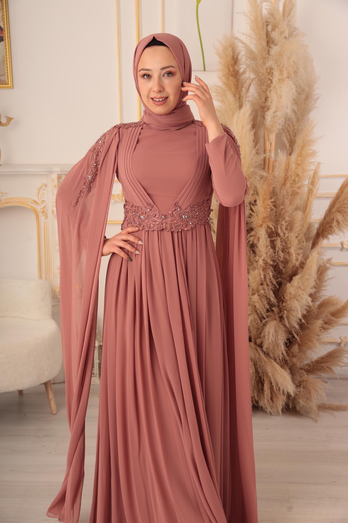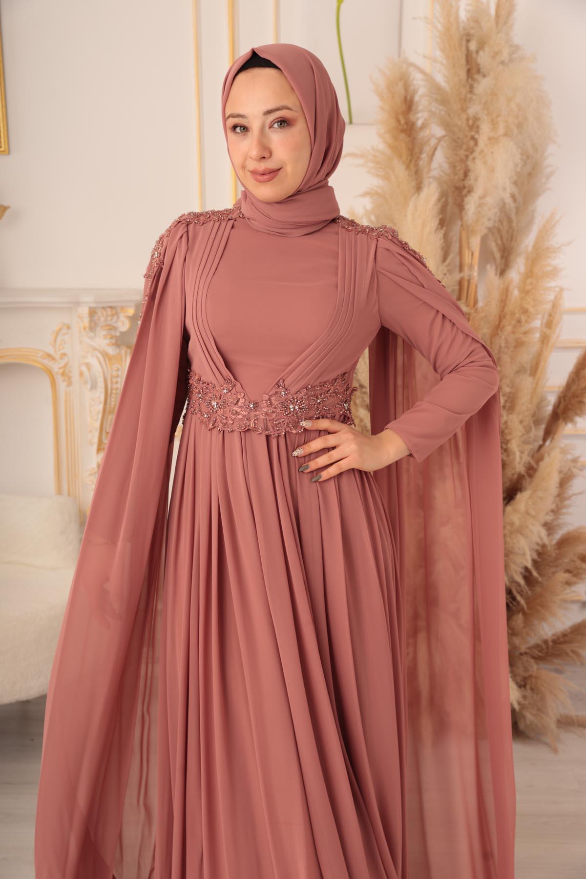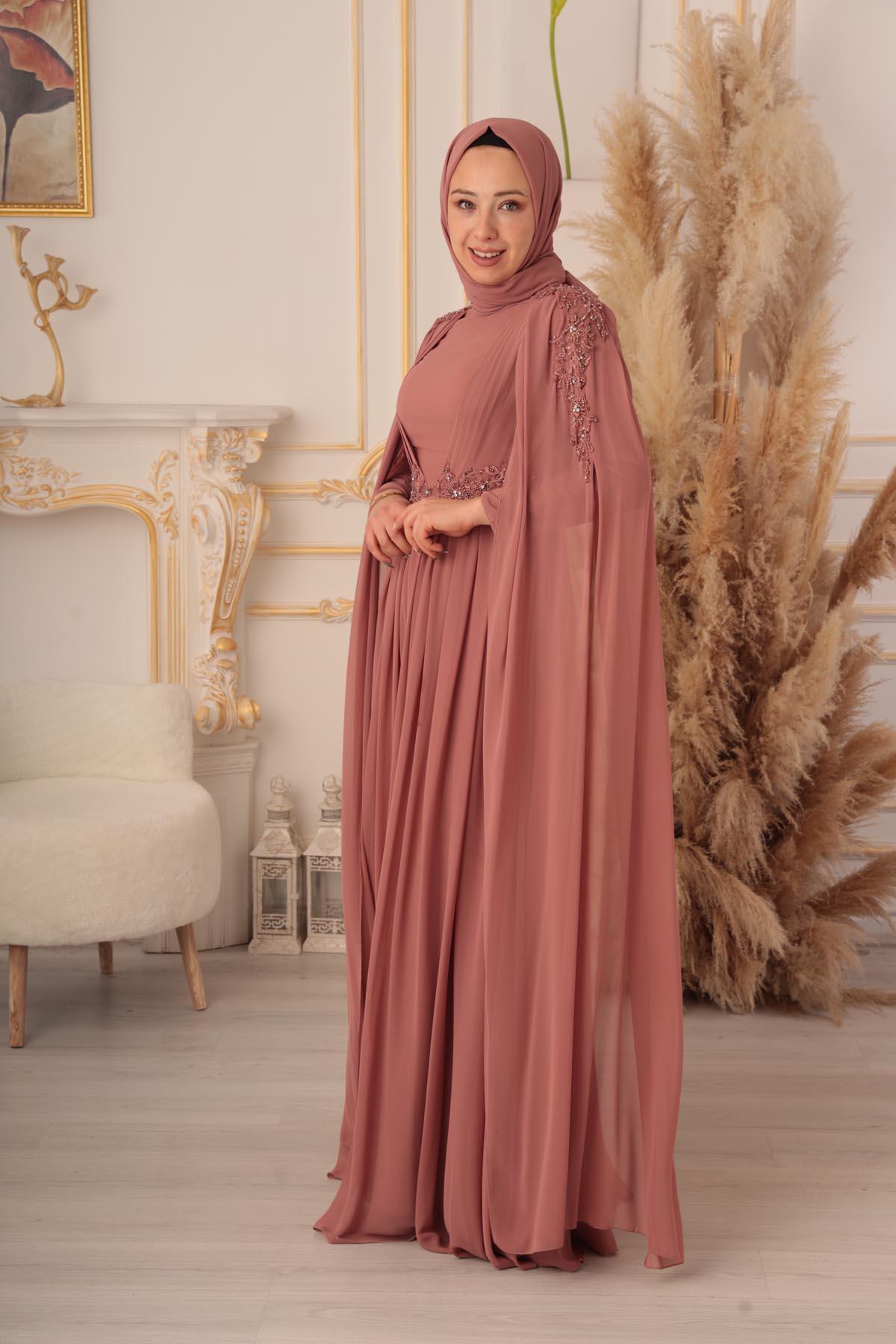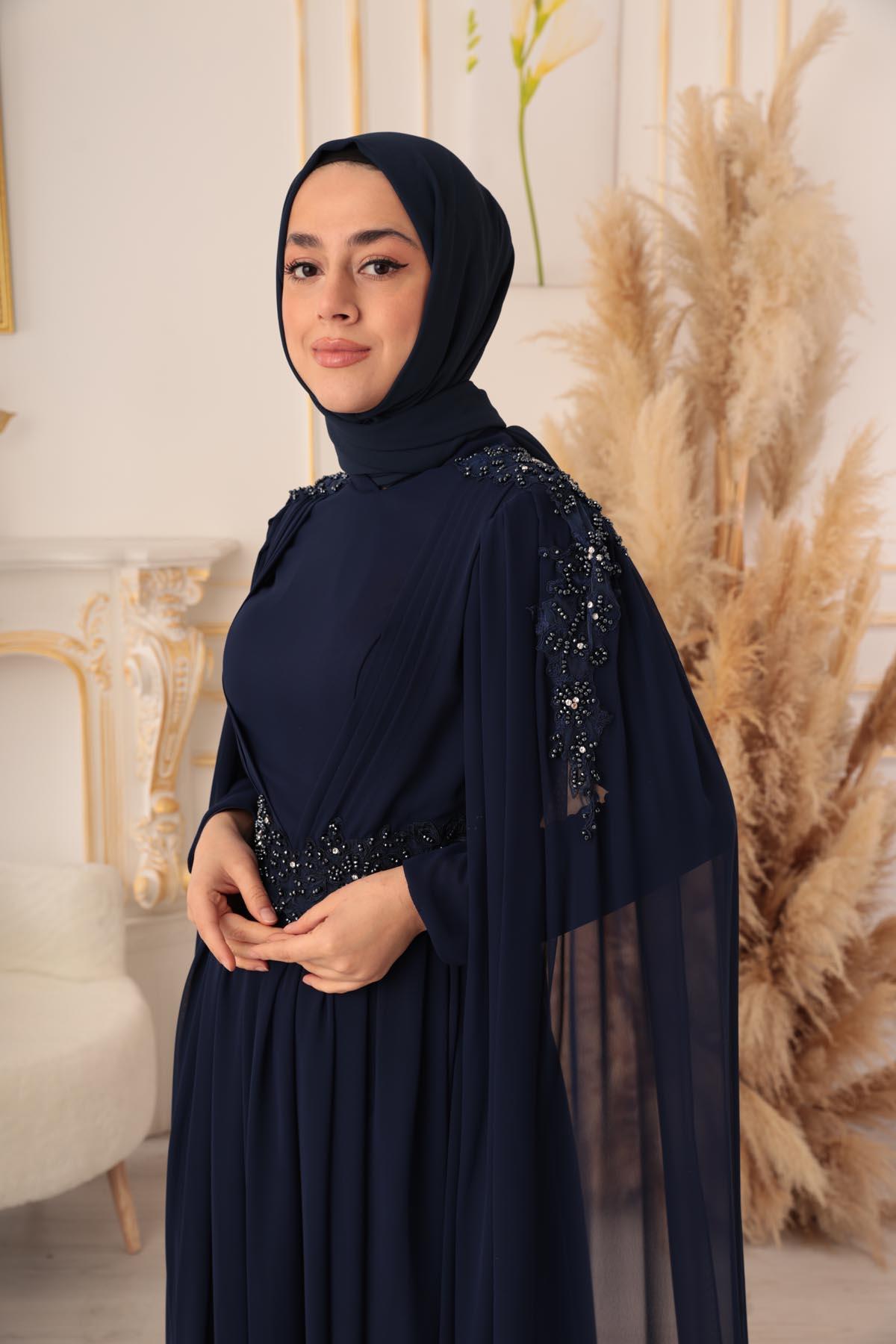 Tesettür abiye modellerinde dikkat edilen en önemli nokta, giyen kişiyi güzelliklerinin ön plana çıkarmasıdır. Bu yüzden OMUZDAN PELERİNLİ ŞİFON TESETTÜR ABİYE, modern tasarımı ve uyumlu renk seçenekleriyle her bedene uygun olarak üretilmiştir.