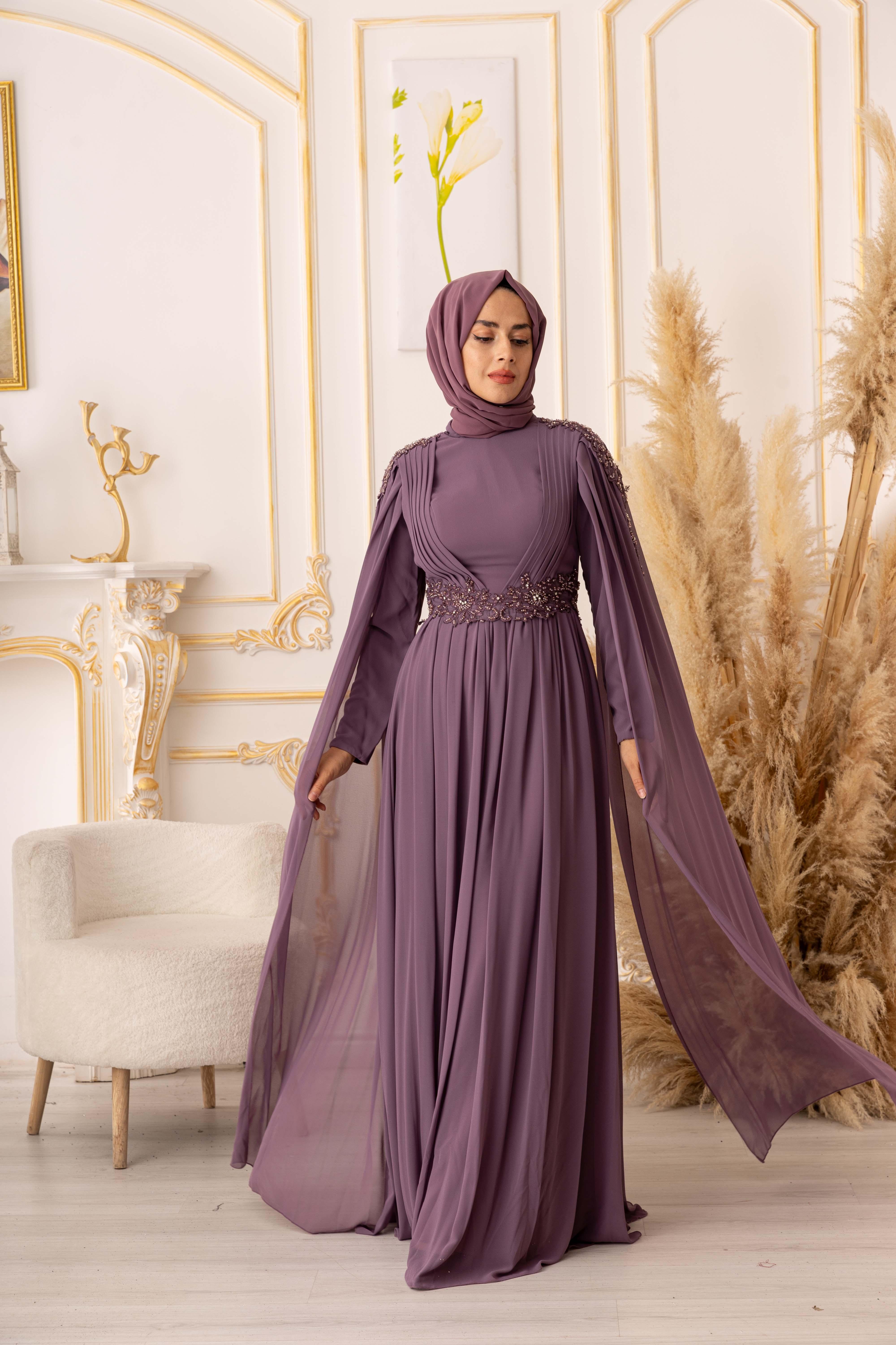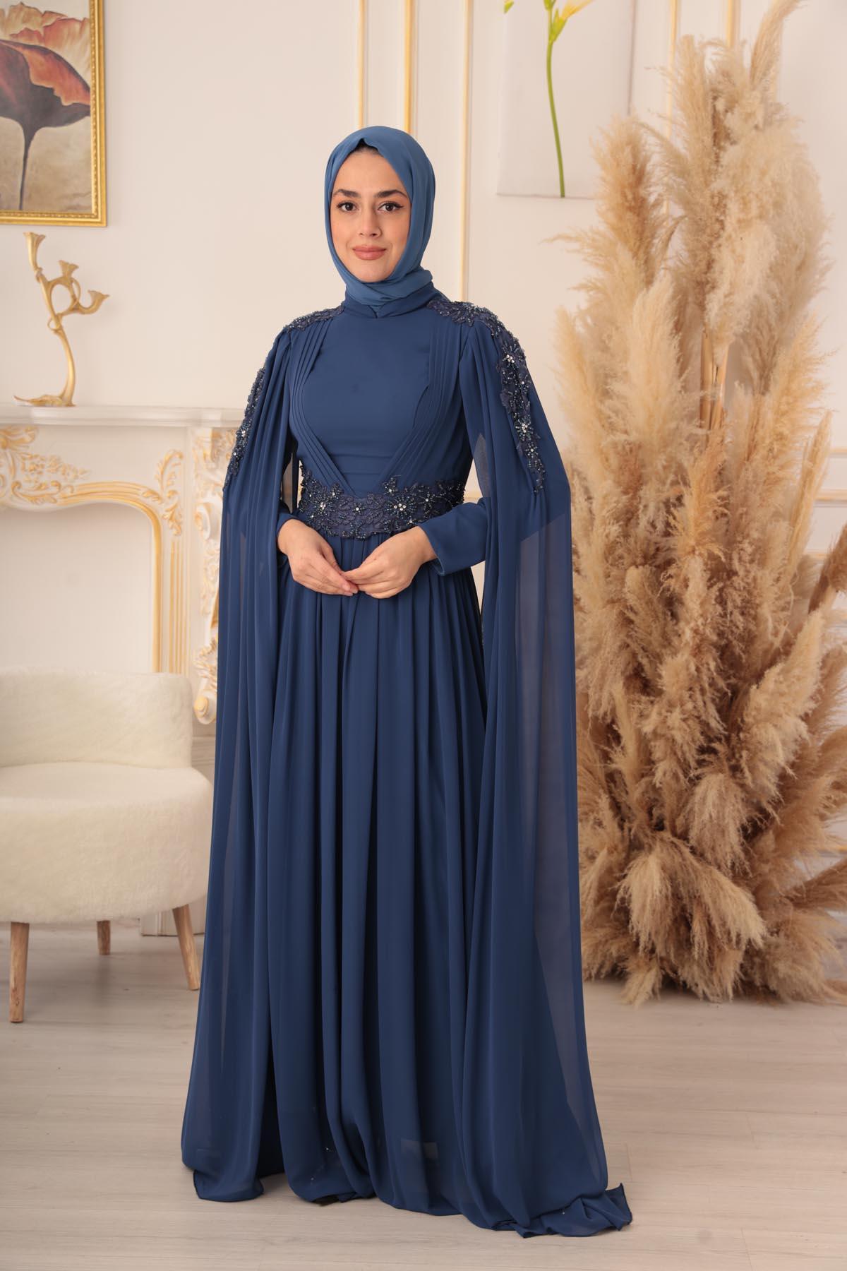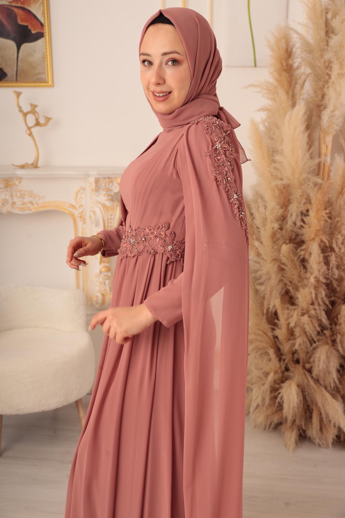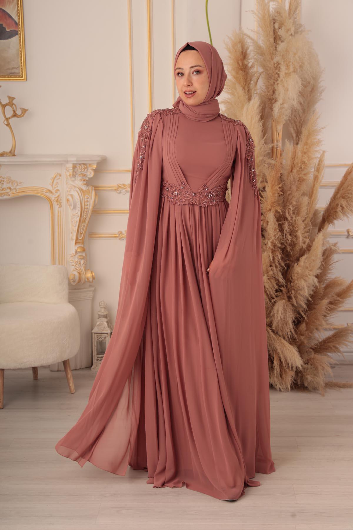 Tesettür abiye modellerinde dikkat edilen en önemli nokta, giyen kişiyi güzelliklerinin ön plana çıkarmasıdır. Bu yüzden OMUZDAN PELERİNLİ ŞİFON TESETTÜR ABİYE, modern tasarımı ve uyumlu renk seçenekleriyle her bedene uygun olarak üretilmiştir.