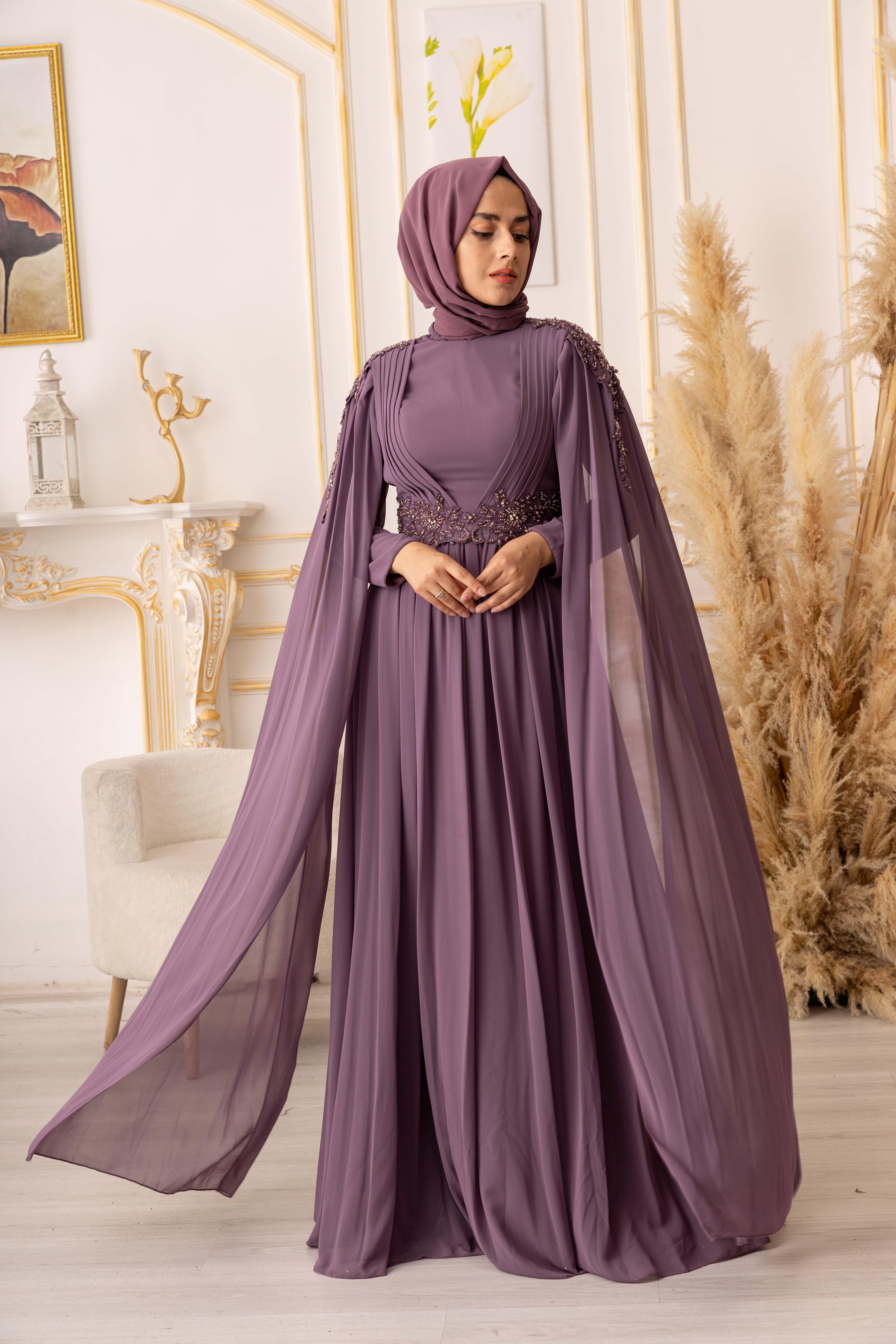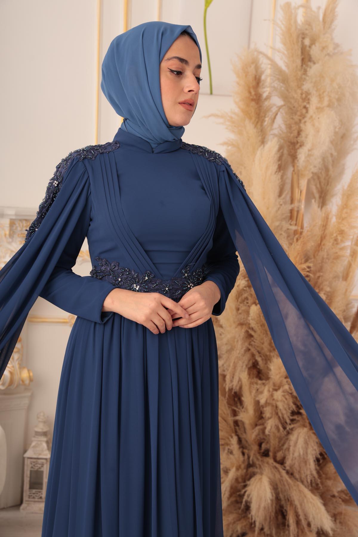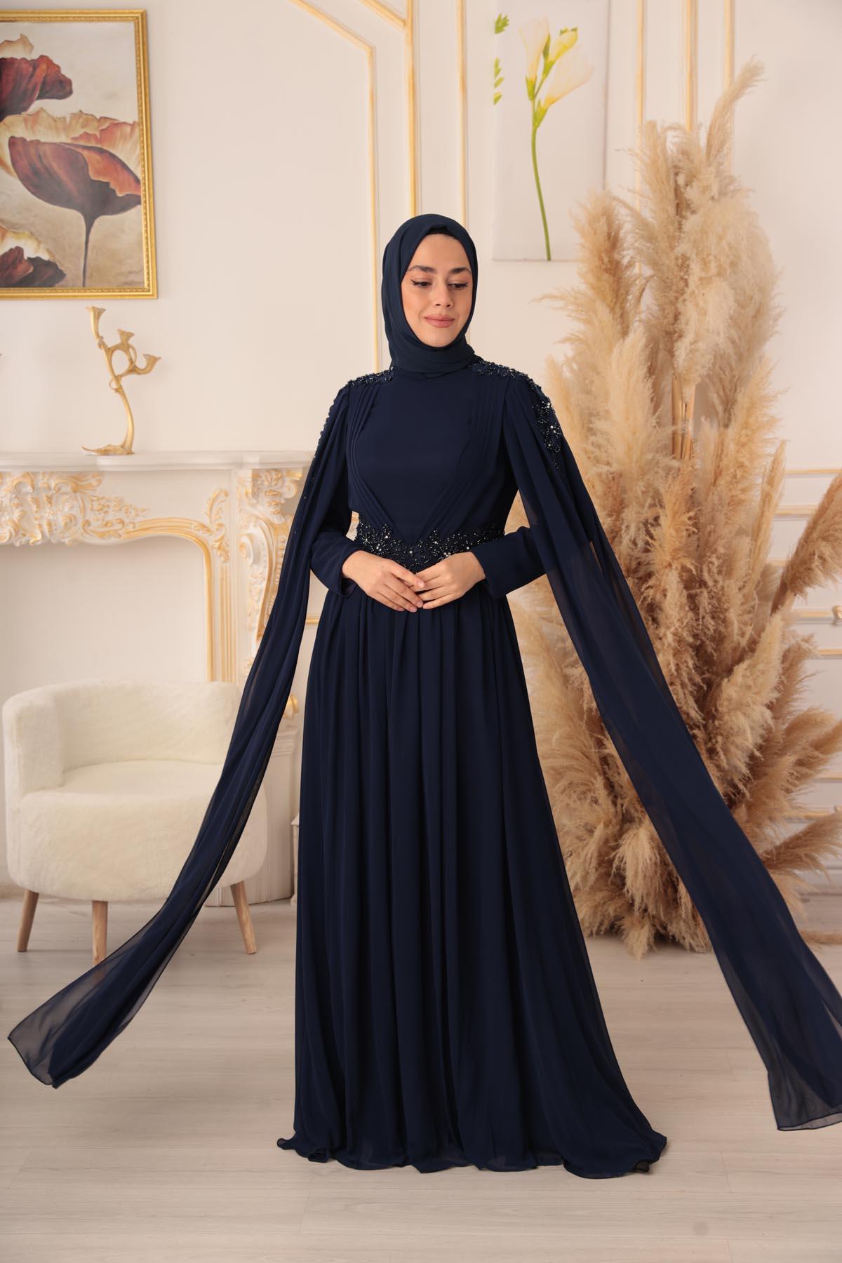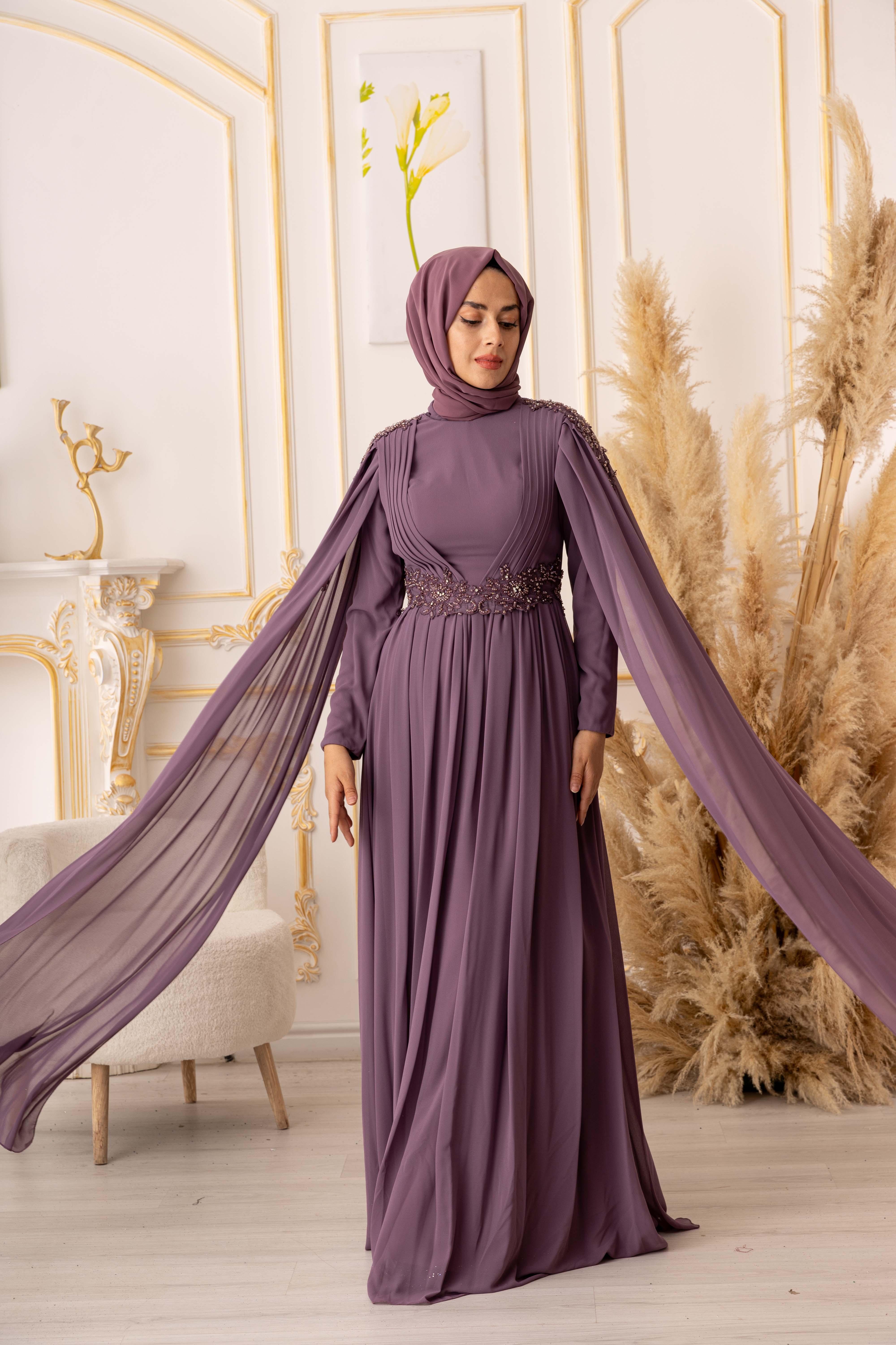 Tesettür abiye modellerinde dikkat edilen en önemli nokta, giyen kişiyi güzelliklerinin ön plana çıkarmasıdır. Bu yüzden OMUZDAN PELERİNLİ ŞİFON TESETTÜR ABİYE, modern tasarımı ve uyumlu renk seçenekleriyle her bedene uygun olarak üretilmiştir.