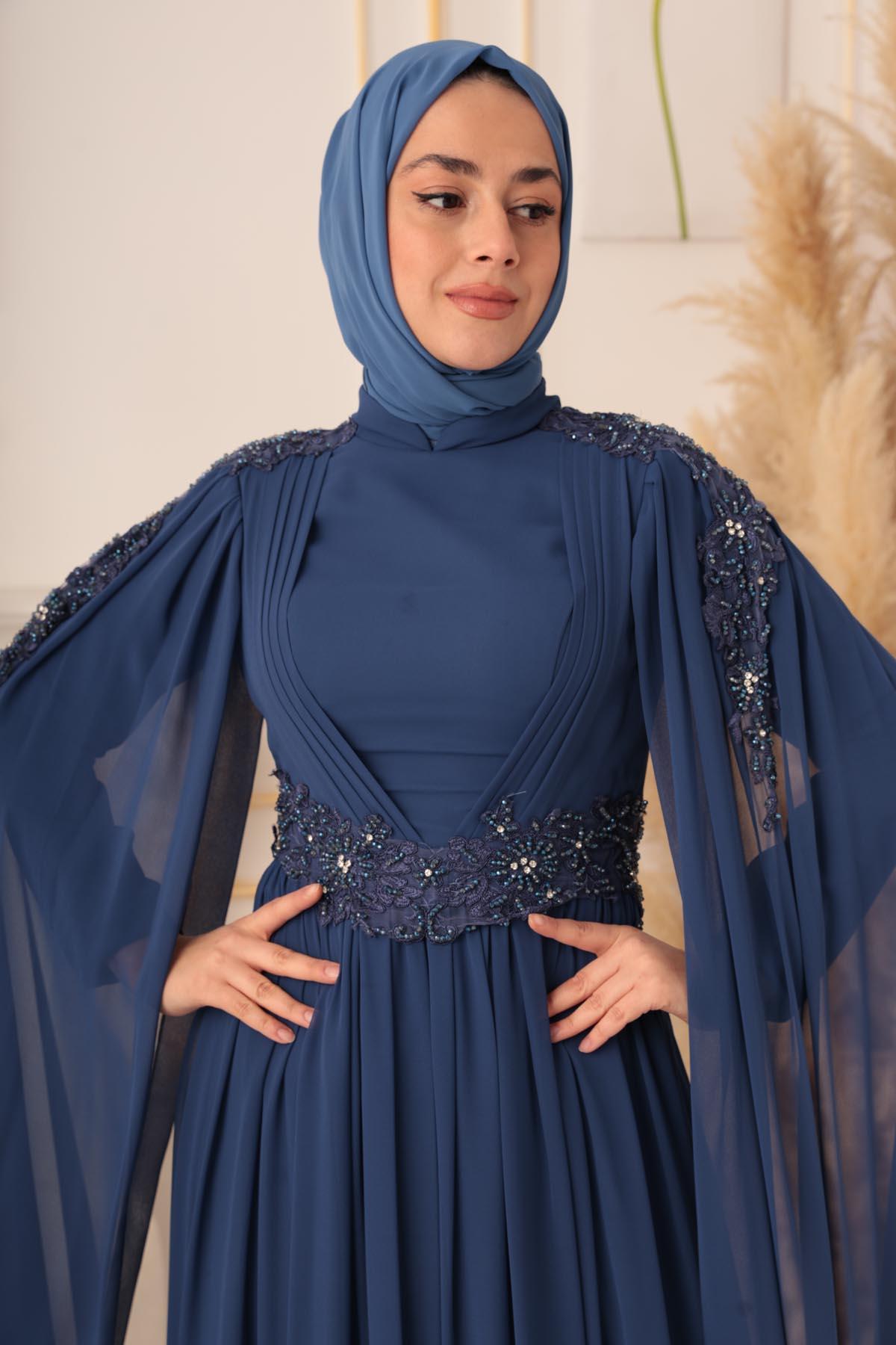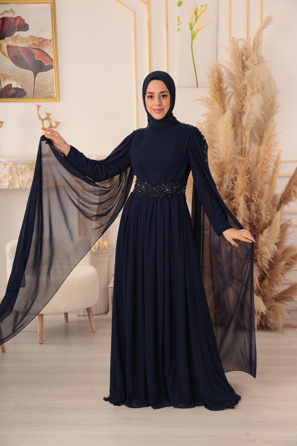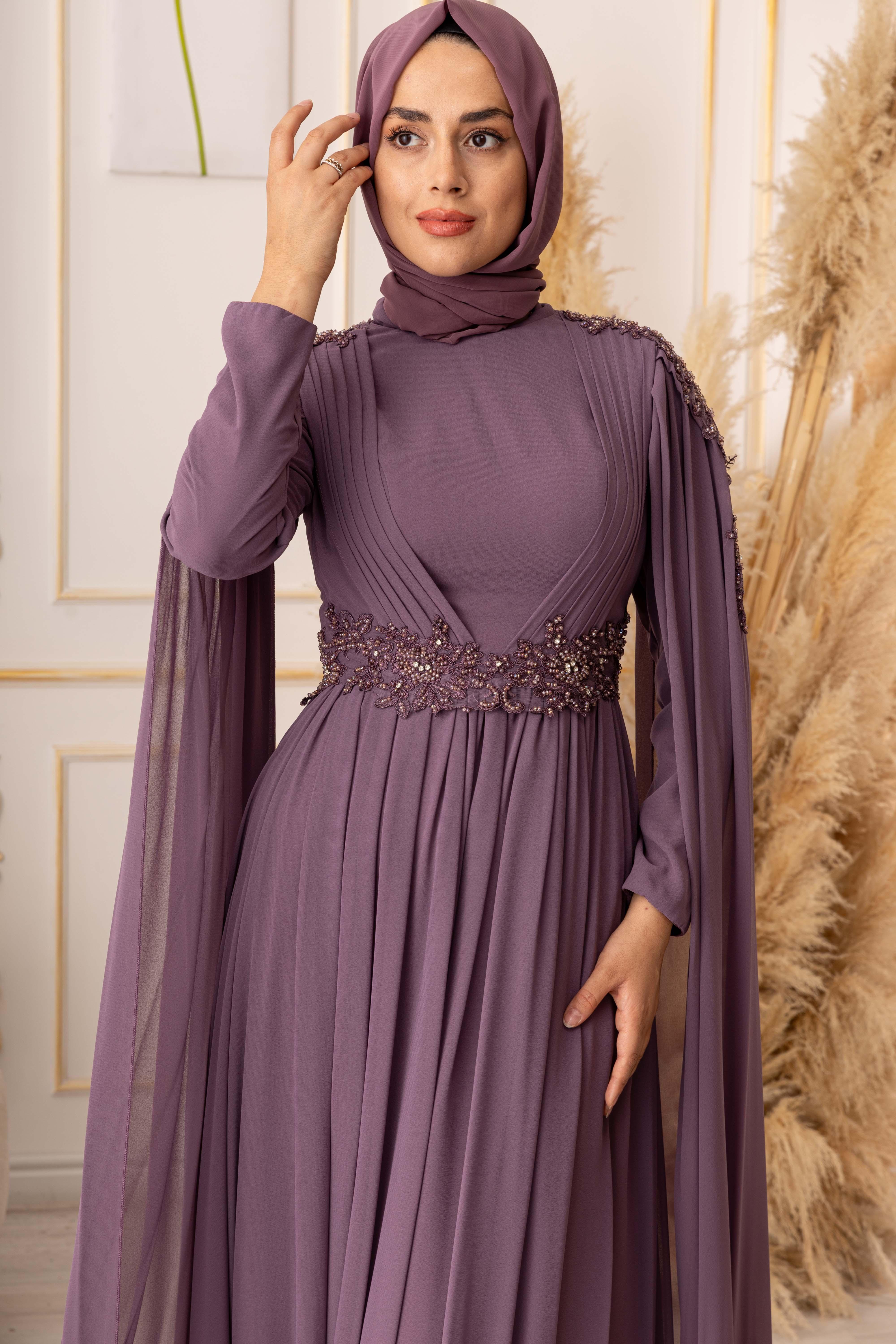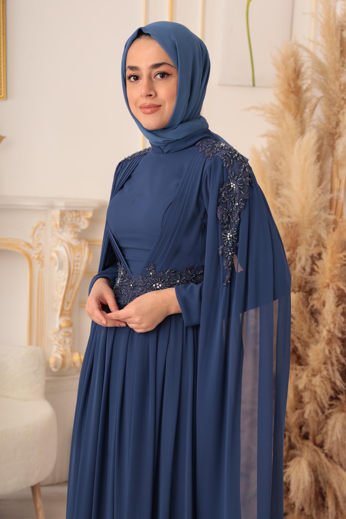Tesettür abiye modellerinde dikkat edilen en önemli nokta, giyen kişiyi güzelliklerinin ön plana çıkarmasıdır. Bu yüzden OMUZDAN PELERİNLİ ŞİFON TESETTÜR ABİYE, modern tasarımı ve uyumlu renk seçenekleriyle her bedene uygun olarak üretilmiştir.