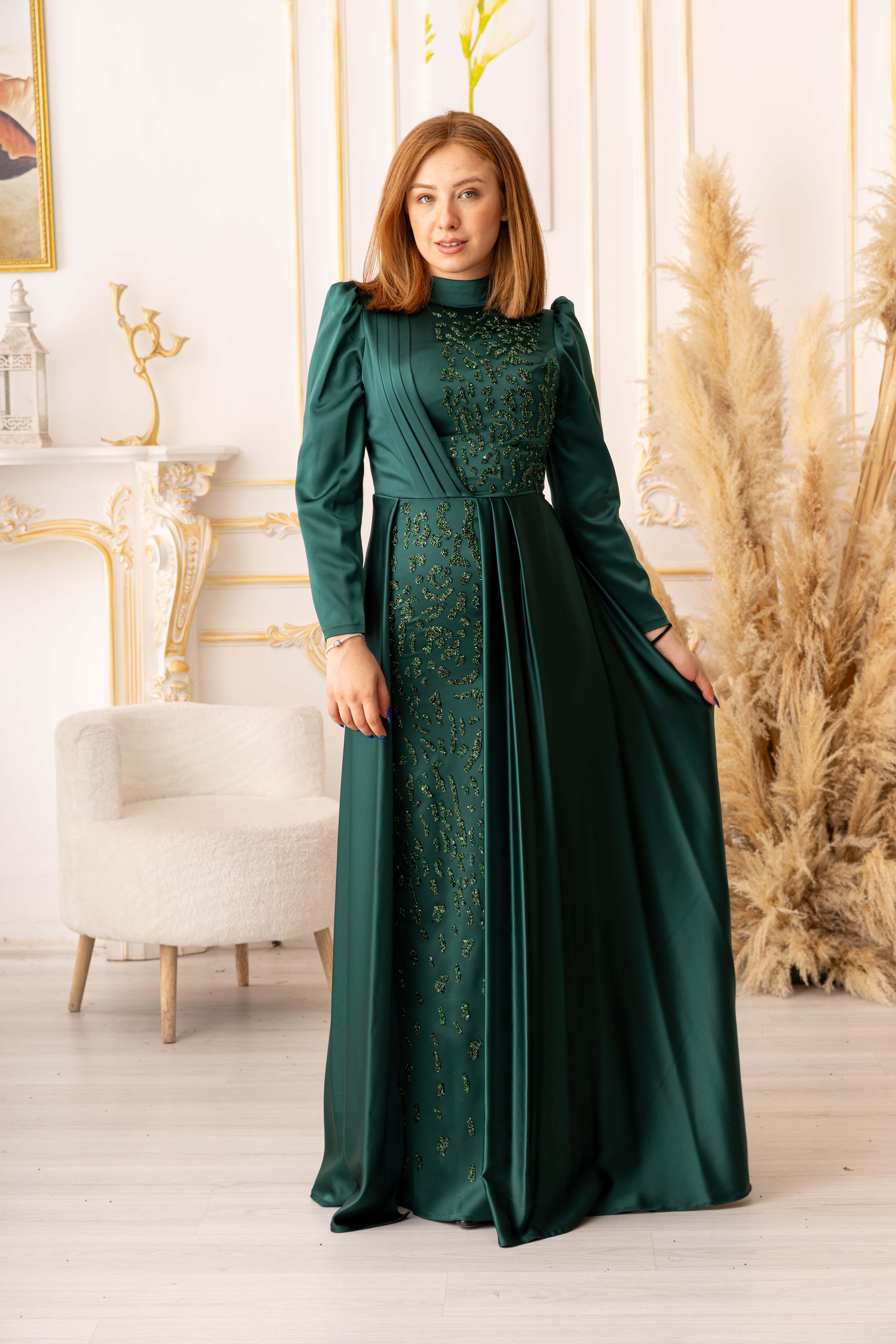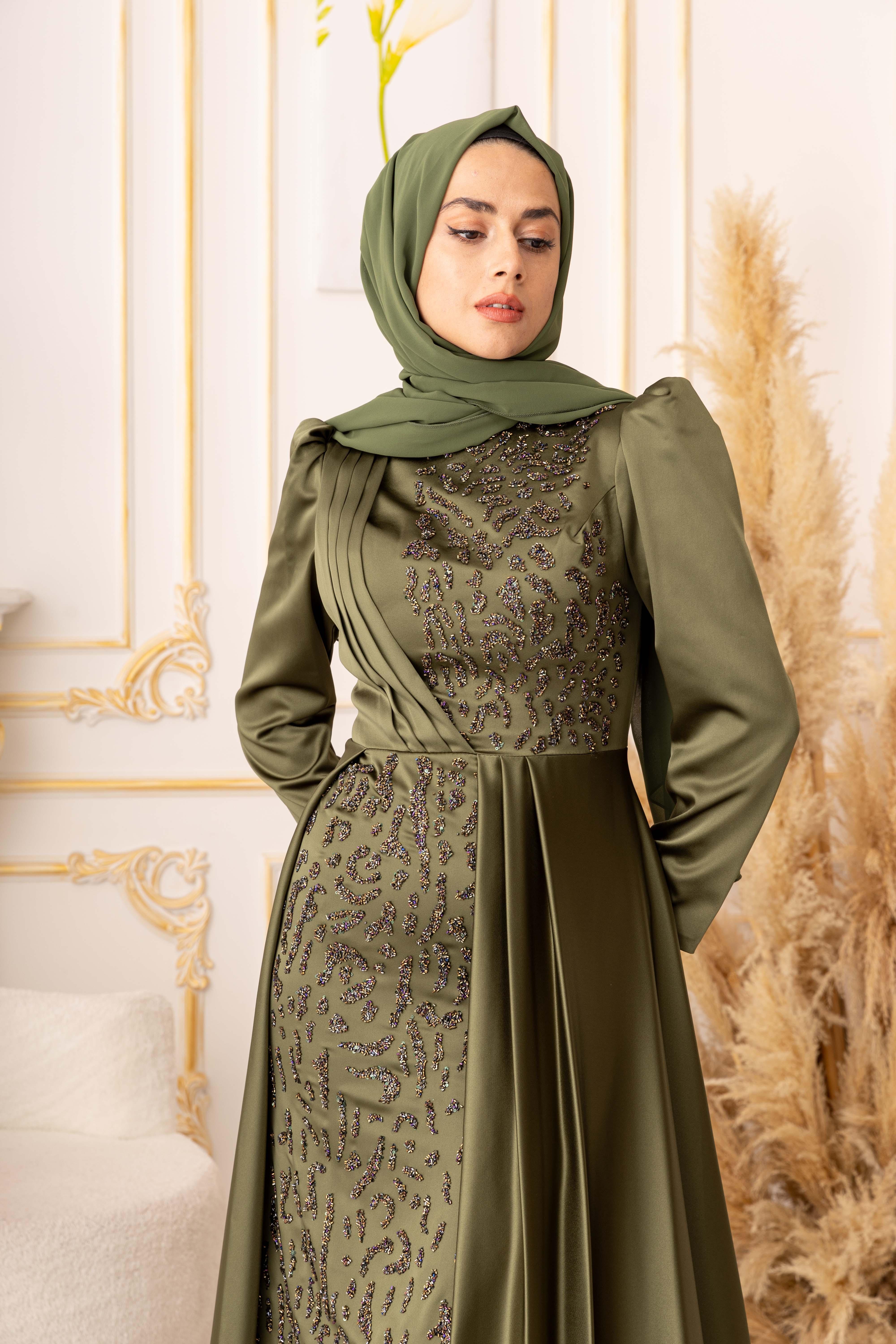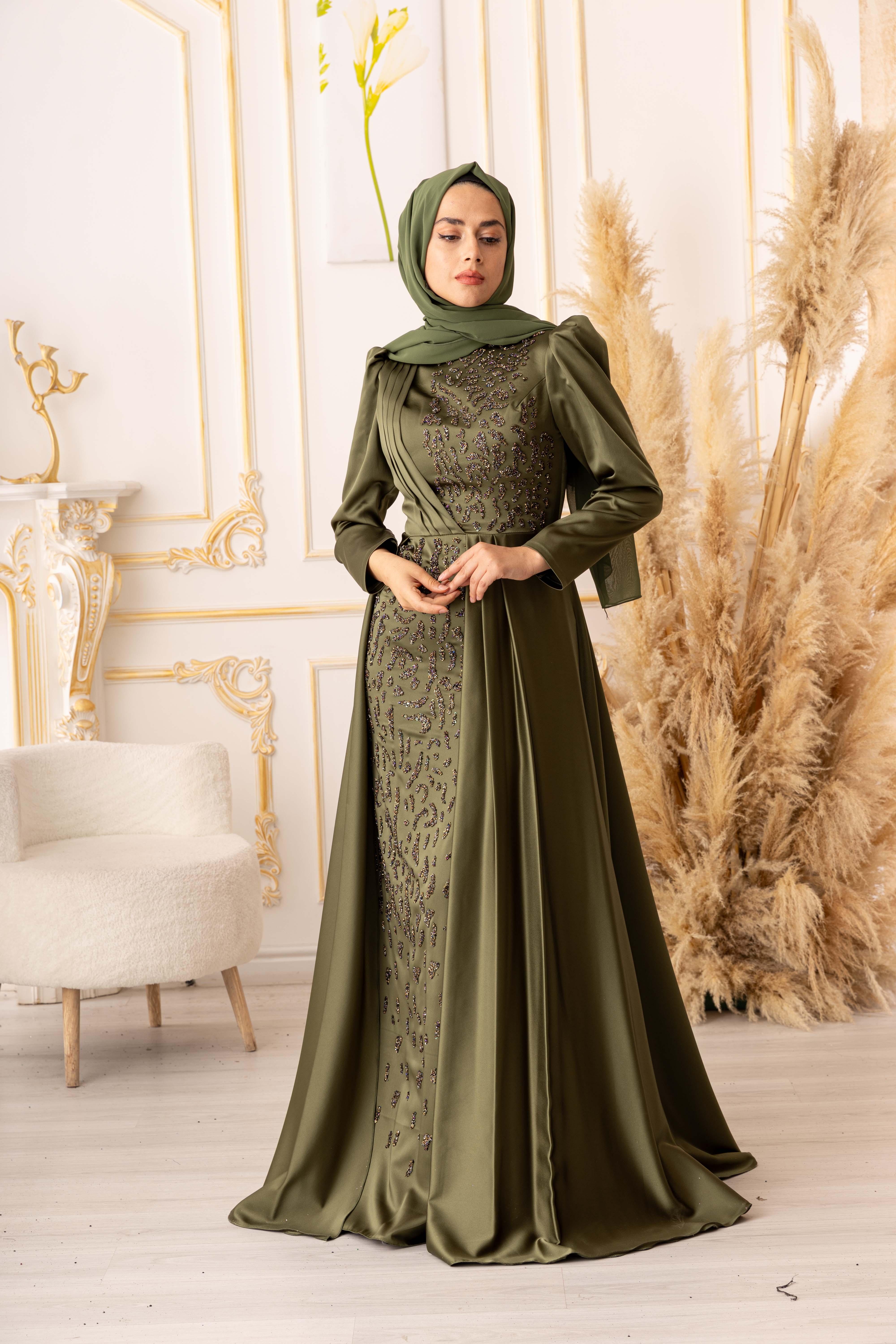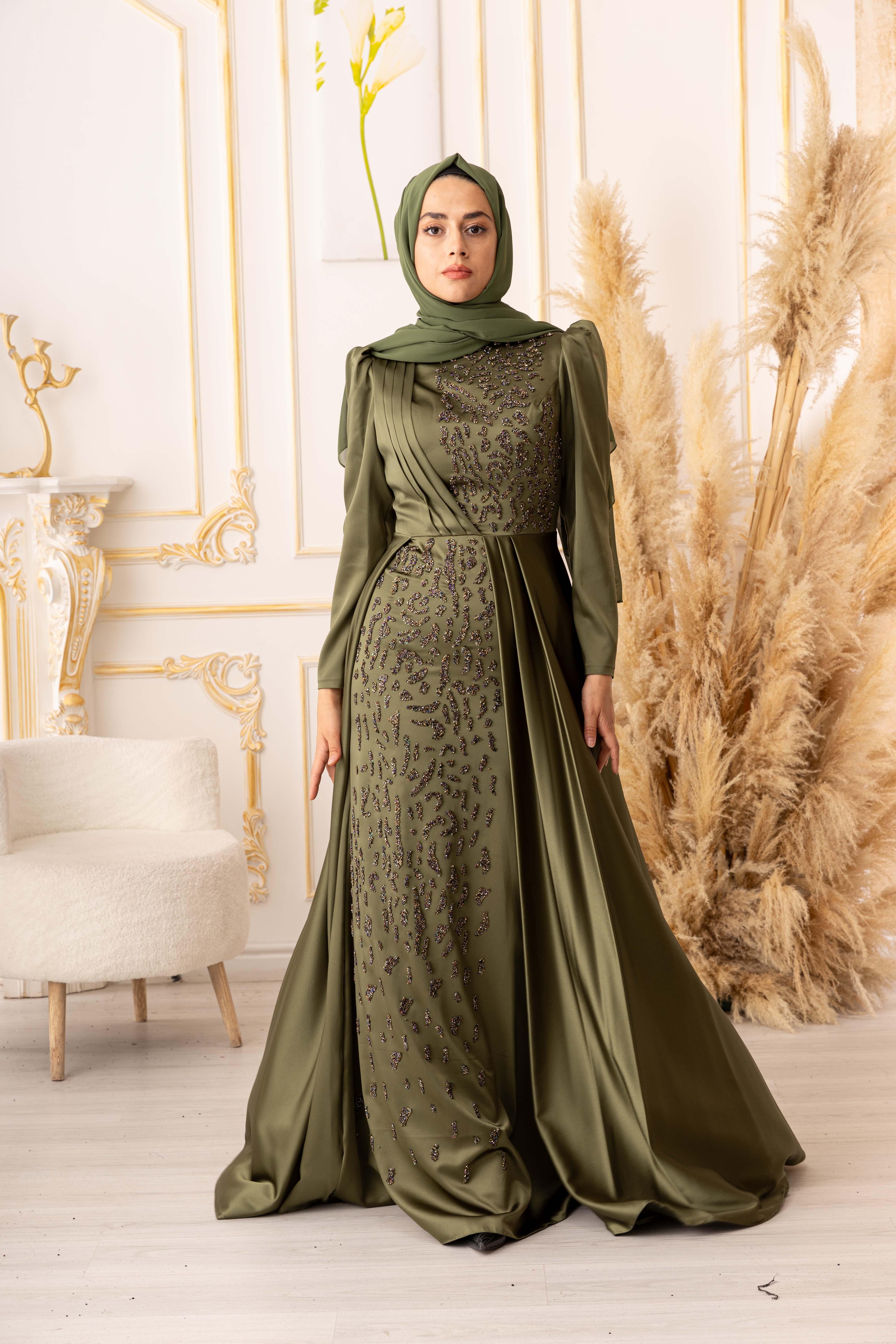 Yandan pelerinli balık model tesettür abiye K19760, Türk kadınının ihtişamlı ve sofistike bir tarz yaratmasına yardımcı oluyor. Saten kumaşı ve pelerin detaylarıyla göz kamaştıran bu tasarım, özenle seçilmiş renk seçenekleriyle de zenginleştirilmiştir. Siz de bu muhteşem abiye ile özel anlarınızda göz dolduracak ve dikkatleri kolayca üzerinize çekeceksiniz.