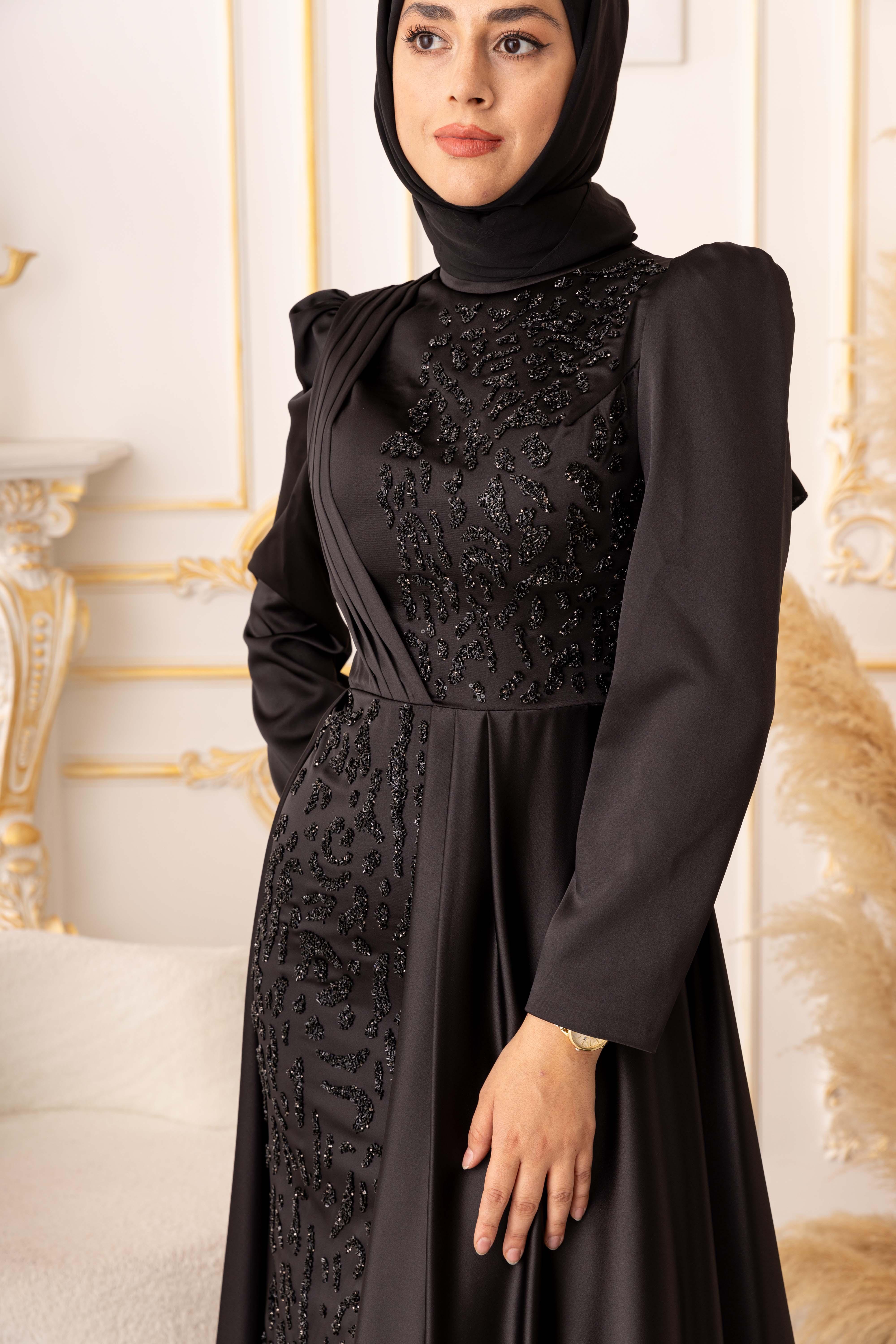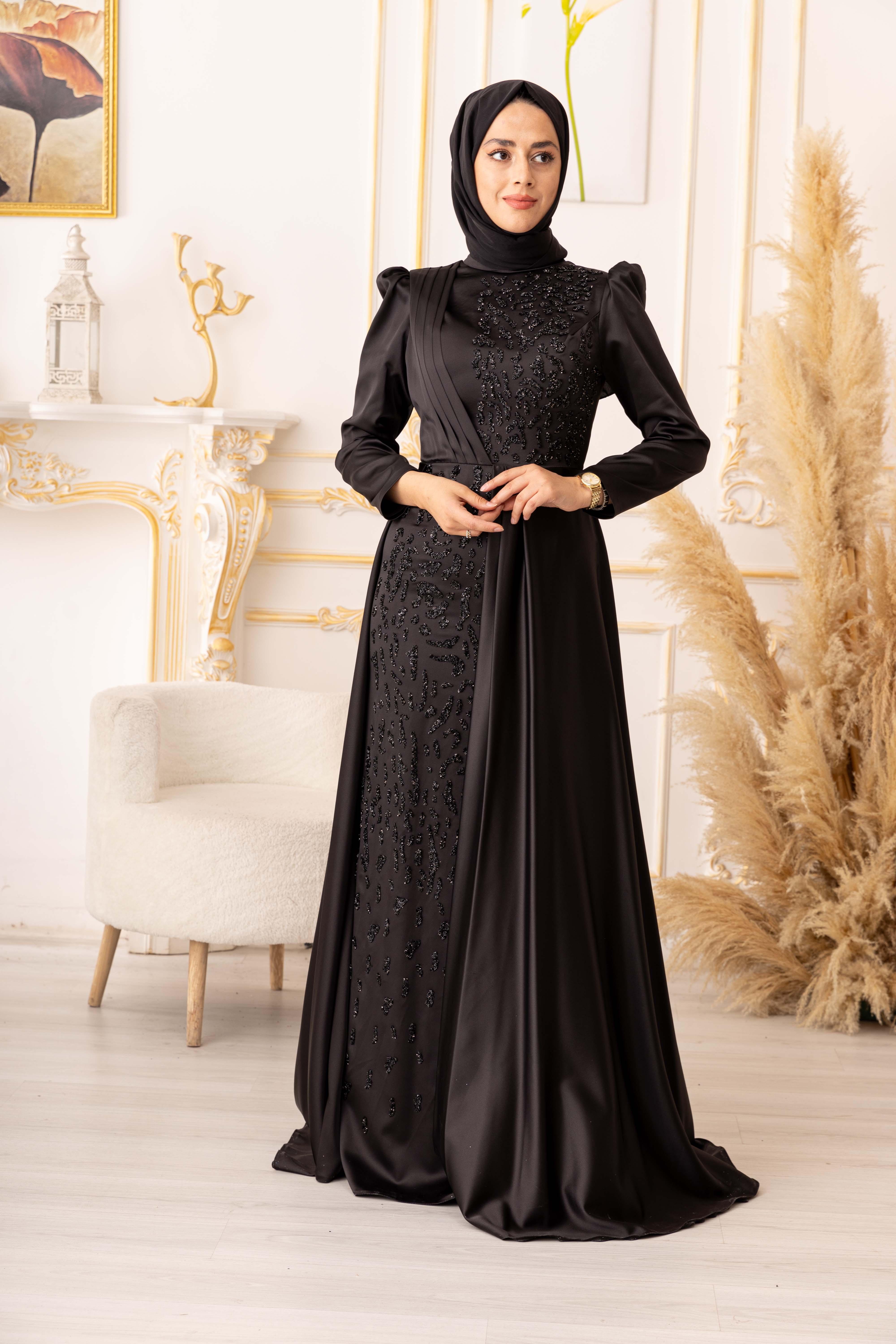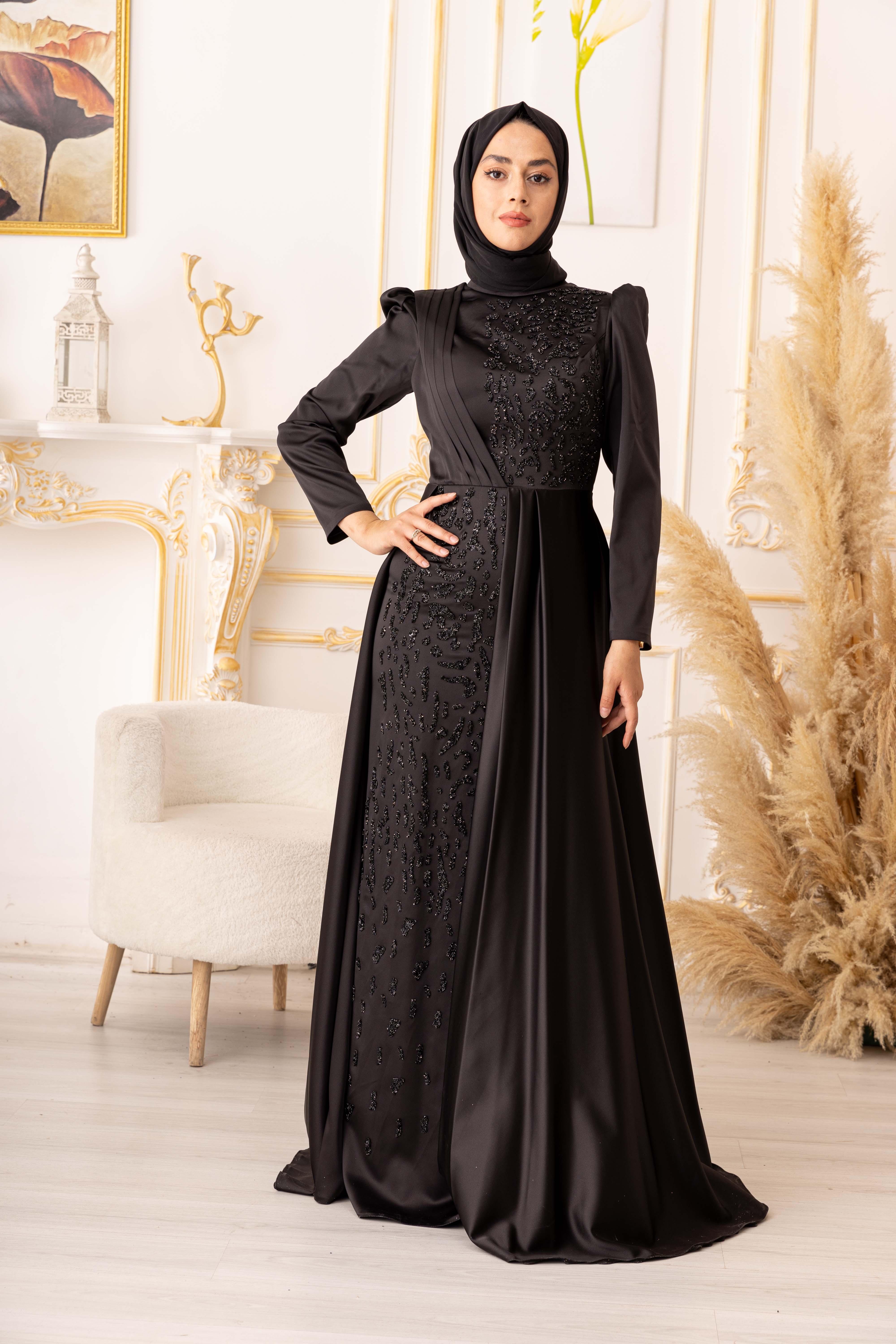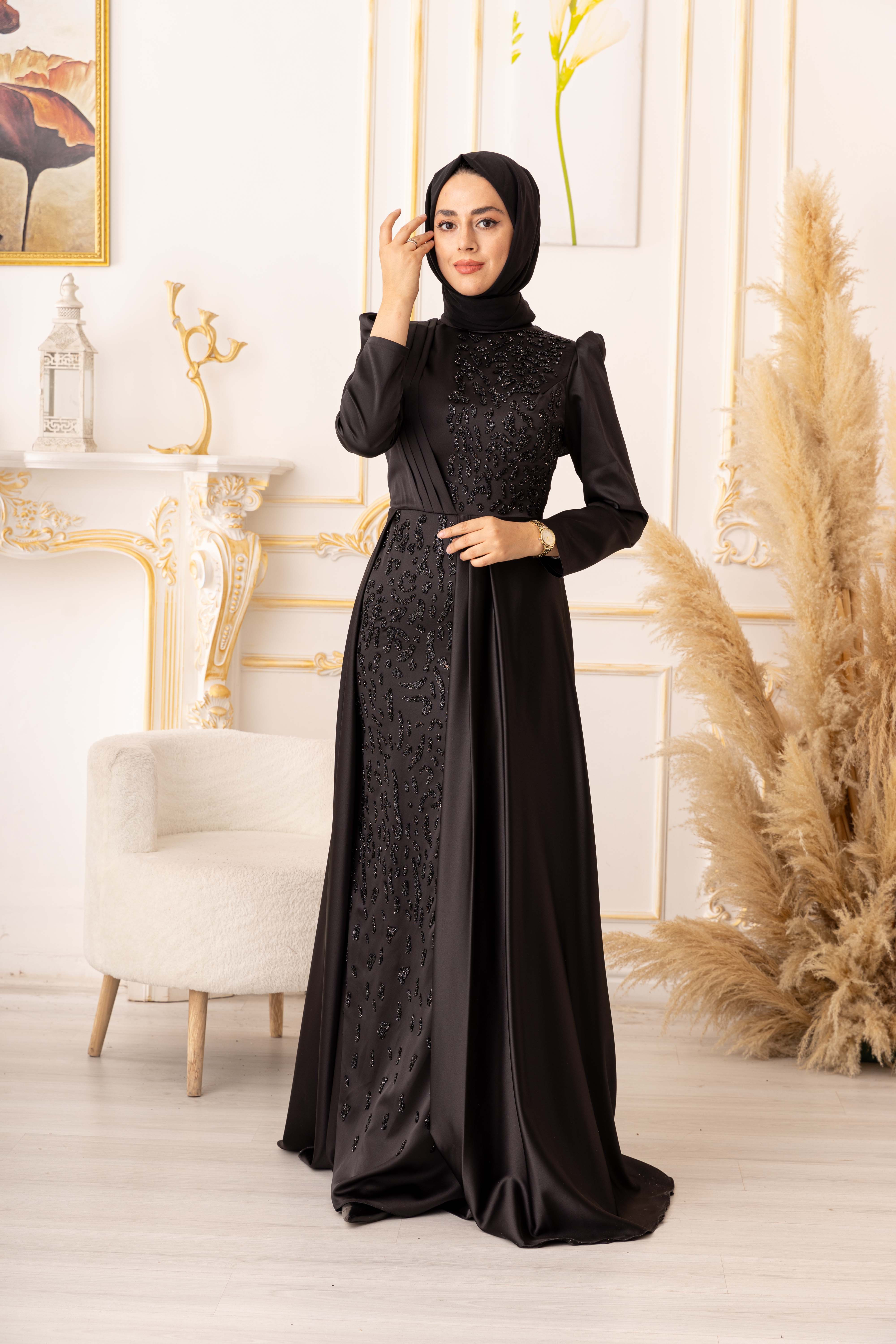 Önden ve yandan pelerinli balık model tesettür abiye K19760, zarif ve şık tasarımı ile tüm bakışları üzerinize çekecek. Bu muhteşem tesettür abiye, modern ve geleneksel tarzı bir arada harmanlayarak Türk kadınının gözdesi haline gelmiştir.