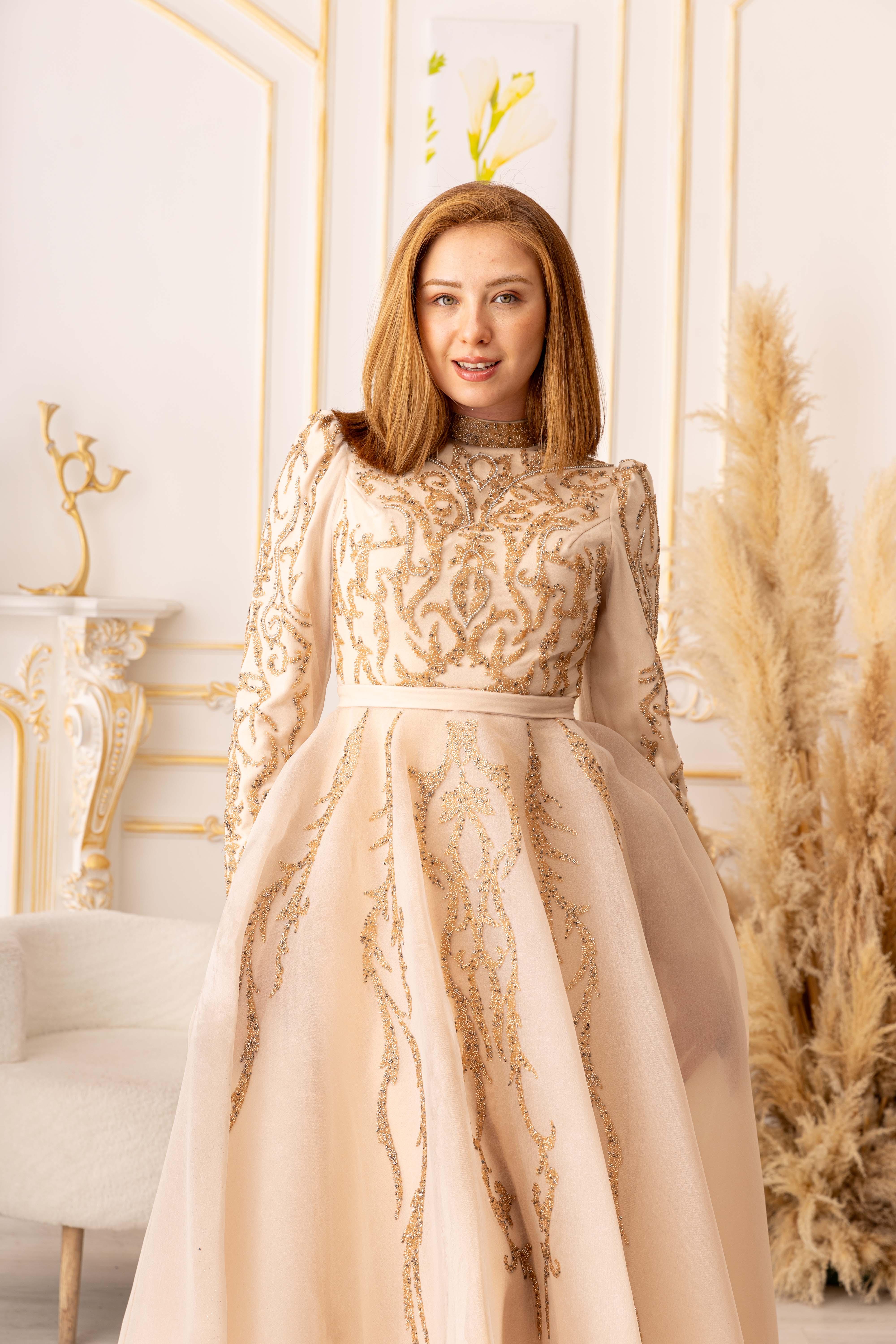 Bu abiye, yüksek kaliteli ve dayanıklı bir kumaştan üretilmiştir. Aynı zamanda, parlak ve lüks görünümüyle dikkatleri üzerine çekmektedir. Kumaşın kalitesi ve işçiliği, giydiğinizde size konforlu bir his sağlayacaktır.