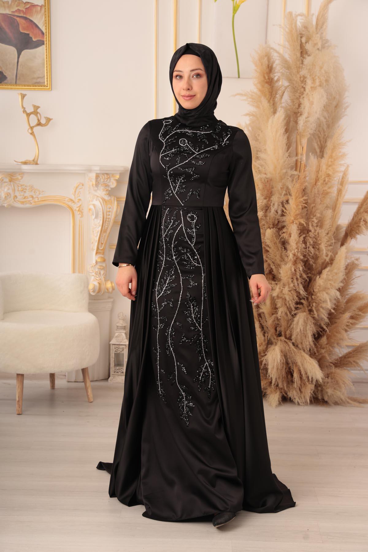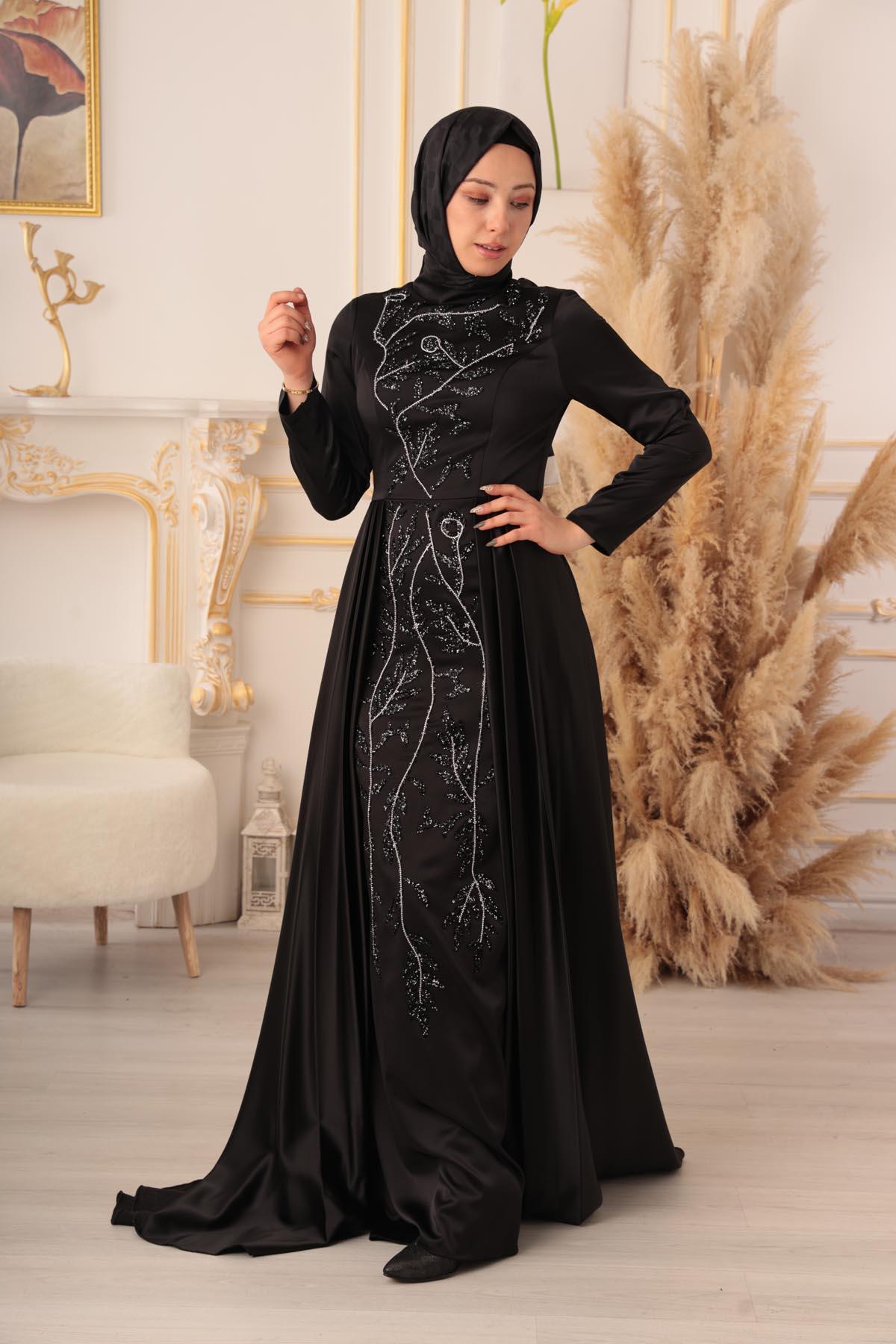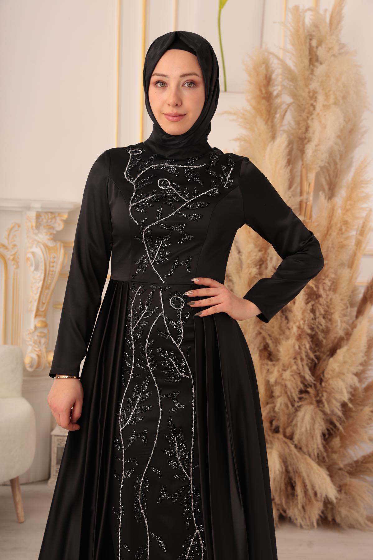 TAŞ VE ZİNCİR DETAYLI BALIK MODEL, şık ve zarif görünümüyle tesettürlü kadınların tercihi olmaya aday bir abiyedir. İster özel davetlerde, ister düğün ve nişan gibi törenlerde, isterse de özel günlerde rahatlıkla tercih edilebilir.