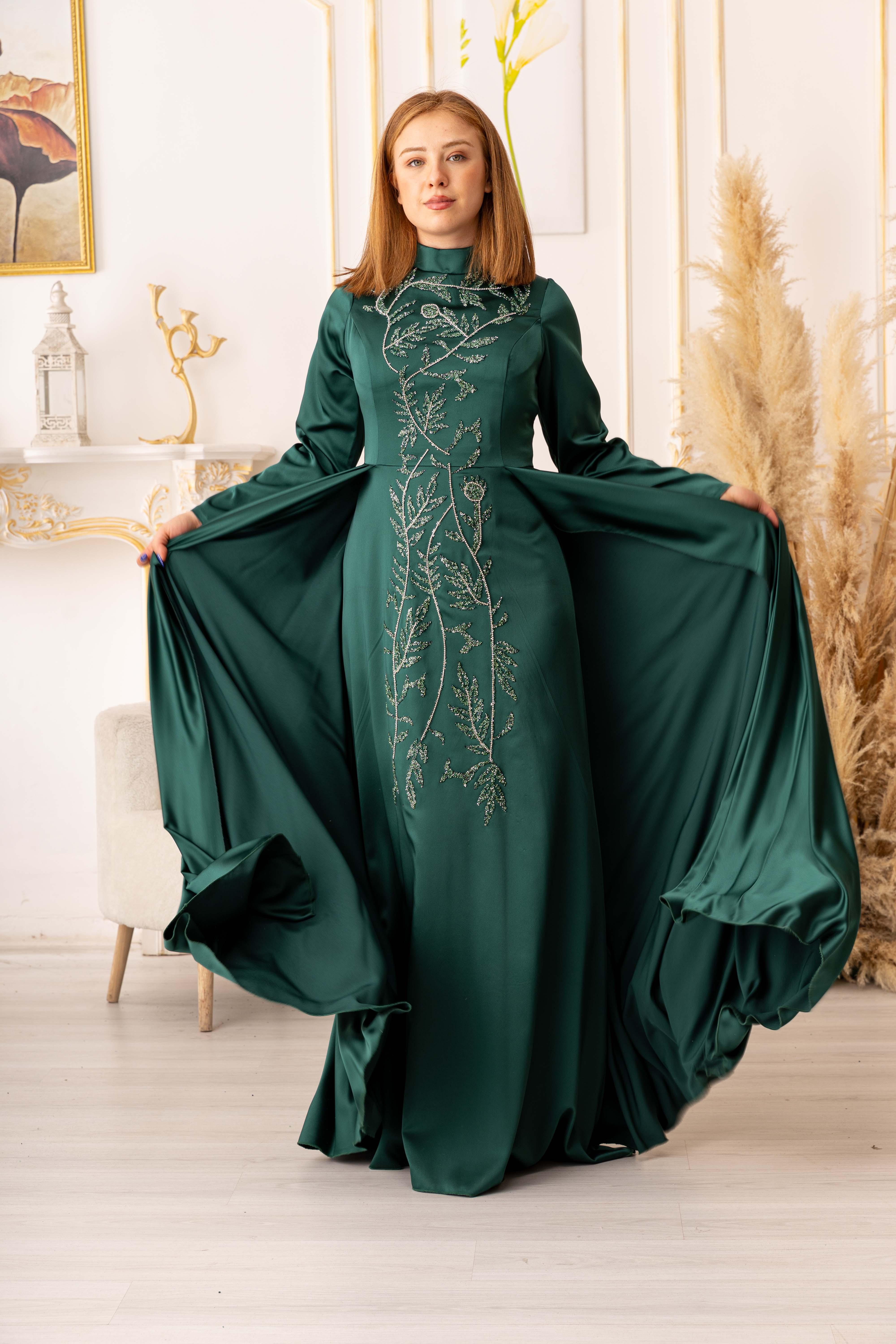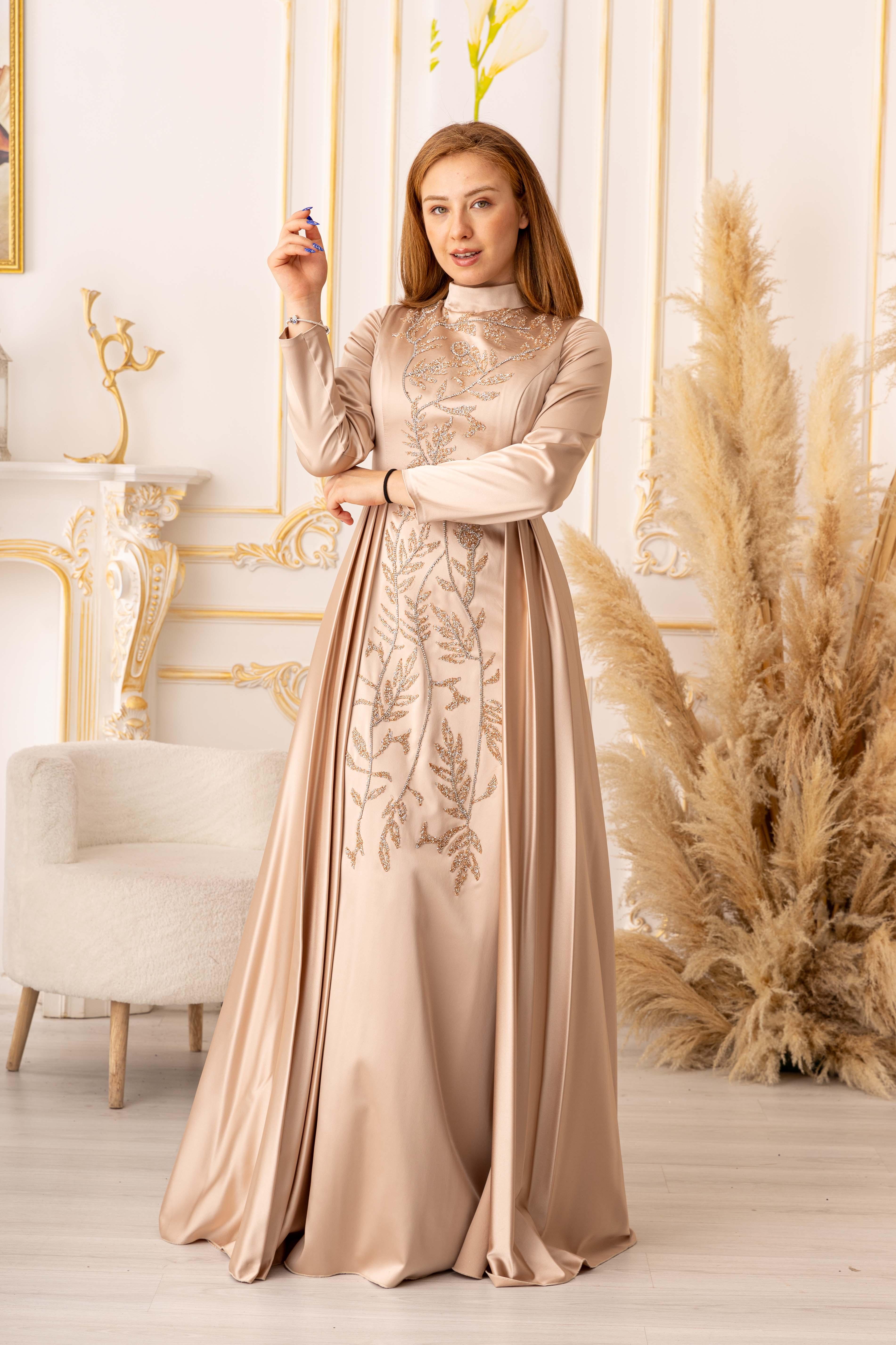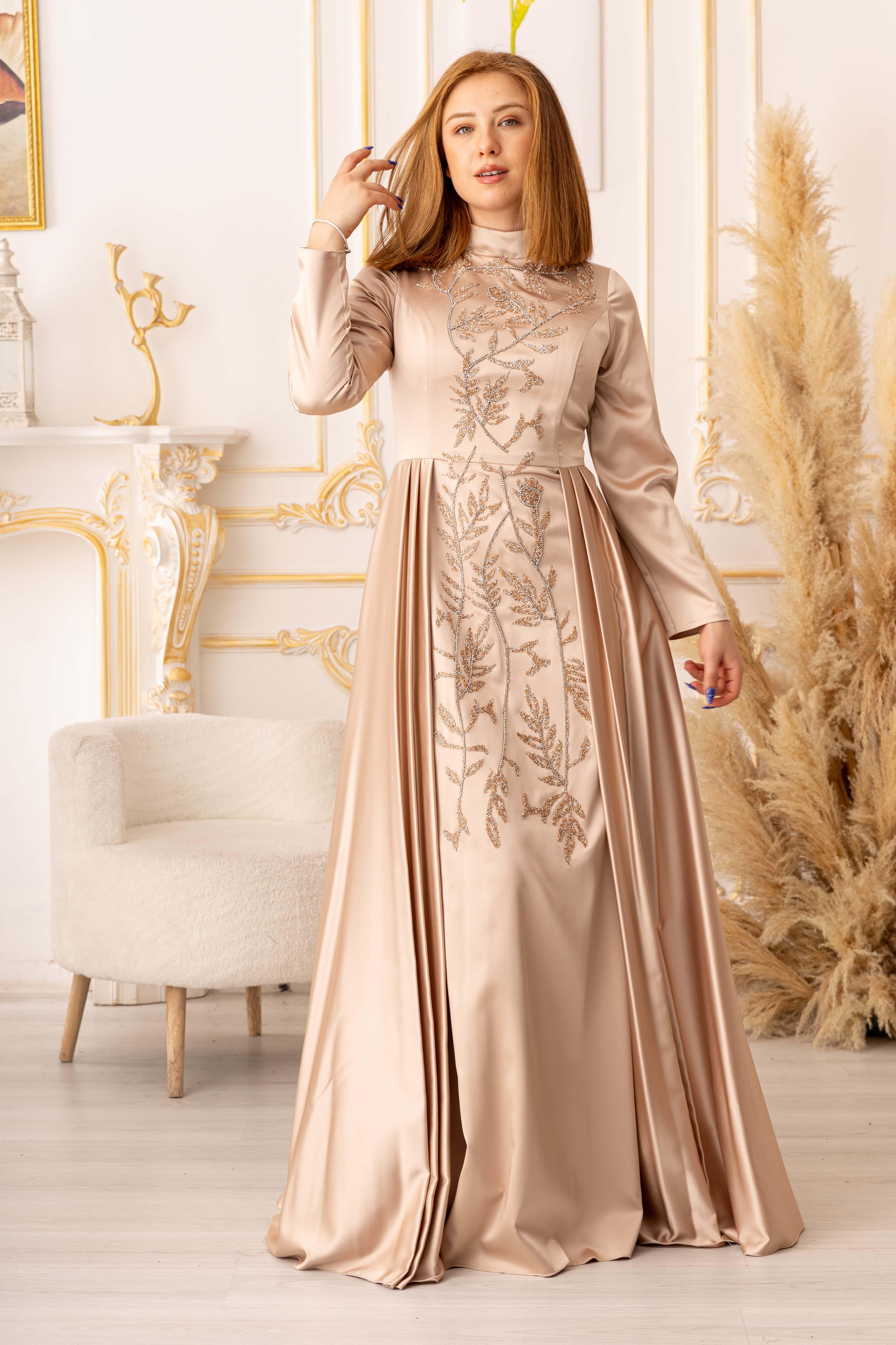 TAŞ VE ZİNCİR DETAYLI BALIK MODEL, şık ve zarif görünümüyle tesettürlü kadınların tercihi olmaya aday bir abiyedir. İster özel davetlerde, ister düğün ve nişan gibi törenlerde, isterse de özel günlerde rahatlıkla tercih edilebilir.