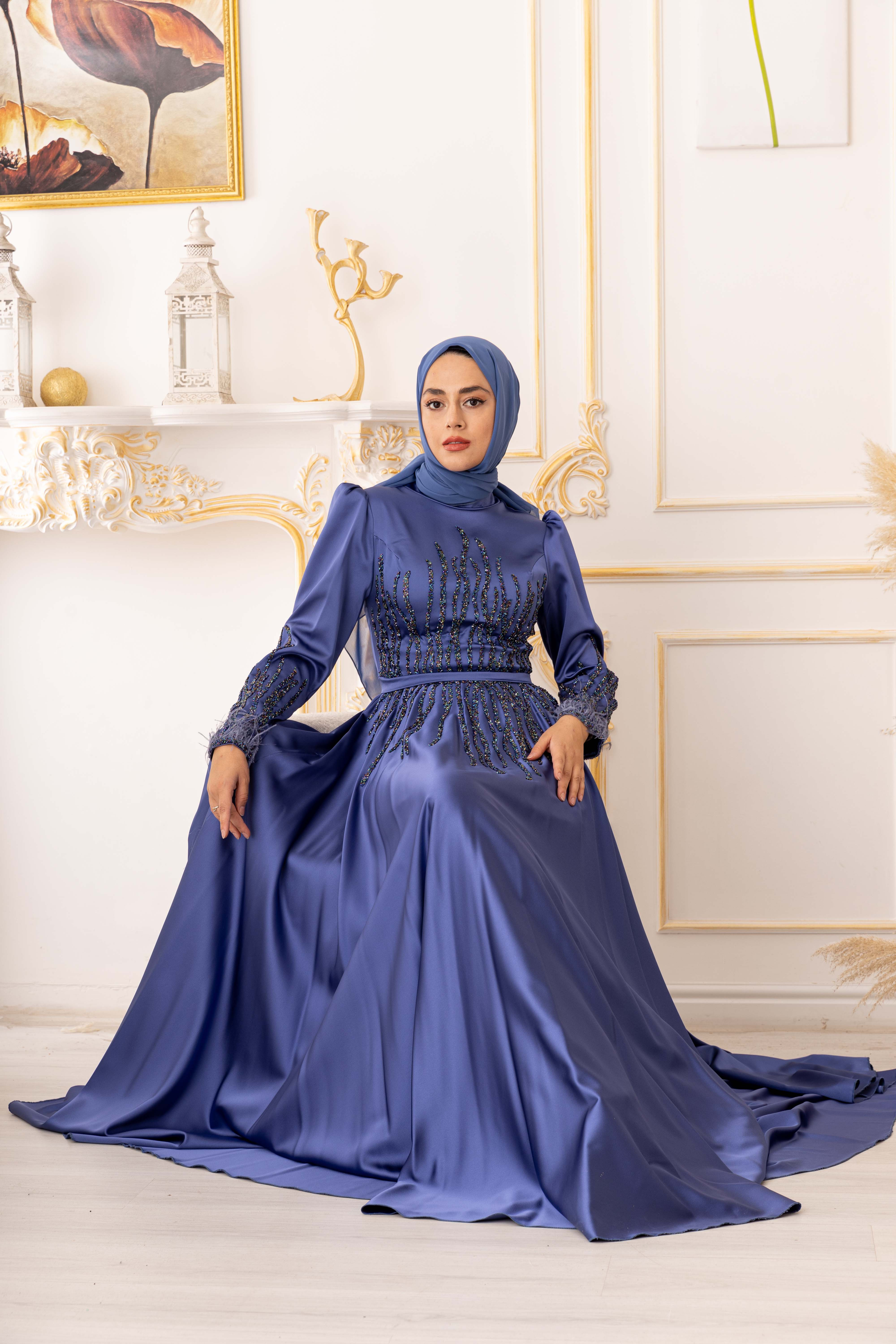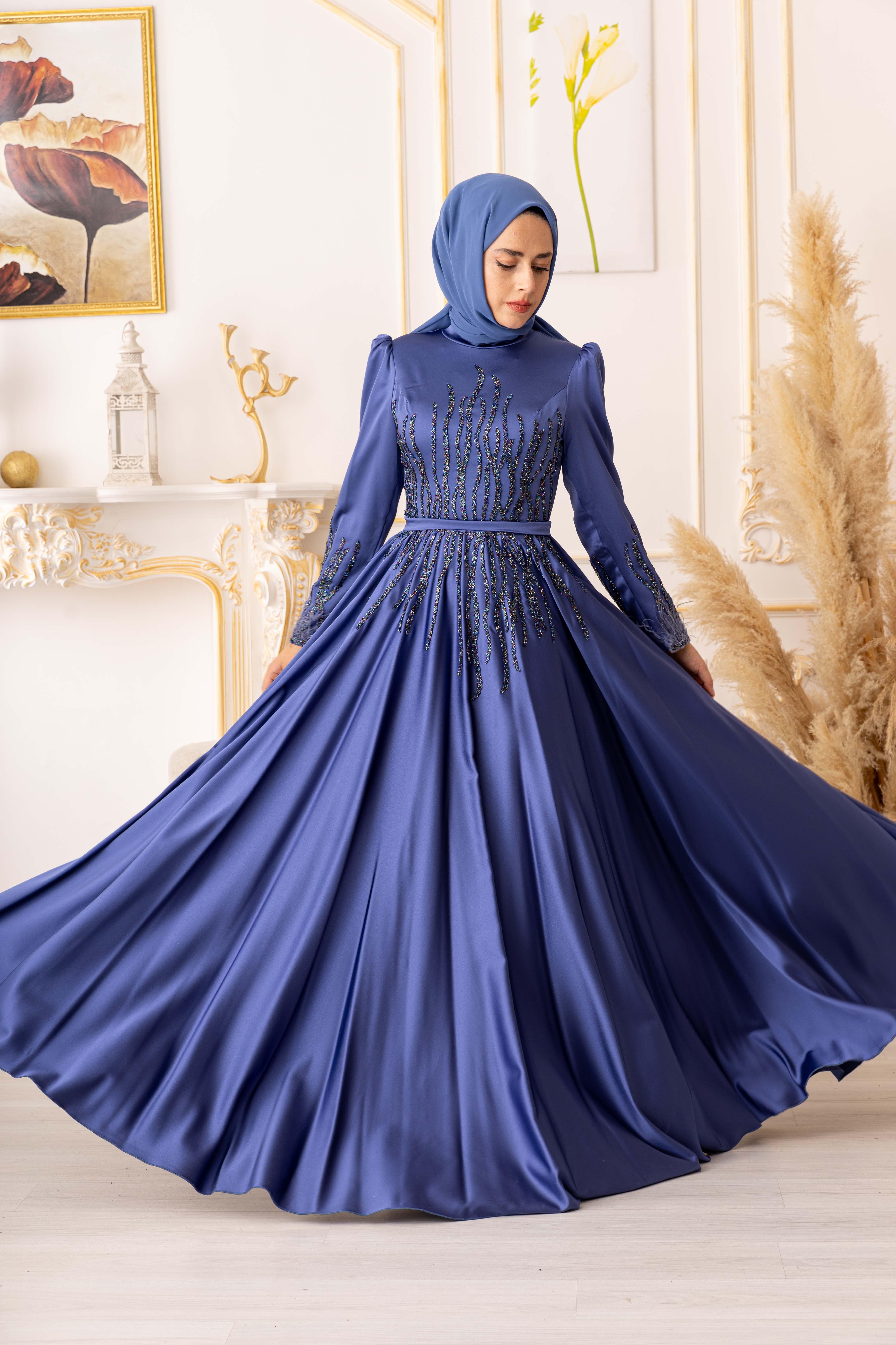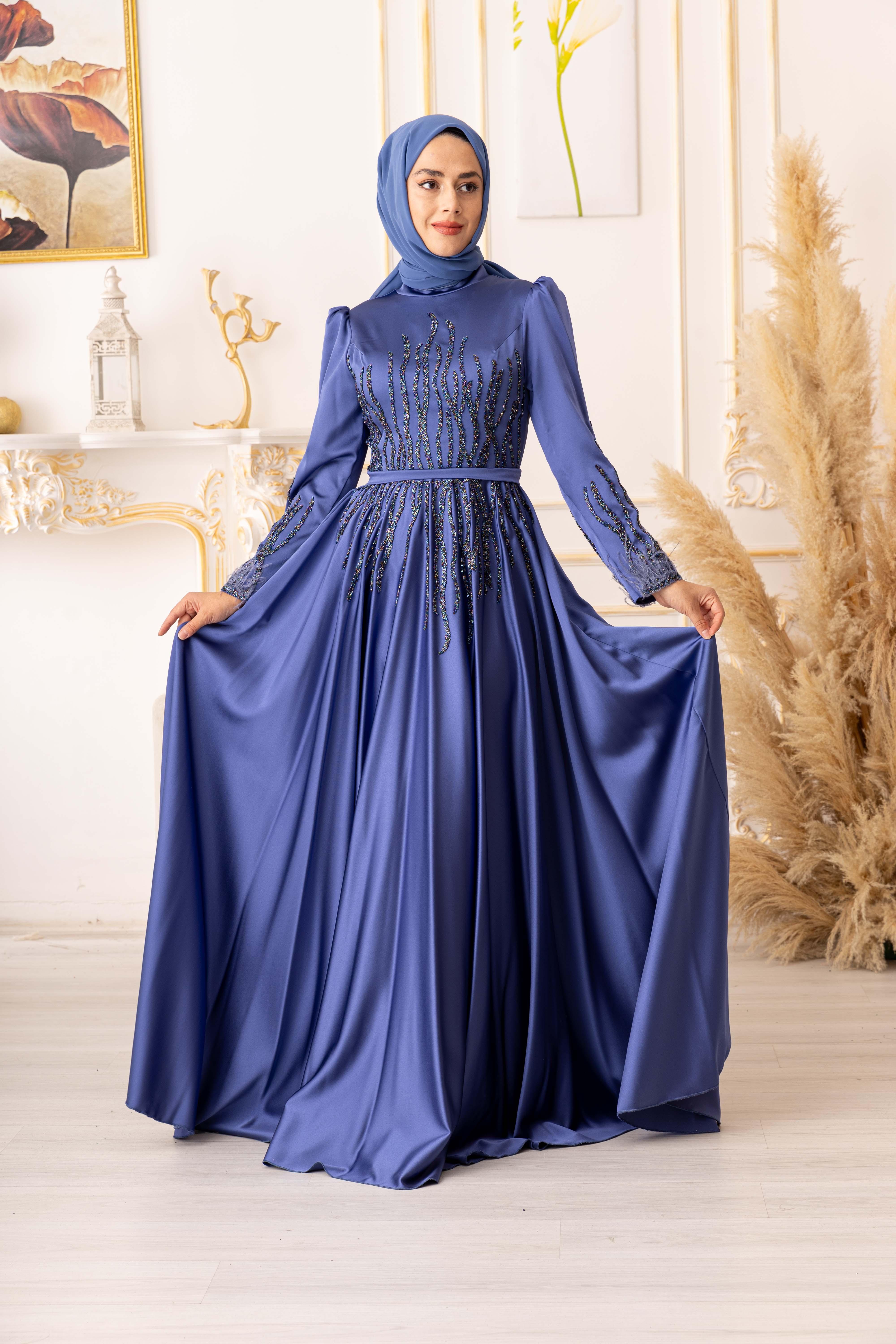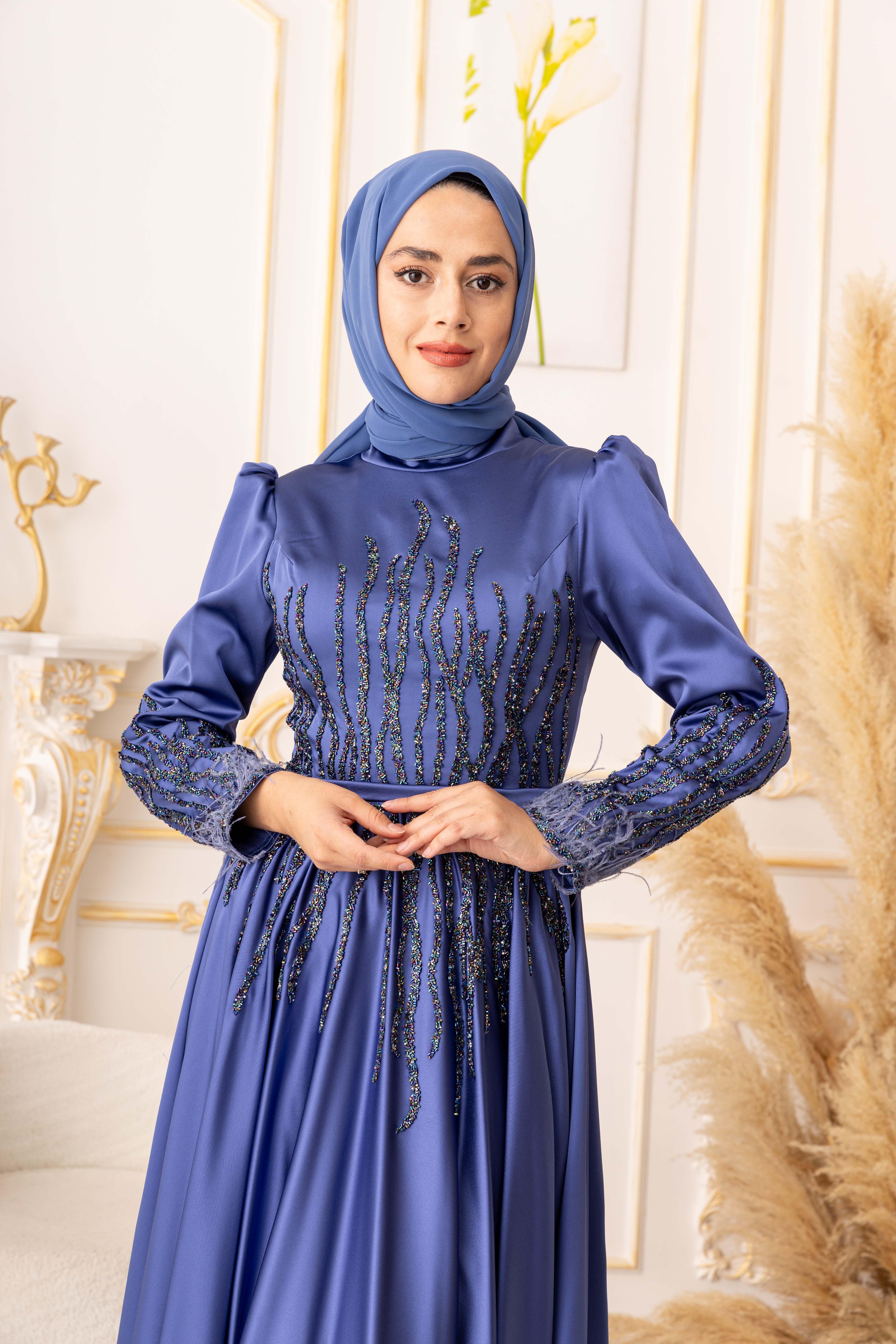 TÜY VE TAŞ DETAYLI SATEN TESETTÜR ABİYE, zarif tasarımı ve kaliteli kumaşıyla tesettür giyimde öne çıkan bir abiye elbisedir. Bu ürün, şık ve modern bir tarzla tasarlanmış olup özellikle tesettür giyimde fark yaratmayı hedeflemektedir.