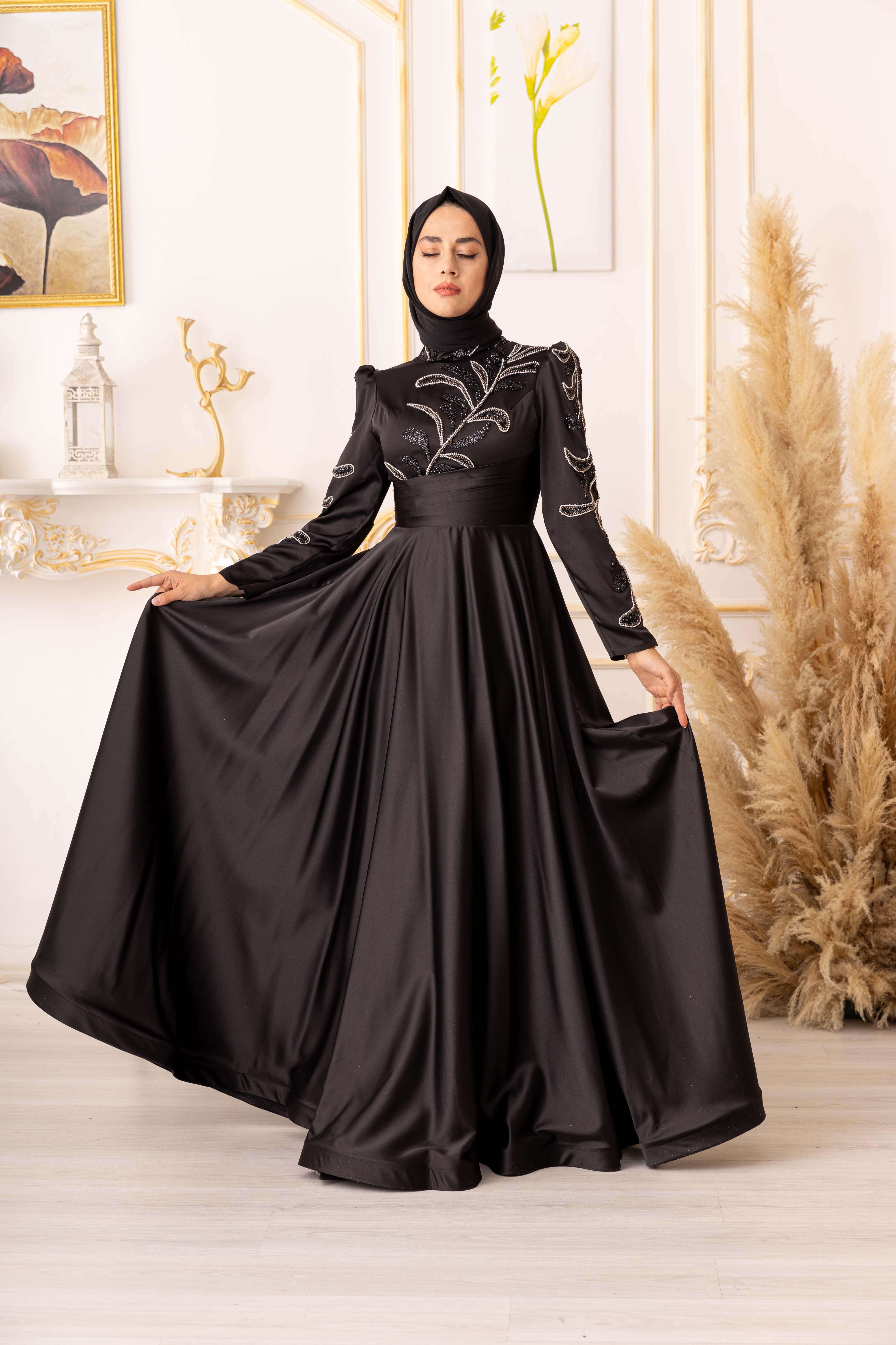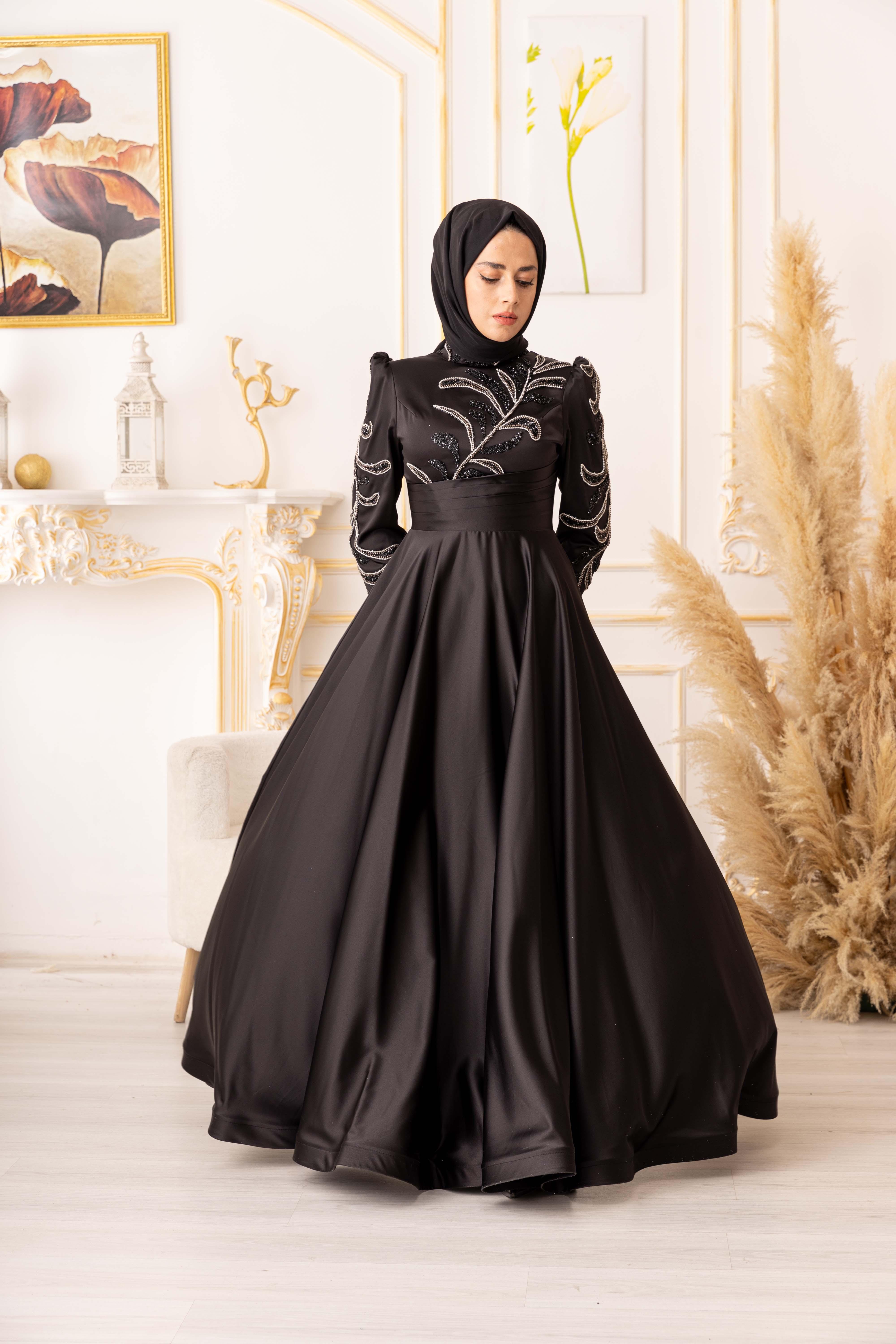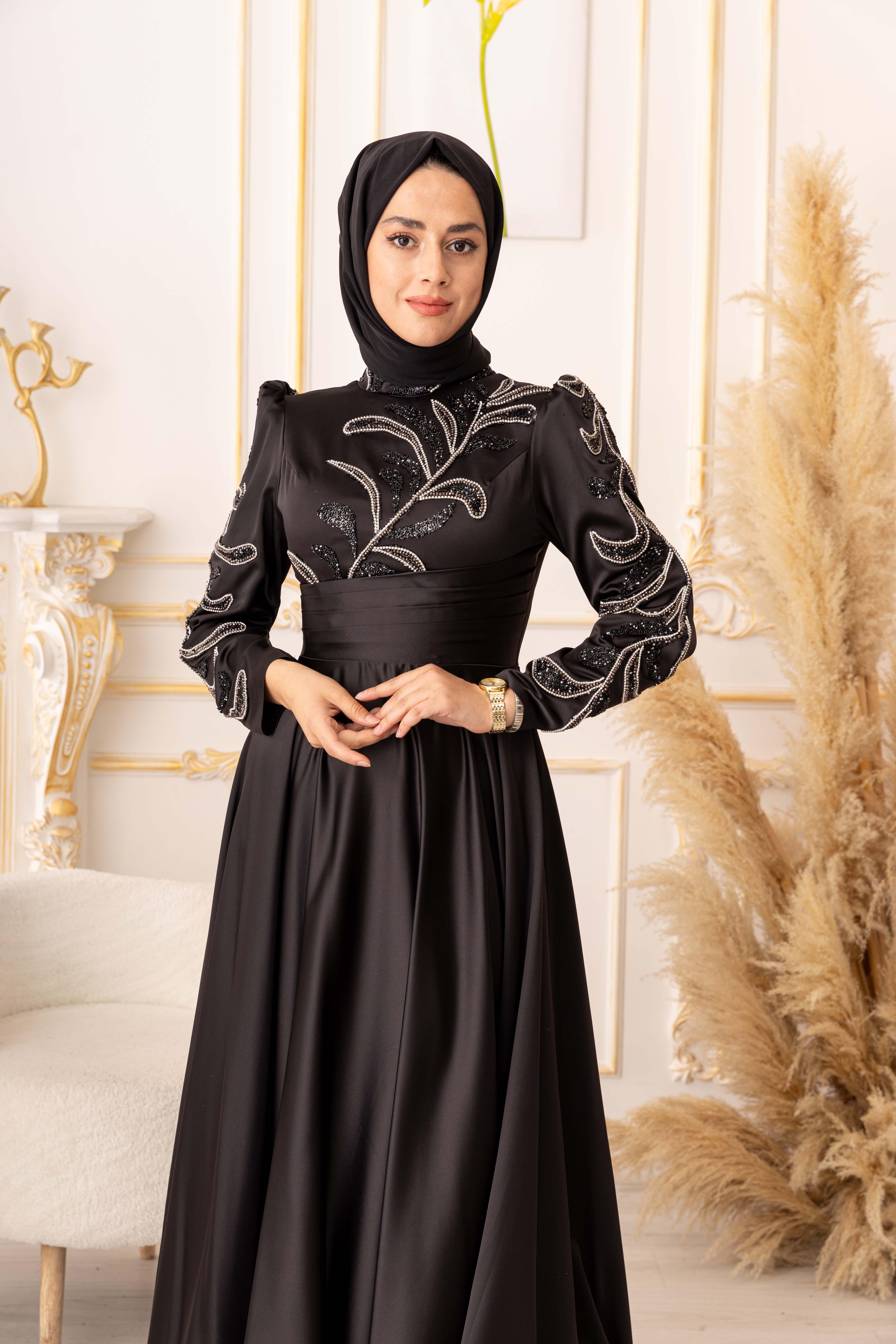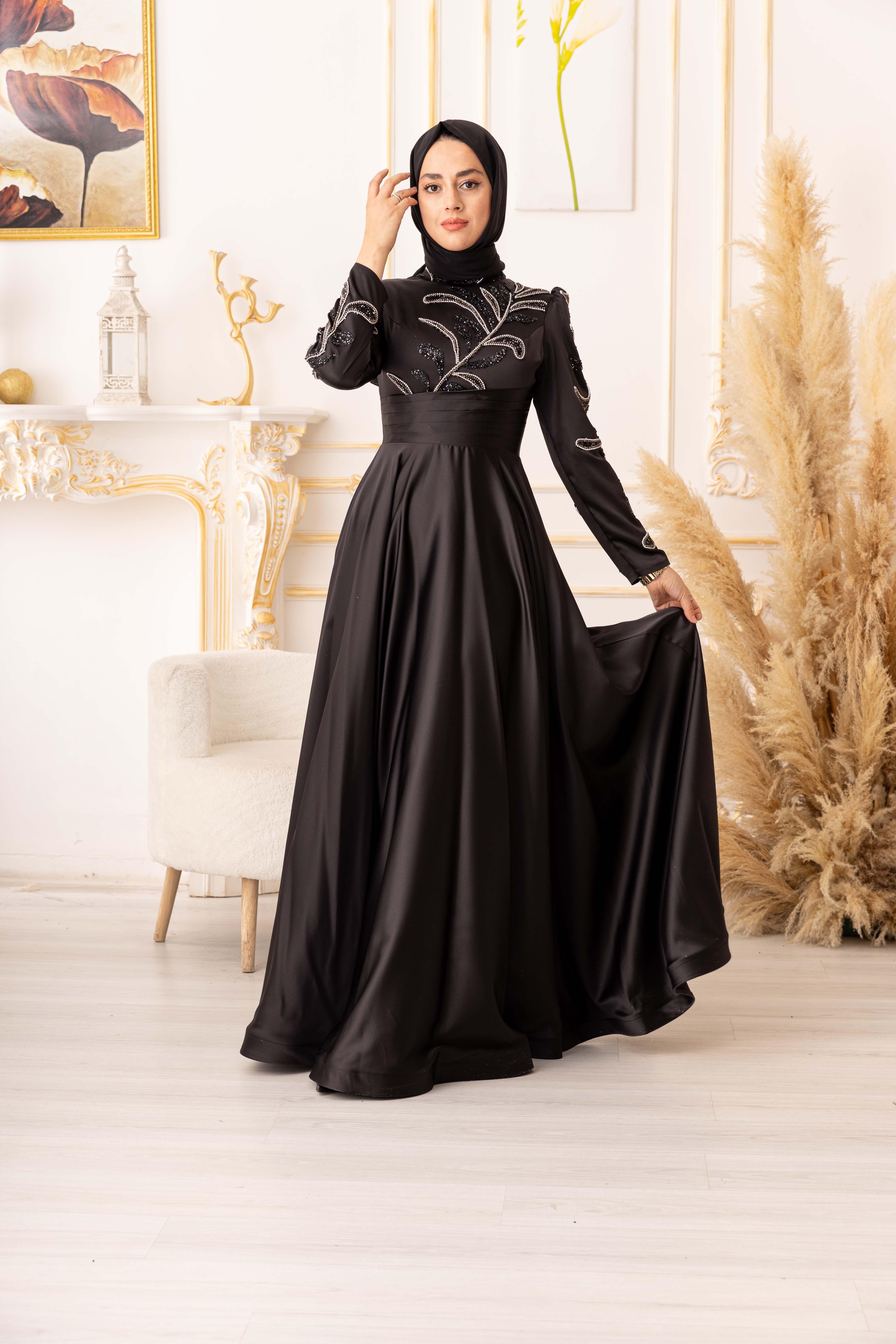 ZİNCİR VE BONCUK GEÇİŞLİ SATEN TESETTÜR ABİYE (K20000) her kadının gardırobunda olması gereken şık ve zarif bir seçenektir. Bu muhteşem abiyenin tasarımı, modern ve geleneksel tarzların birleşimidir, böylece her tarza uyum sağlar.
