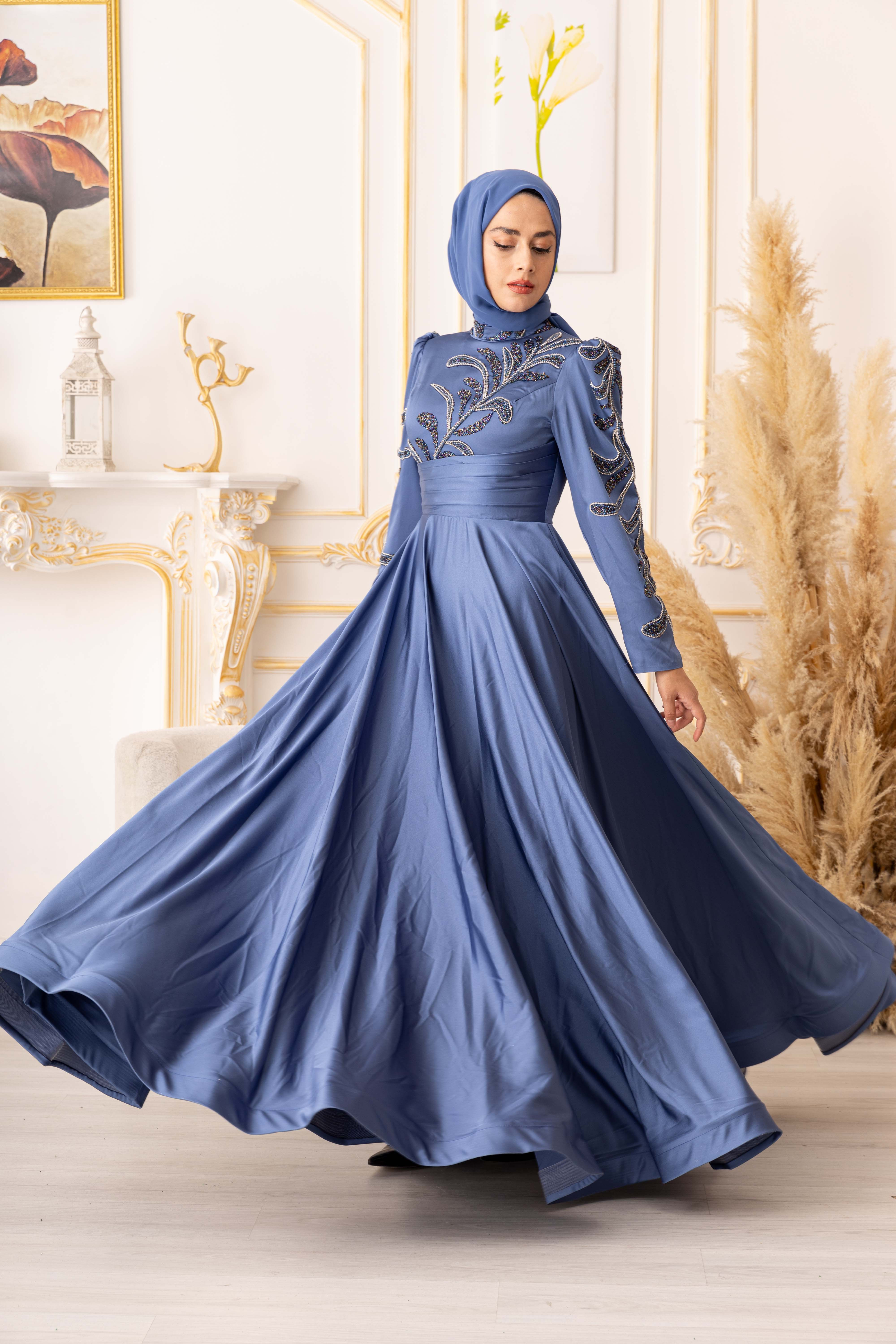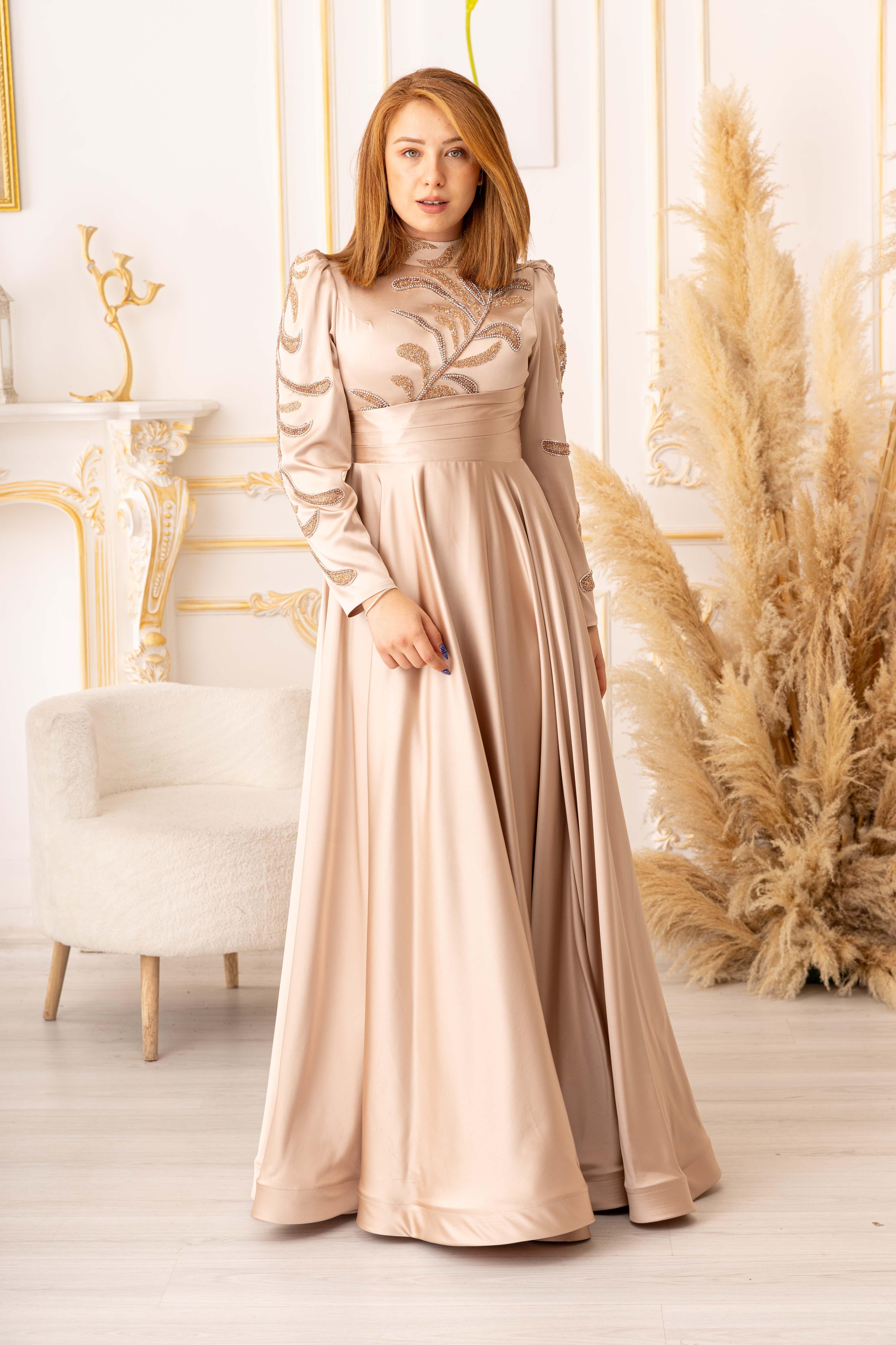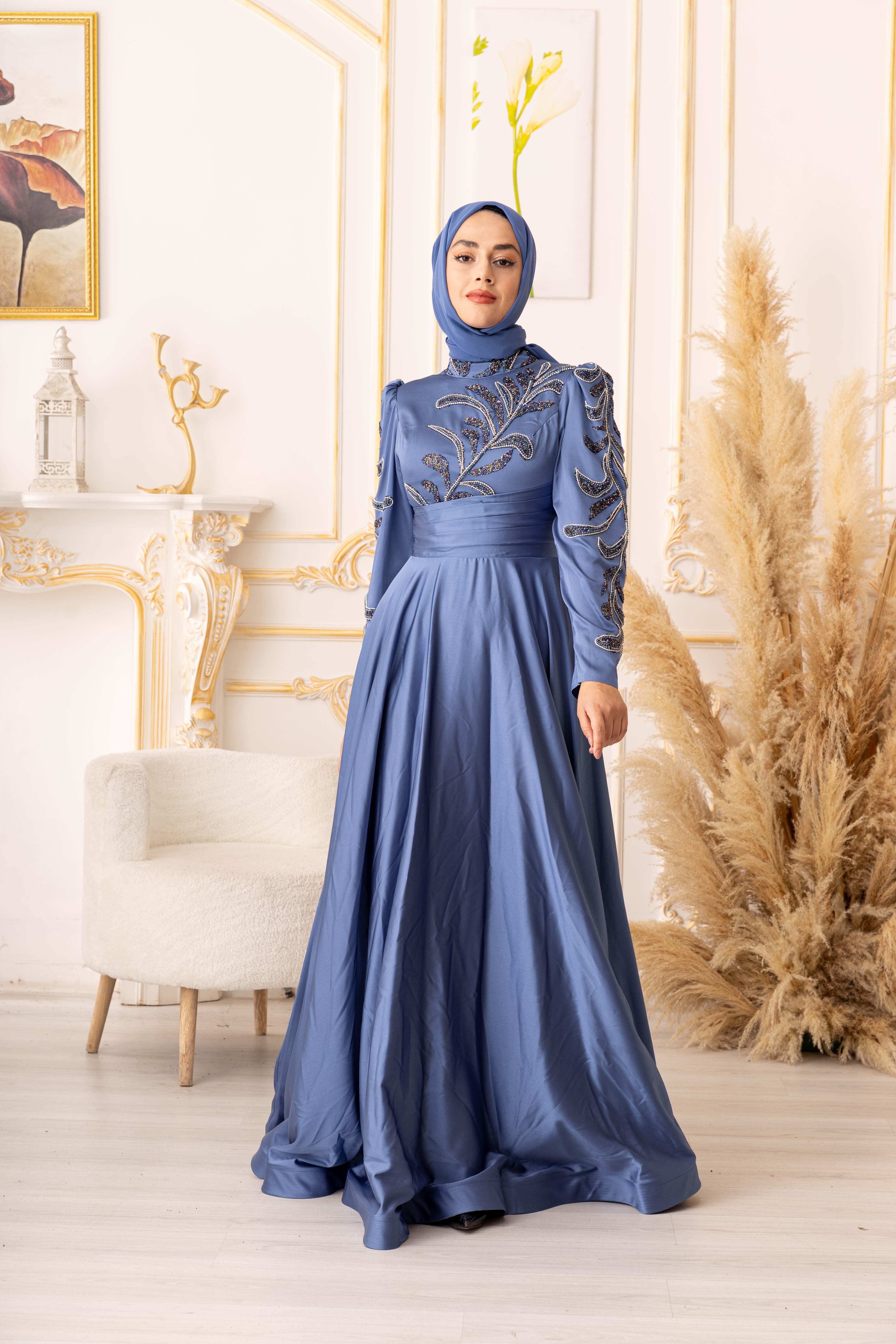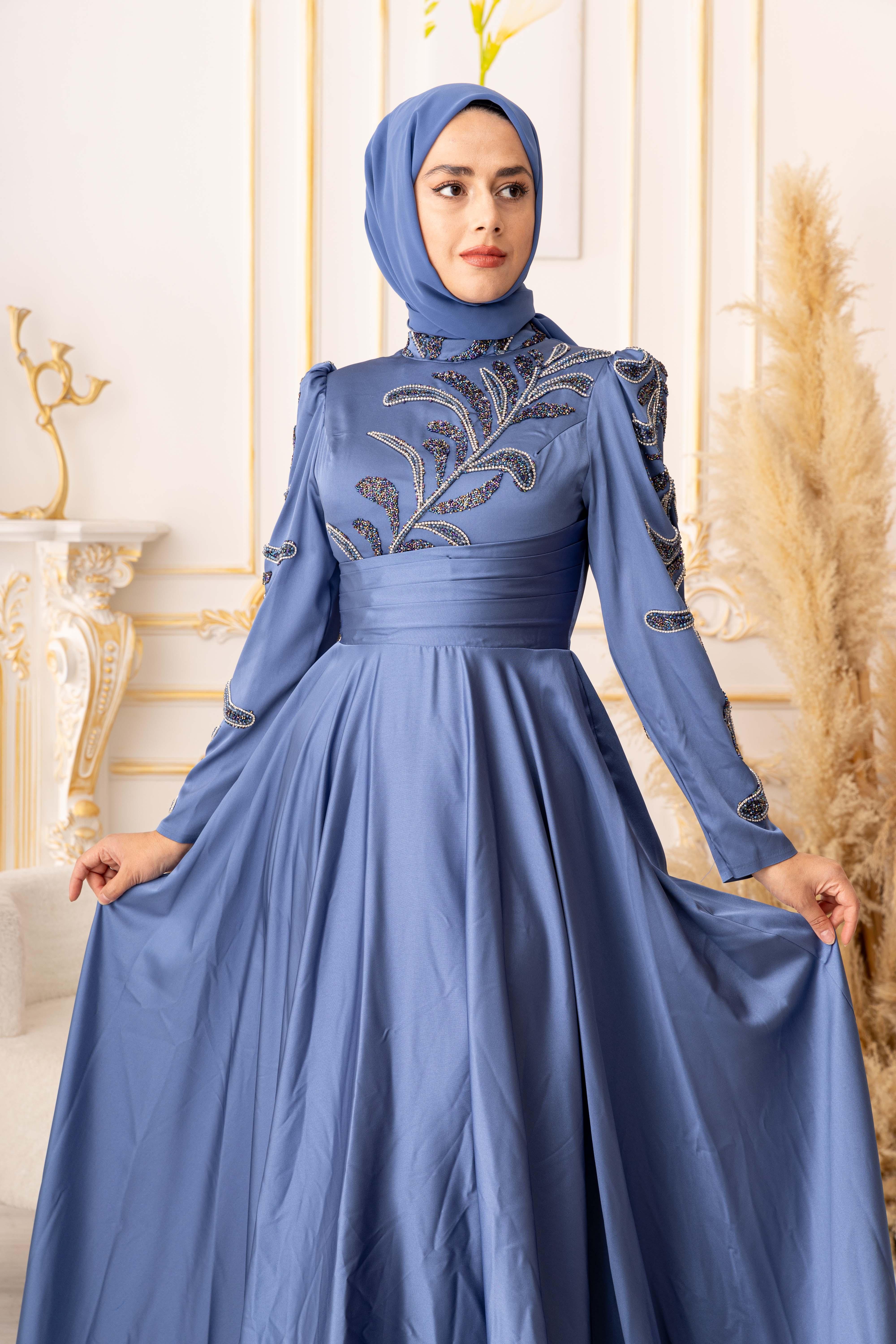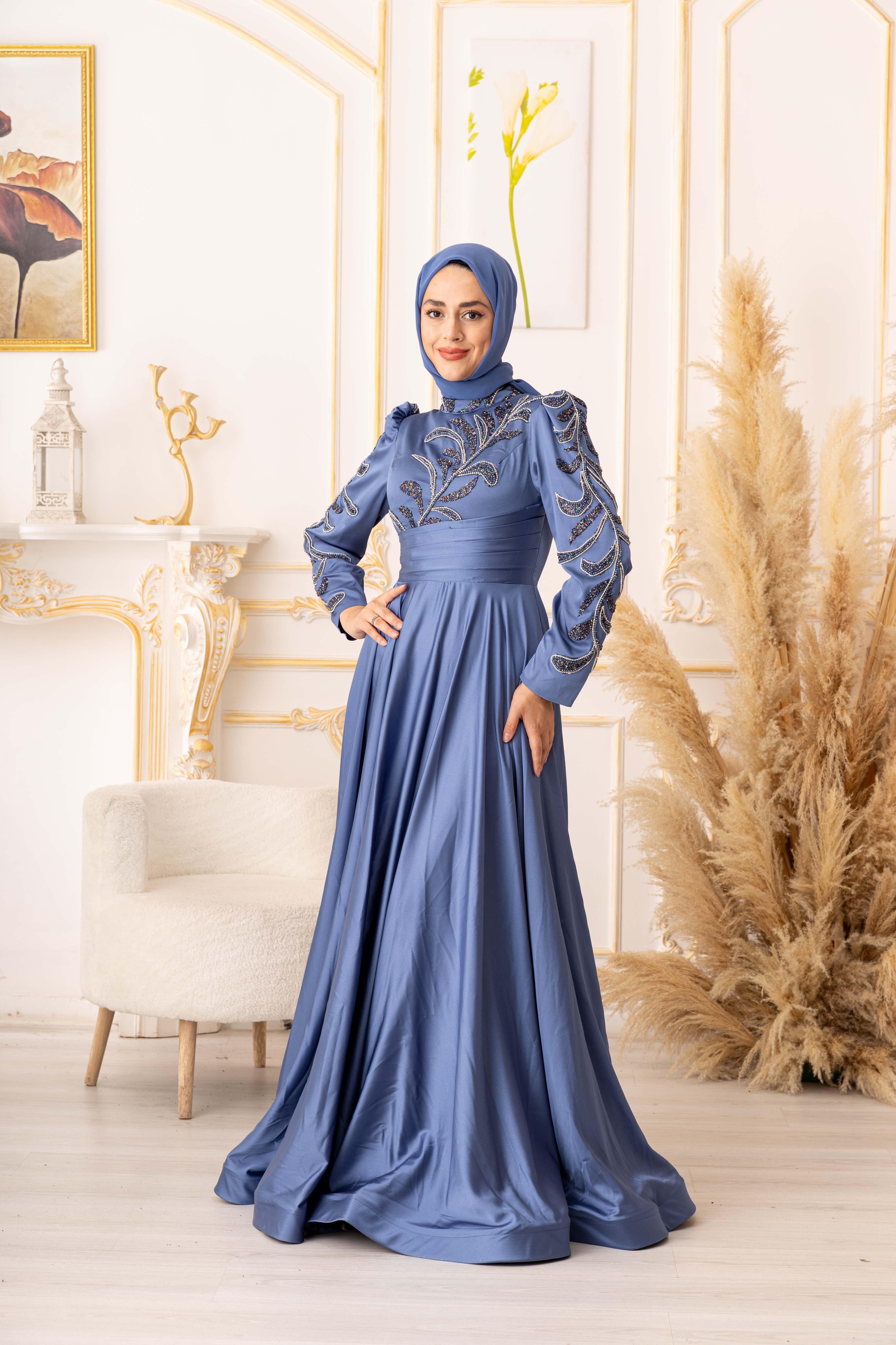 ZİNCİR VE BONCUK GEÇİŞLİ SATEN TESETTÜR ABİYE (K20000) her kadının gardırobunda olması gereken şık ve zarif bir seçenektir. Bu muhteşem abiyenin tasarımı, modern ve geleneksel tarzların birleşimidir, böylece her tarza uyum sağlar.