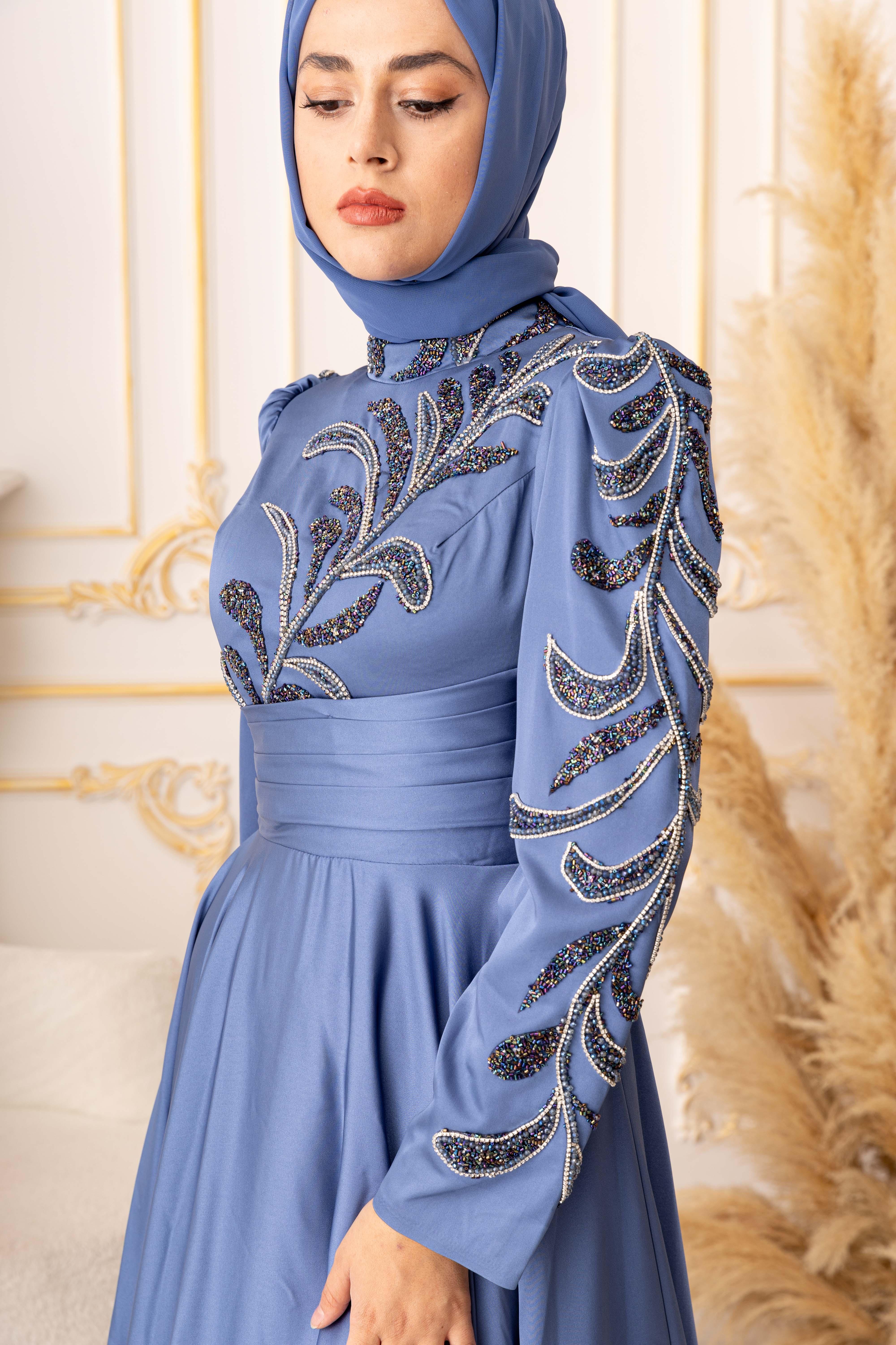 Bu tesettür abiyenin en dikkat çekici özelliği, zincir ve boncuk detaylarının kullanılmasıdır. Sağlam ve uzun ömürlü bir malzemeden yapılmış olan bu detaylar, abiyeye lüks ve zarif bir hava katar. Aynı zamanda, tesettür abiyenin ön kısmındaki detaylar sayesinde boynunuzu ve omuzlarınızı daha zarif ve çarpıcı bir şekilde ortaya çıkarmaya yardımcı olur.