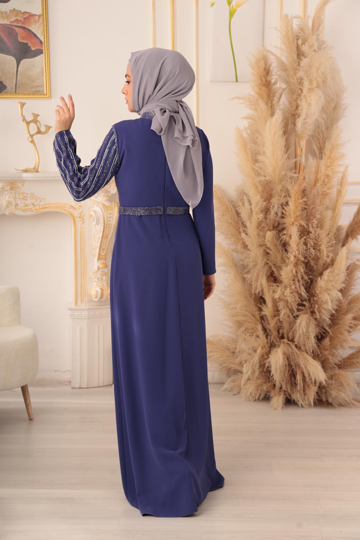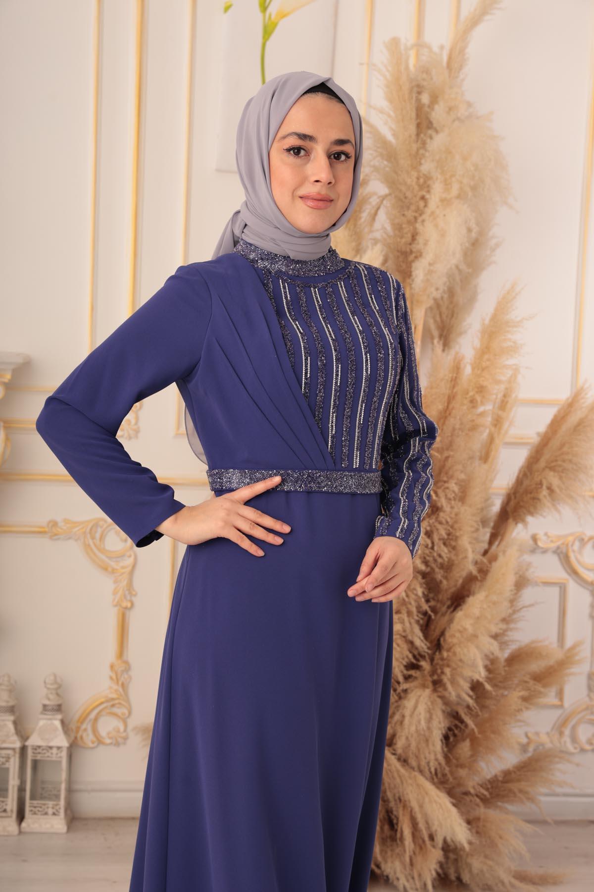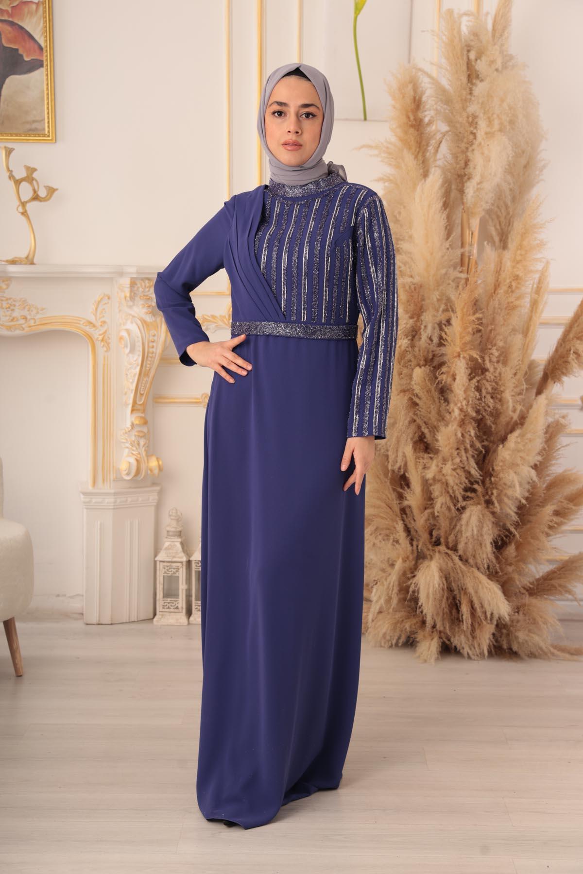Zincir ve boncuk işlemeli tesettür abiye, zarif ve şık bir tarzı tercih eden kadınların vazgeçilmez bir parçası olmaya adaydır. Özel tasarımı ve kaliteli işçiliği ile diğer abiye modellerinden ayrılan bu ürün, her zevke hitap etmektedir.